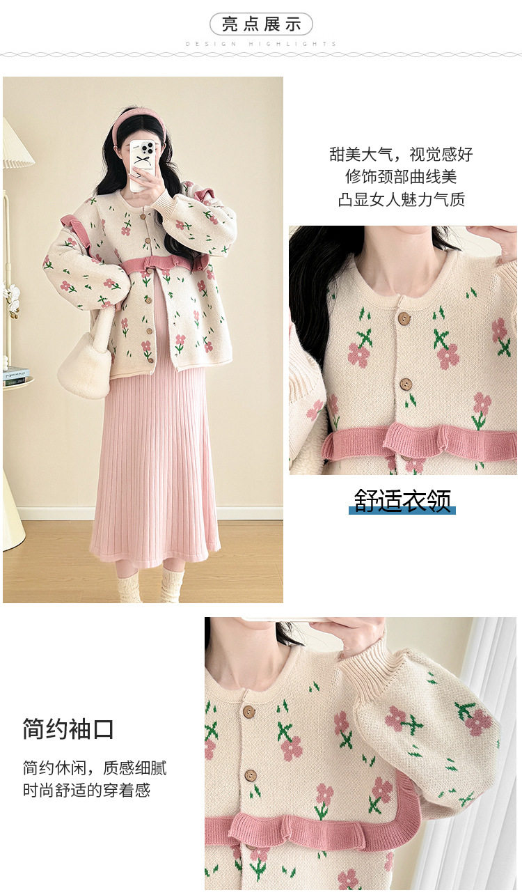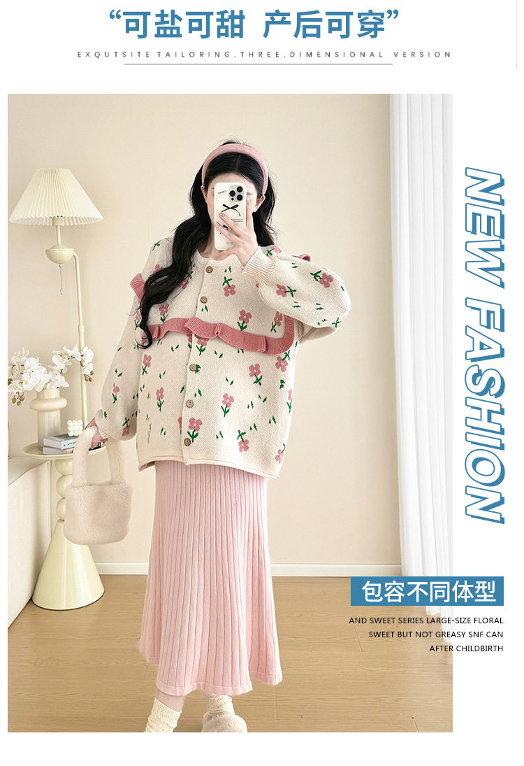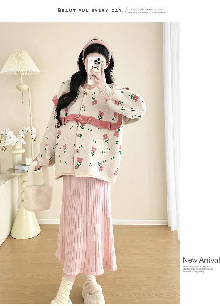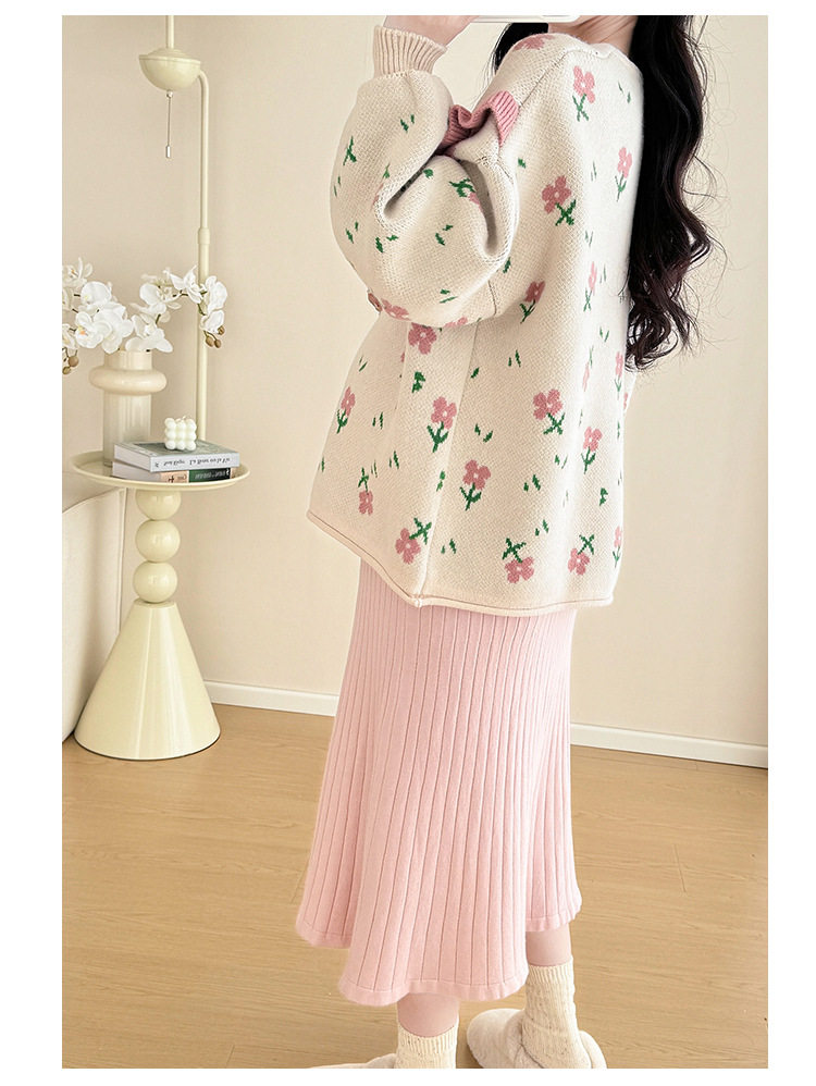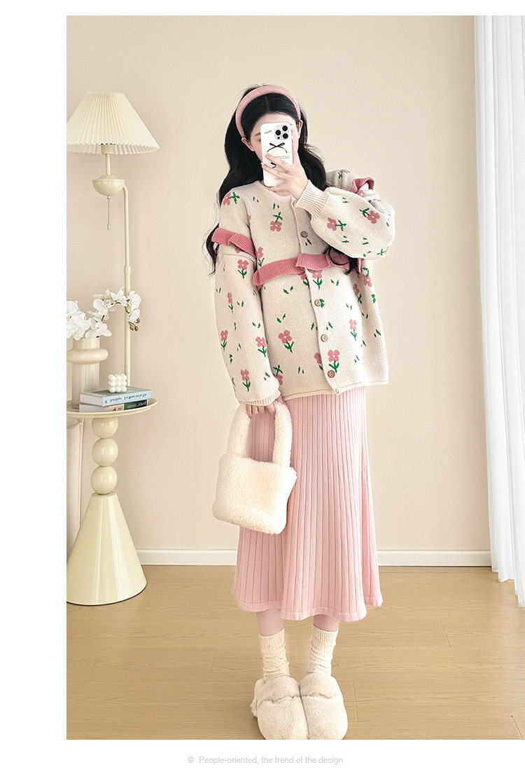 Autumn and Winter Suit 2024 New Sweet Knitted Bottoming Skirt + Flower Jacket Cardigan Two Pieces…