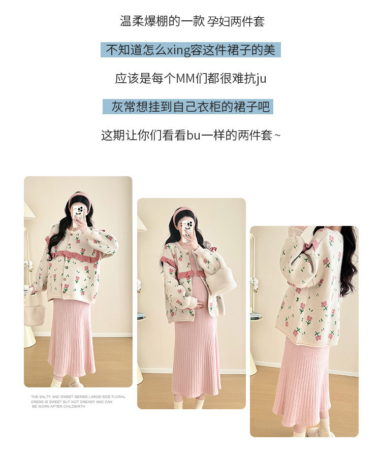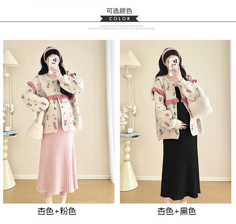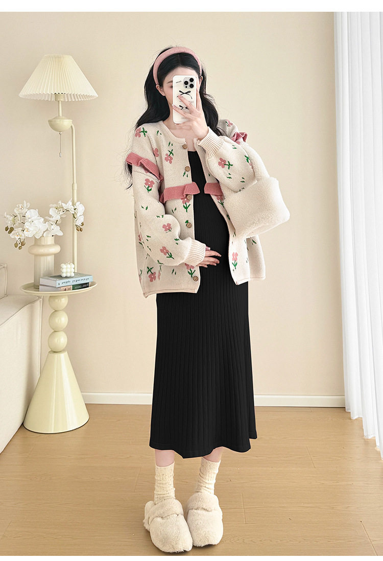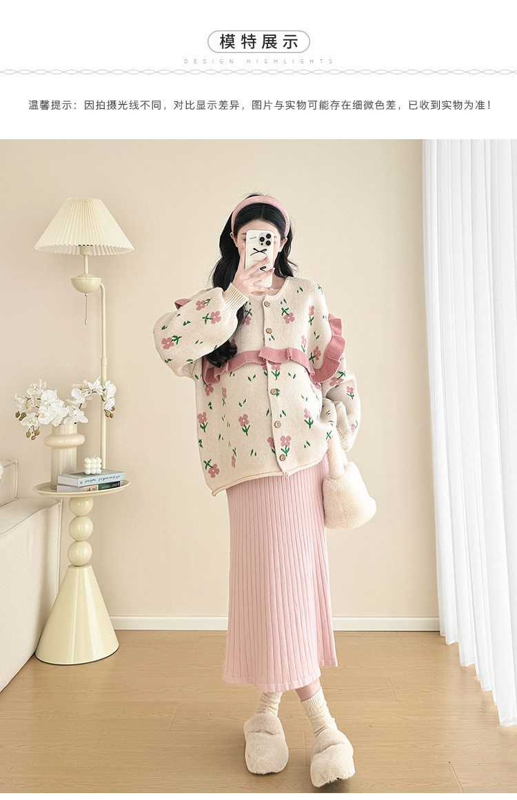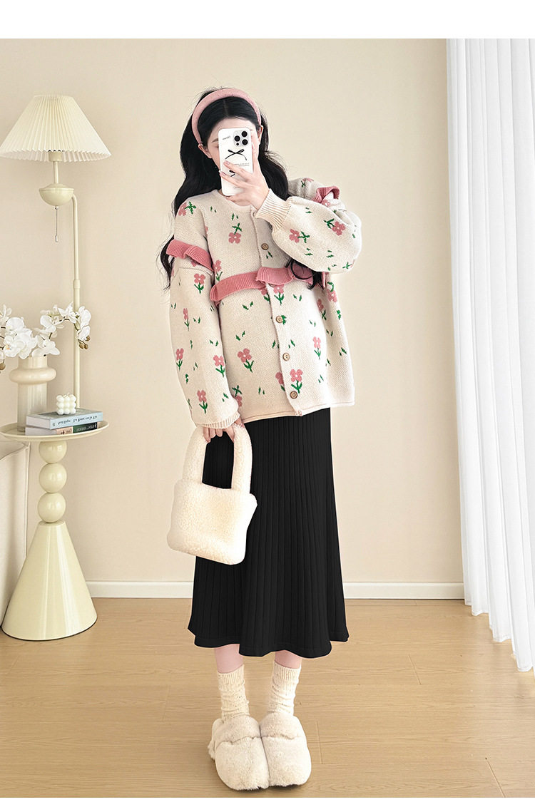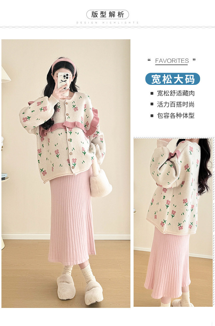 Autumn and Winter Suit 2024 New Sweet Knitted Bottoming Skirt + Flower Jacket Cardigan Two Pieces…