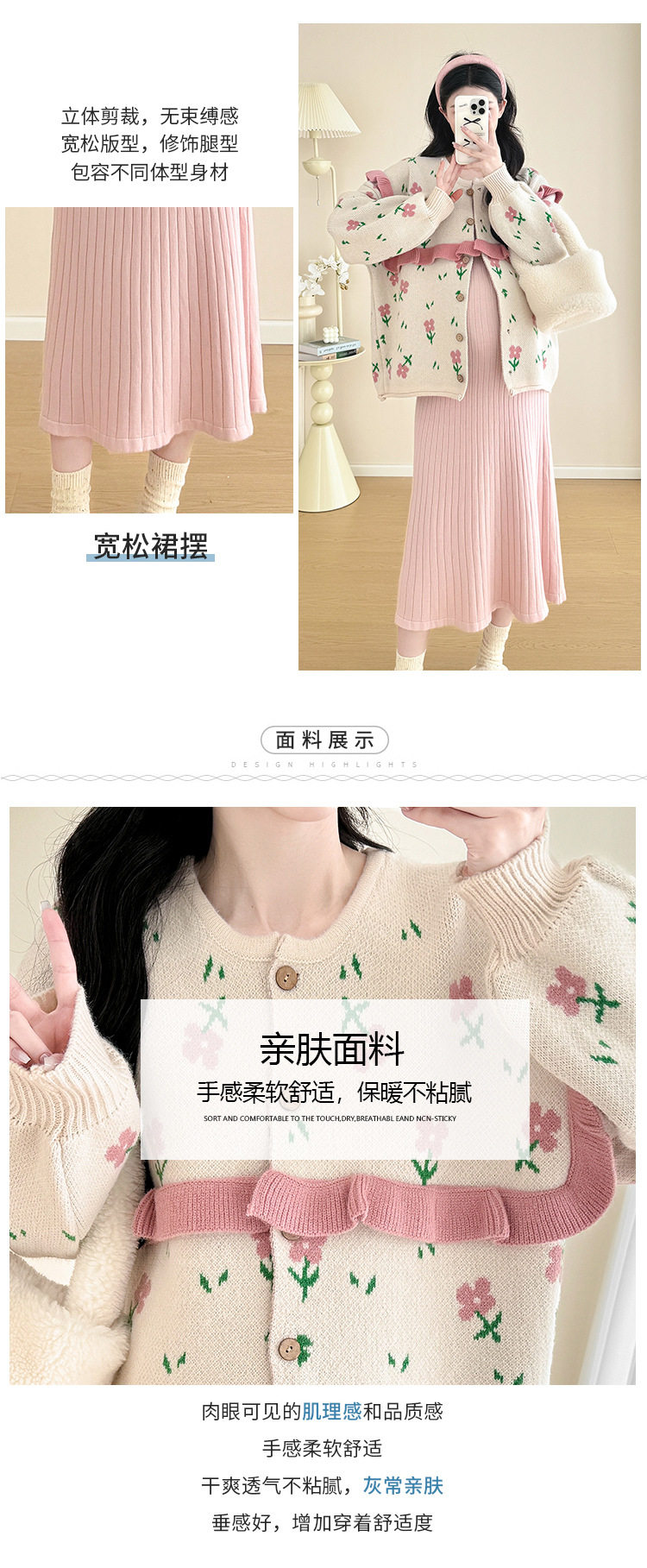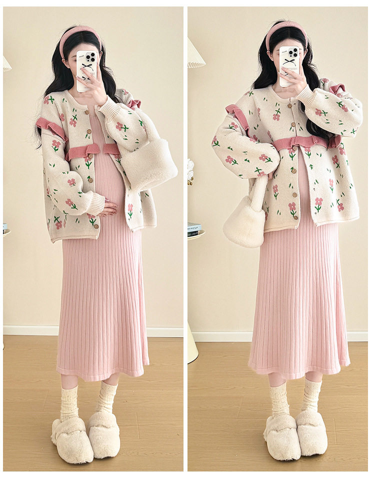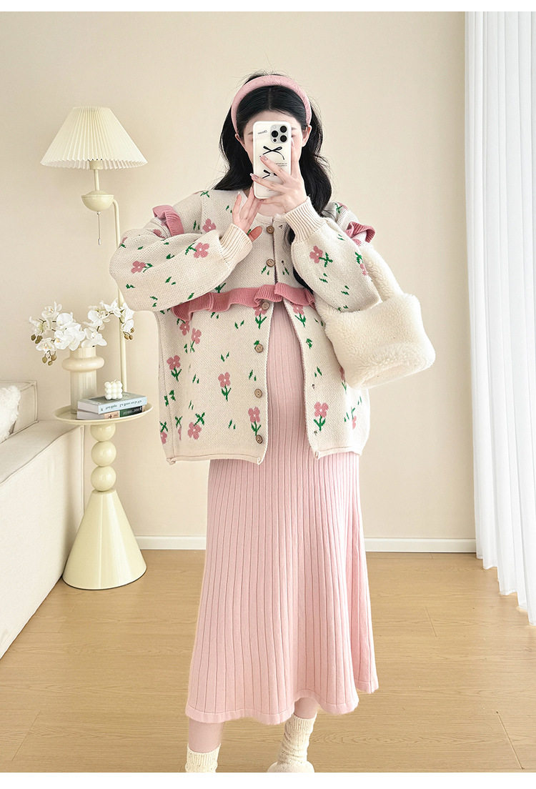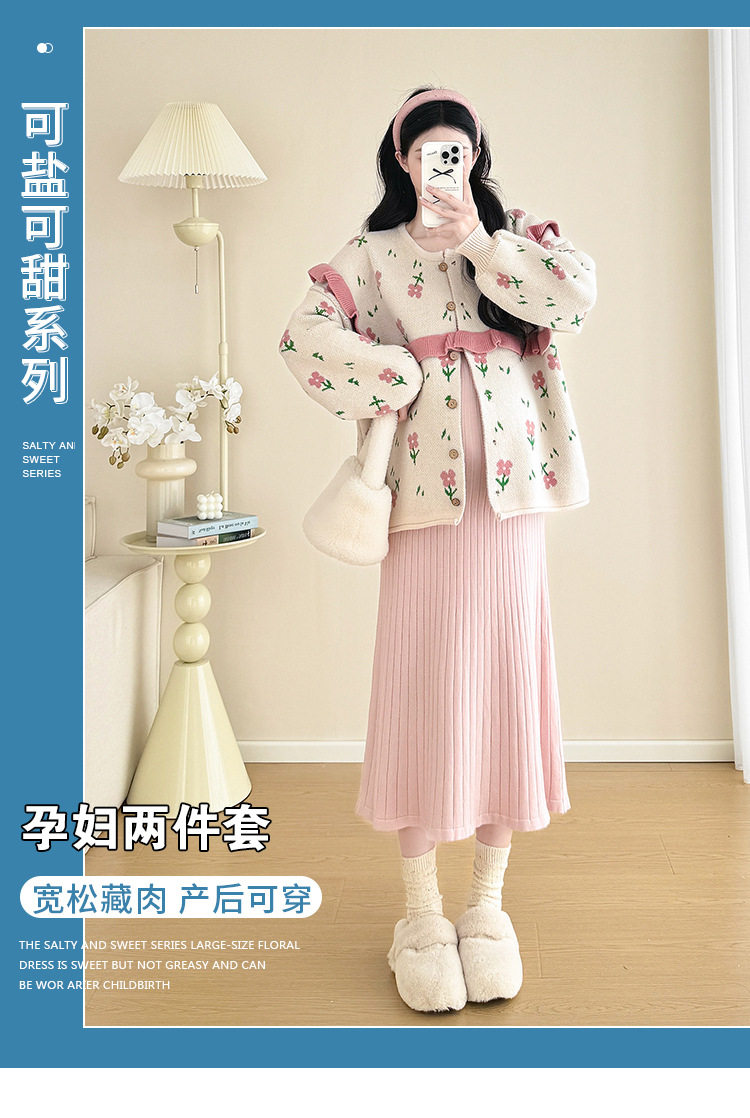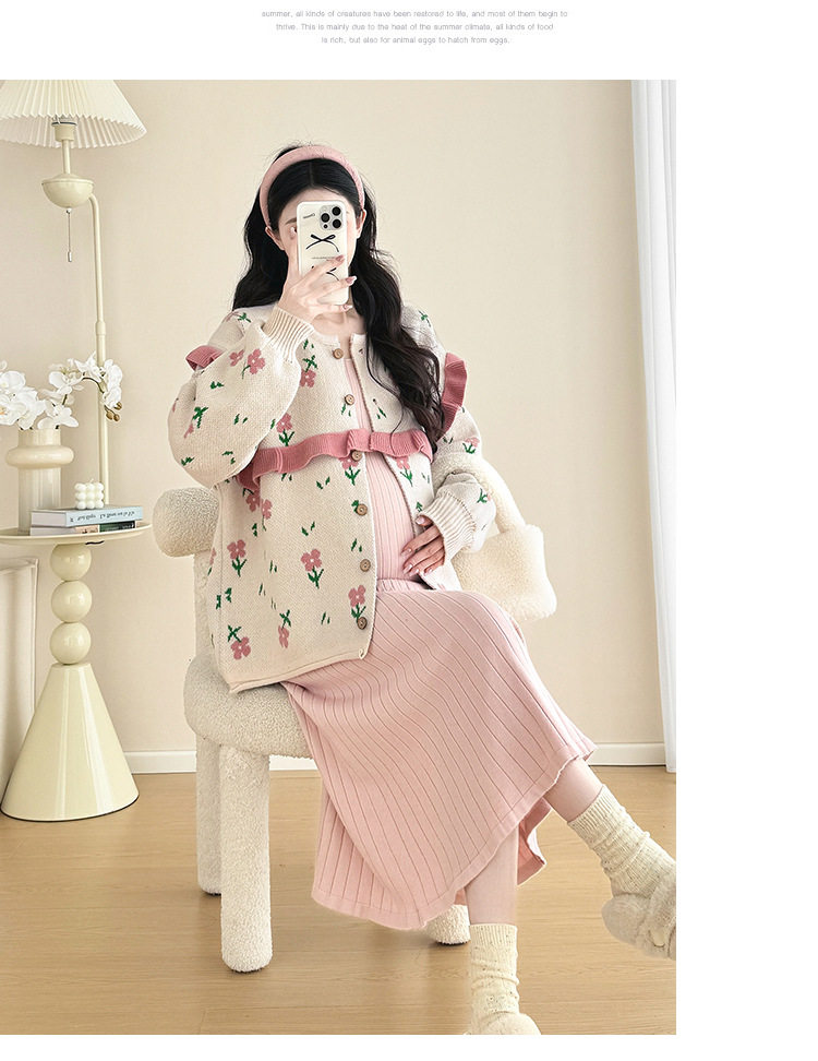 Autumn and Winter Suit 2024 New Sweet Knitted Bottoming Skirt + Flower Jacket Cardigan Two Pieces…