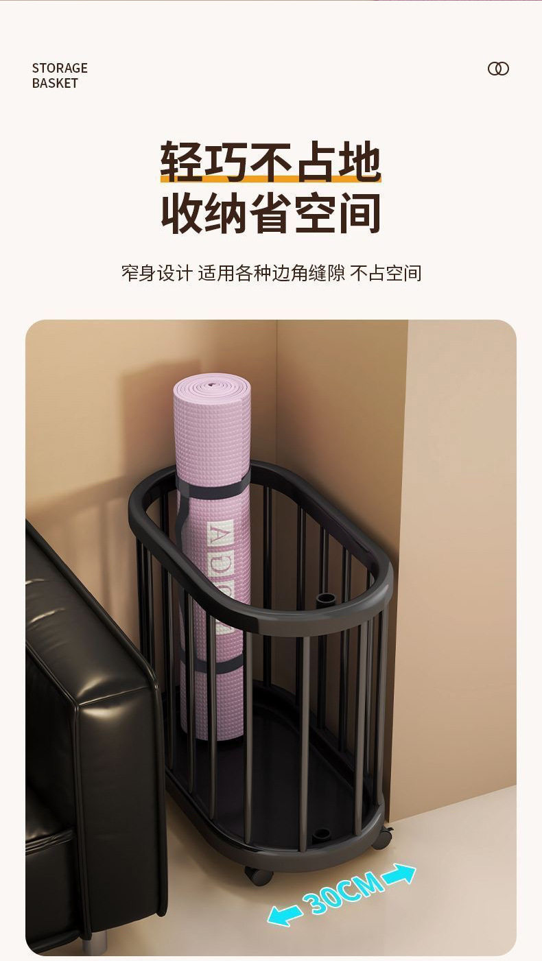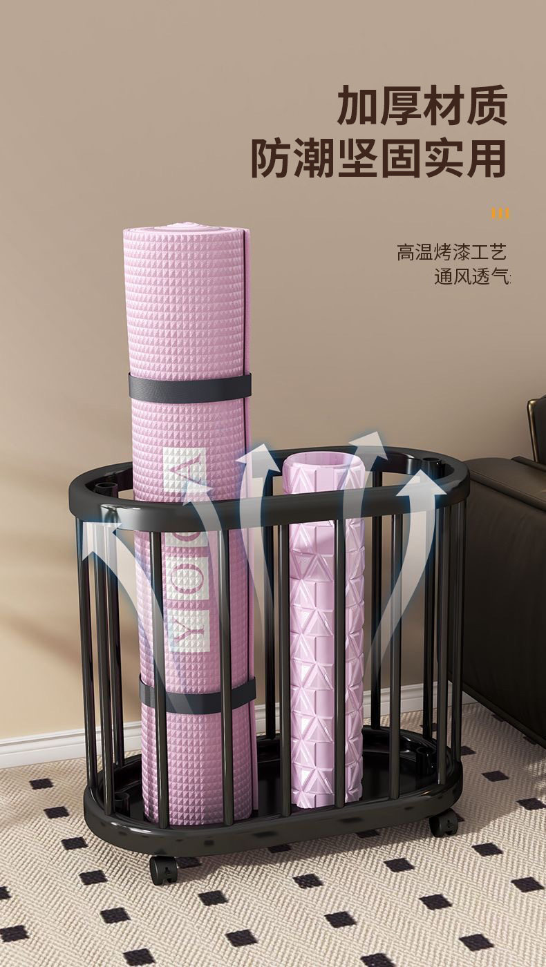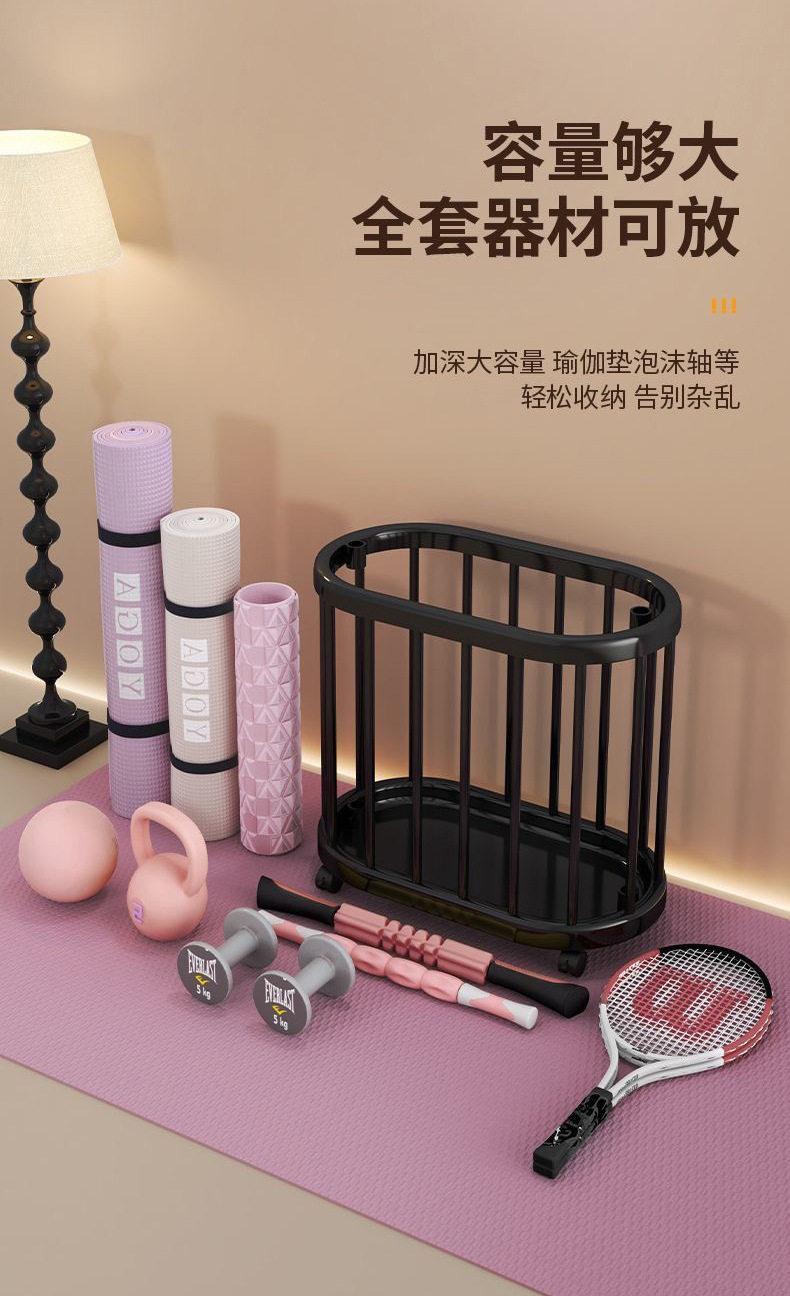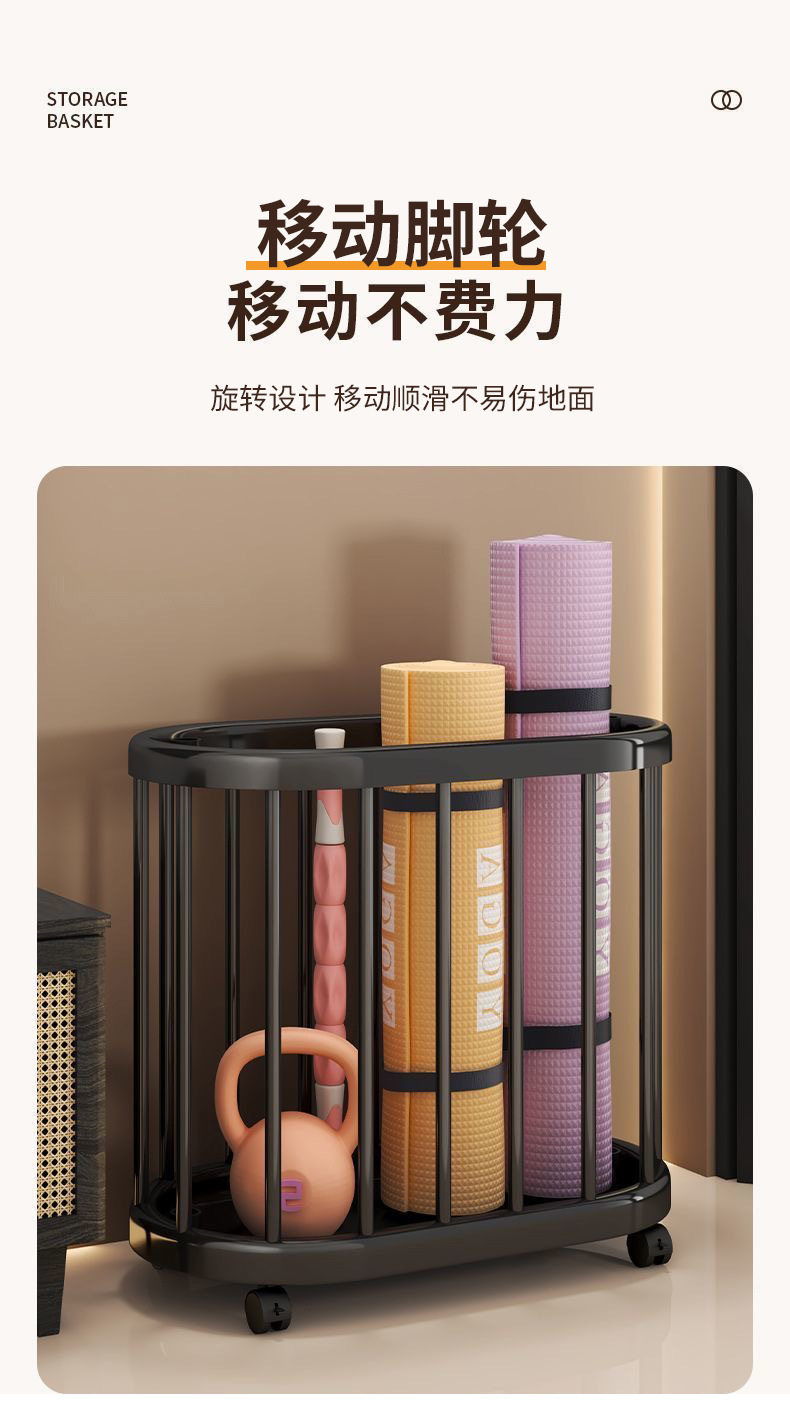Yoga Mat Storage Basket with Wheels, Home Fitness Equipment Storage Box, Basketball Sports Tool Storage Rack