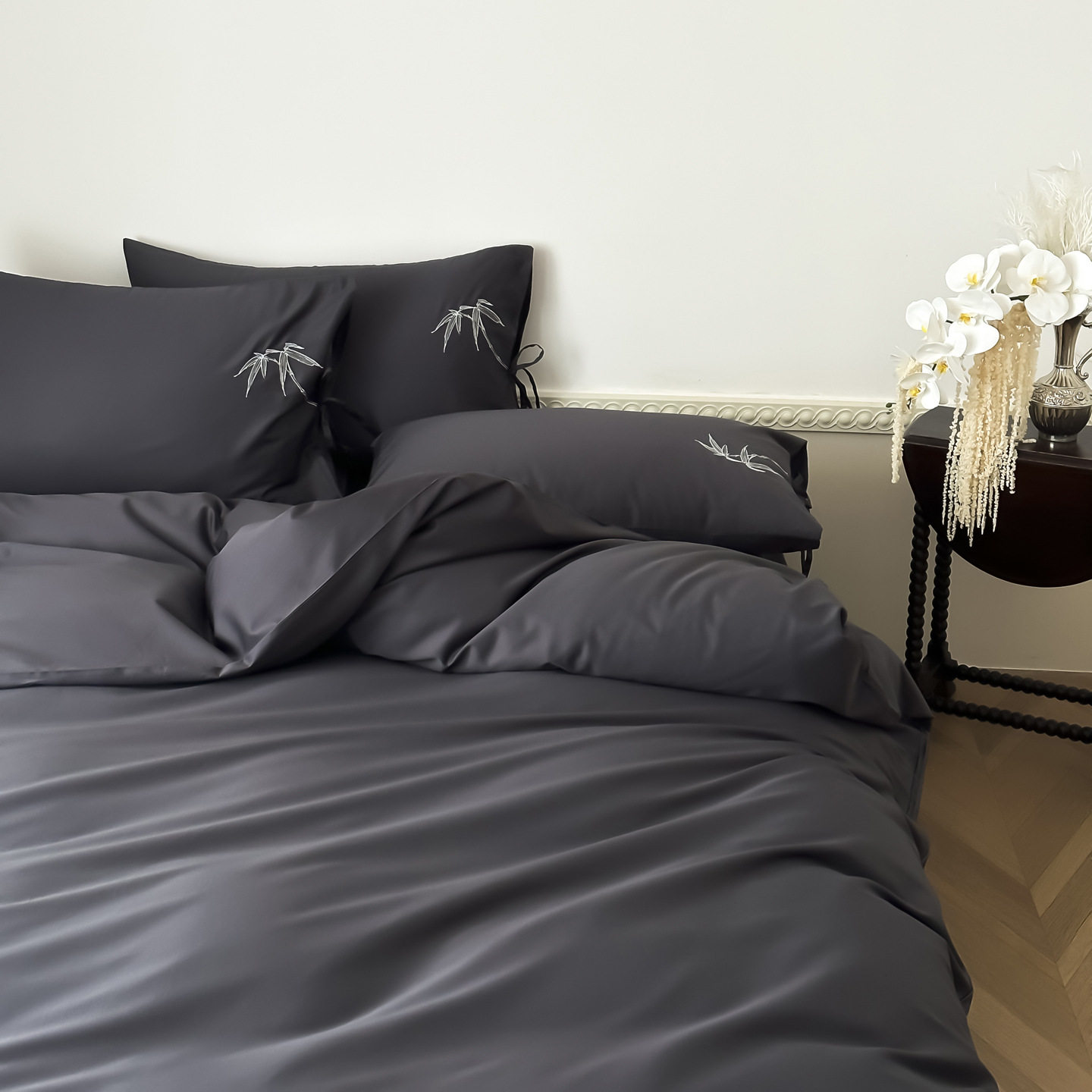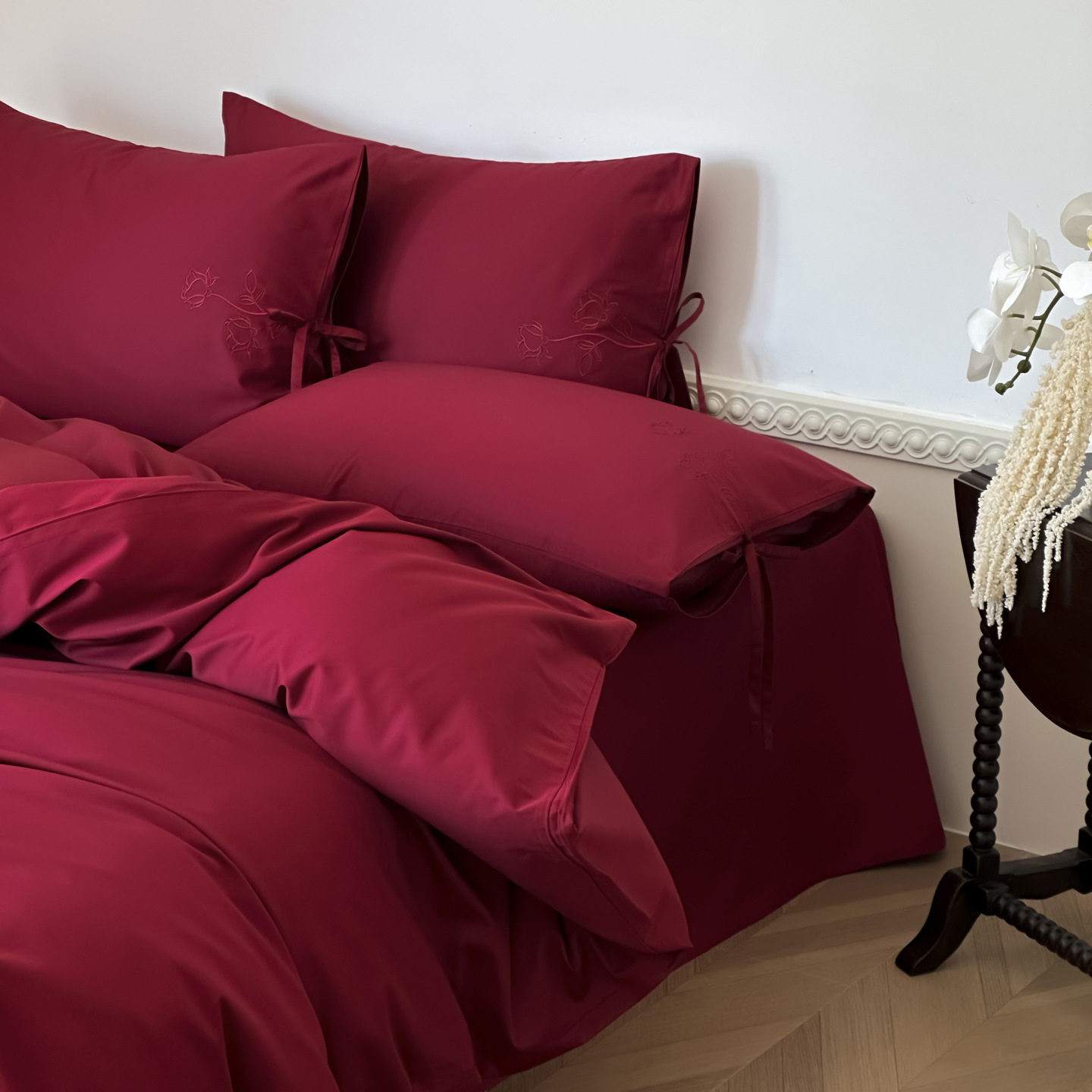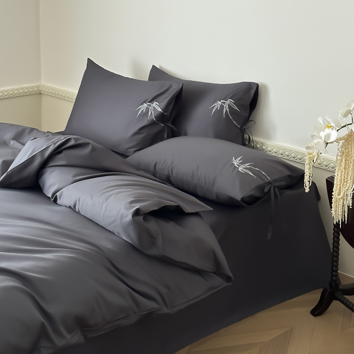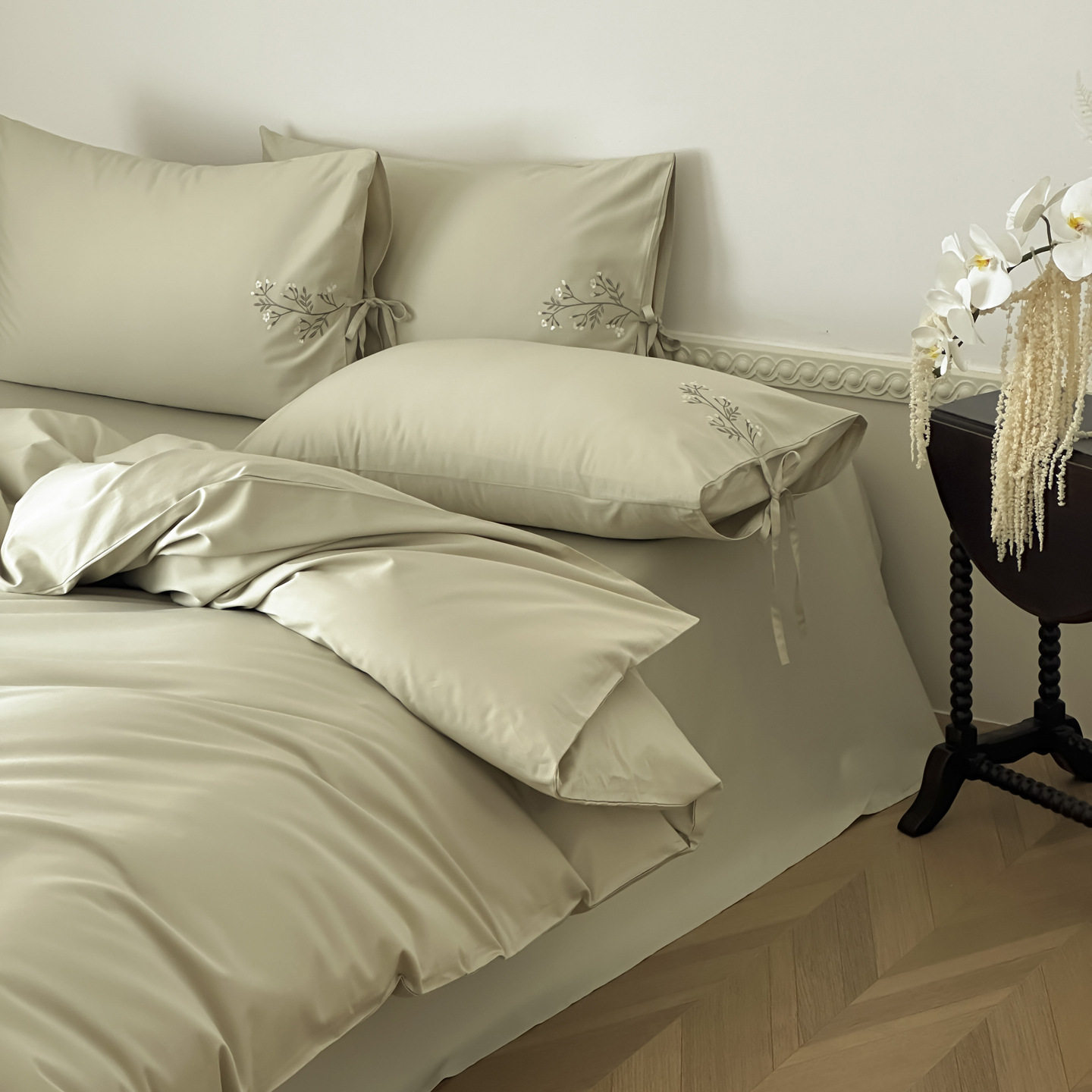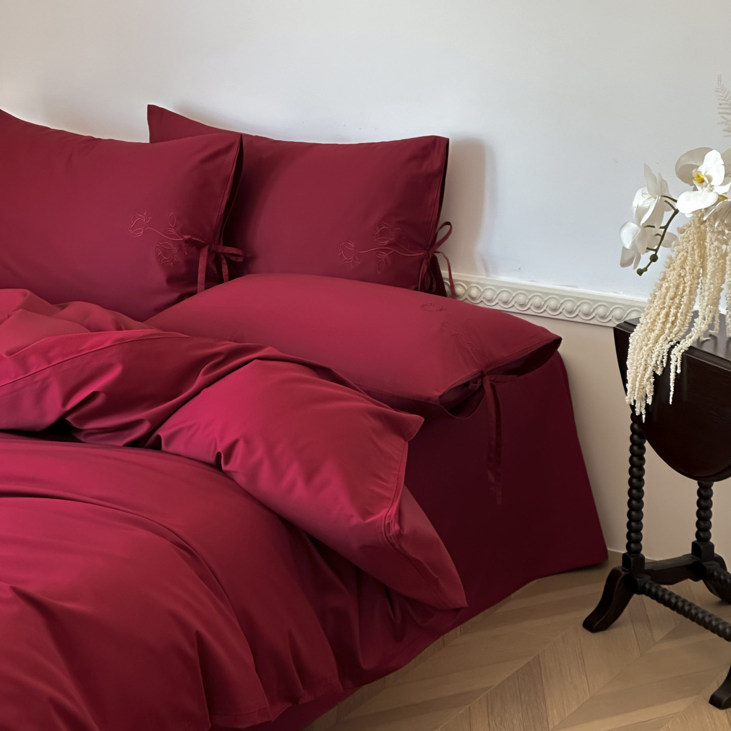 High-End Feel! Class a 100-Count Long-Staple Cotton Four-Piece Set, Solid Color Embroidered Bow Pillowcase, Pure Cotton Duvet Cover, Bed Sheet