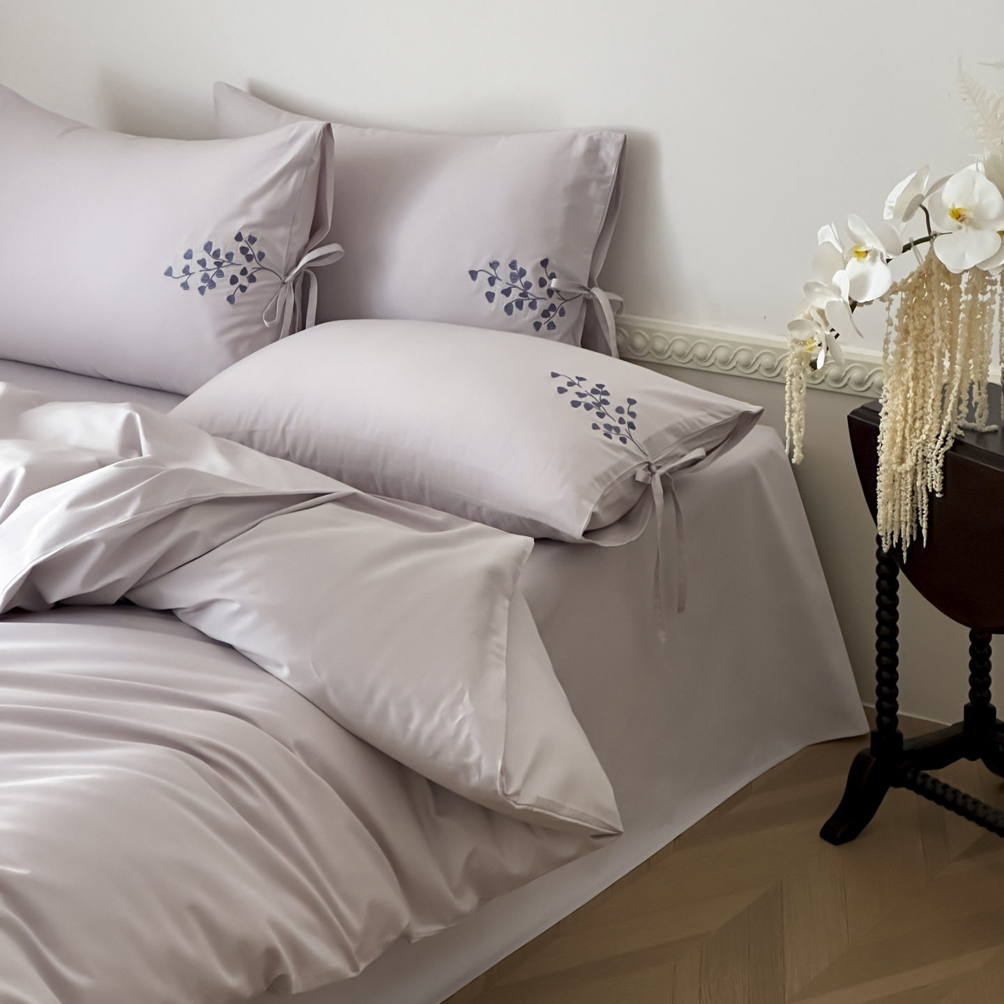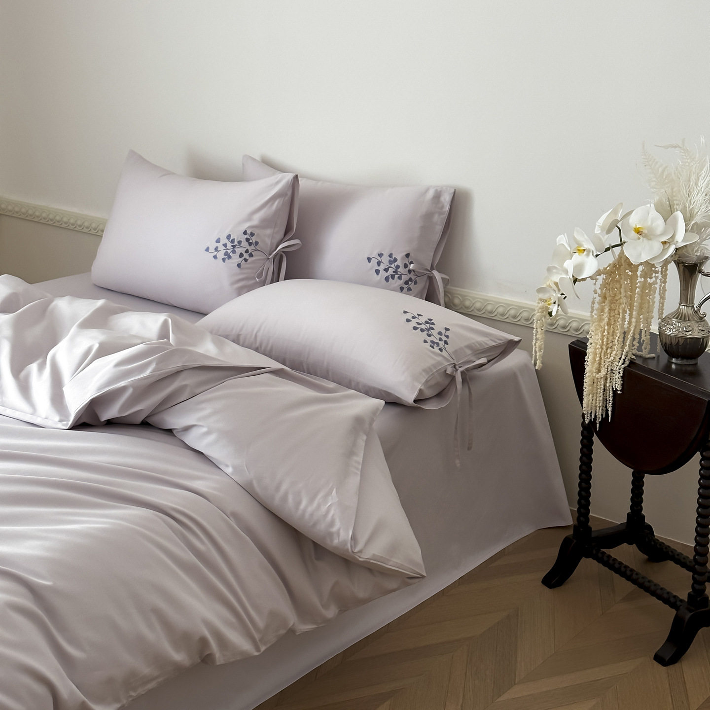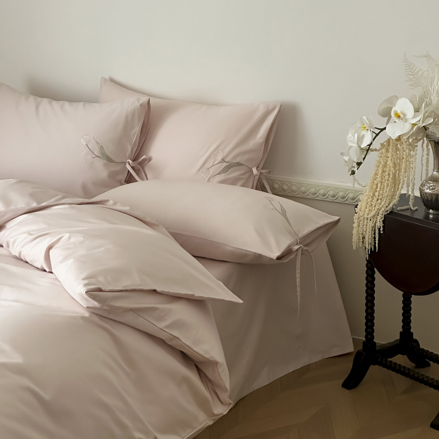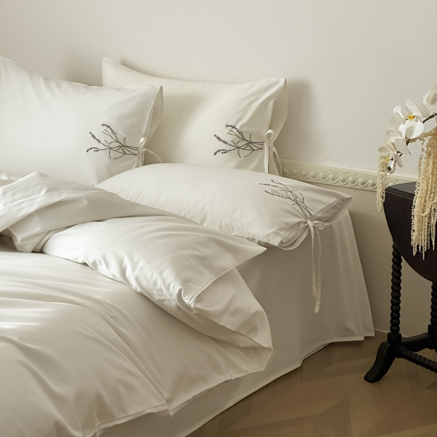 High-End Feel! Class a 100-Count Long-Staple Cotton Four-Piece Set, Solid Color Embroidered Bow Pillowcase, Pure Cotton Duvet Cover, Bed Sheet