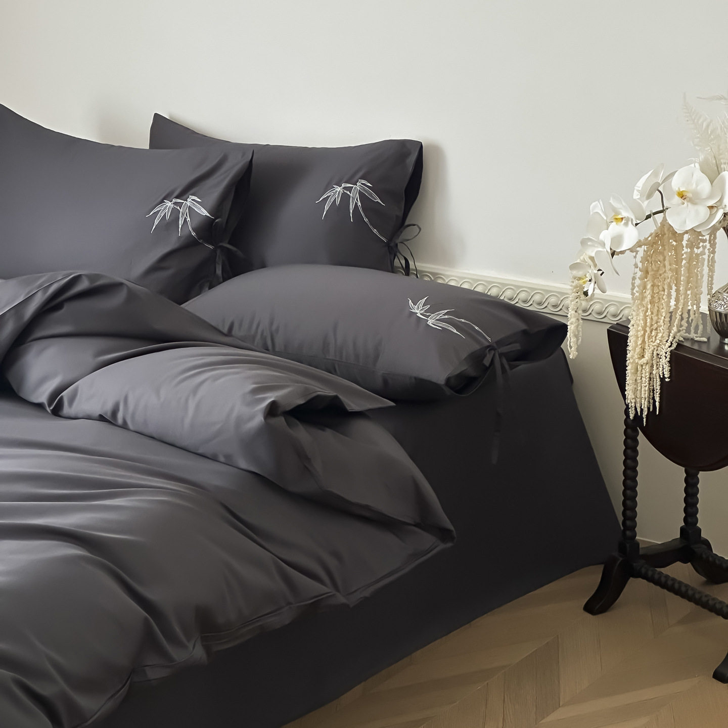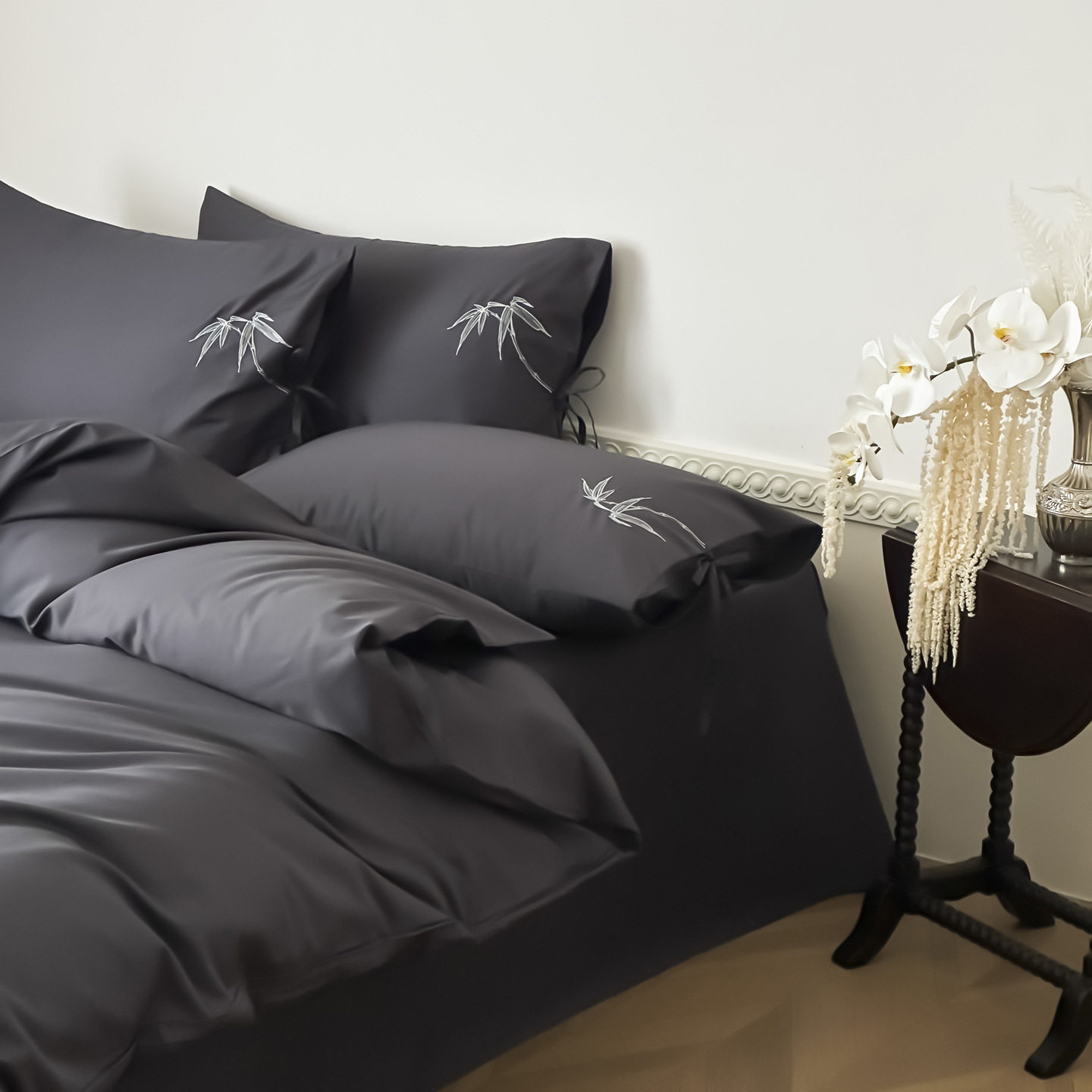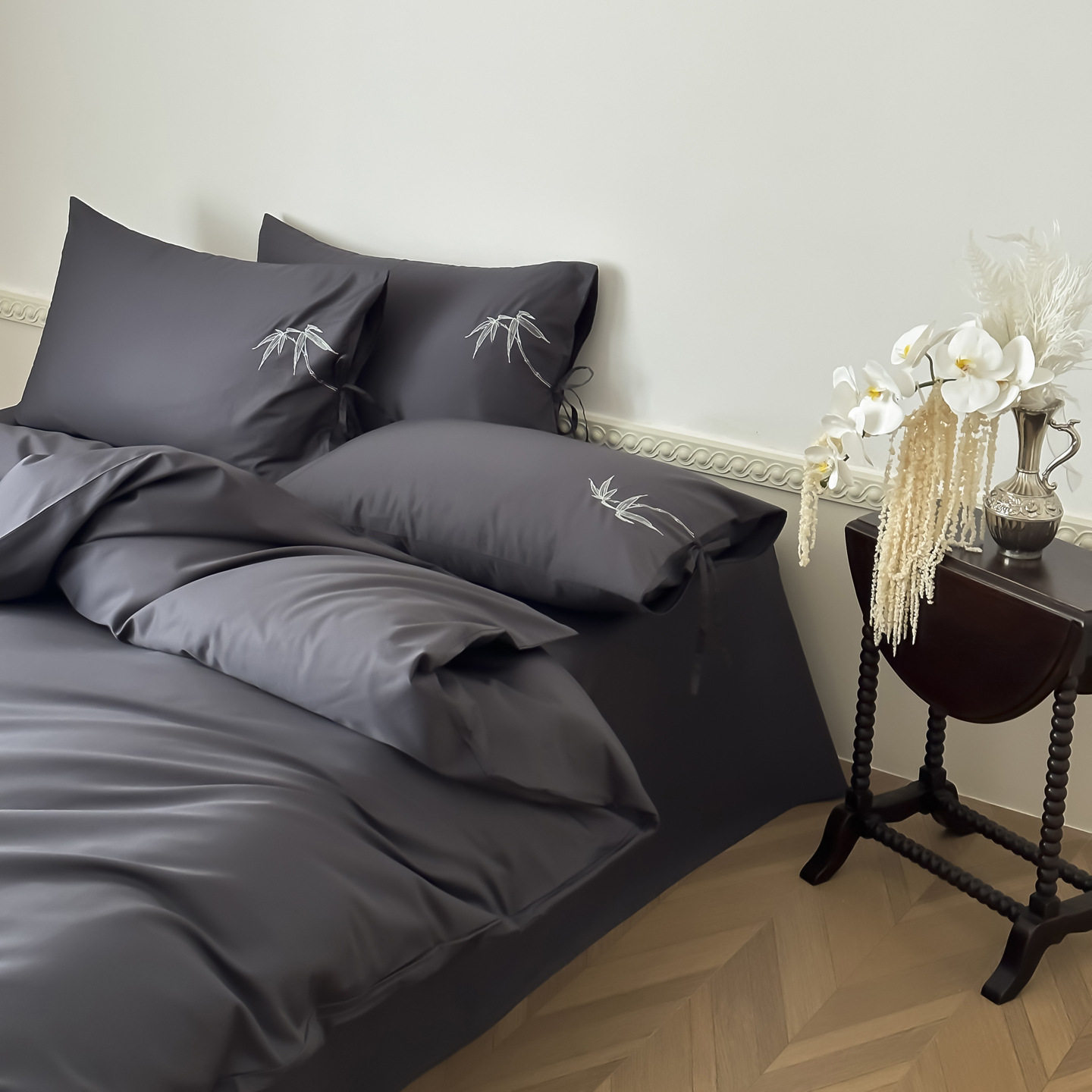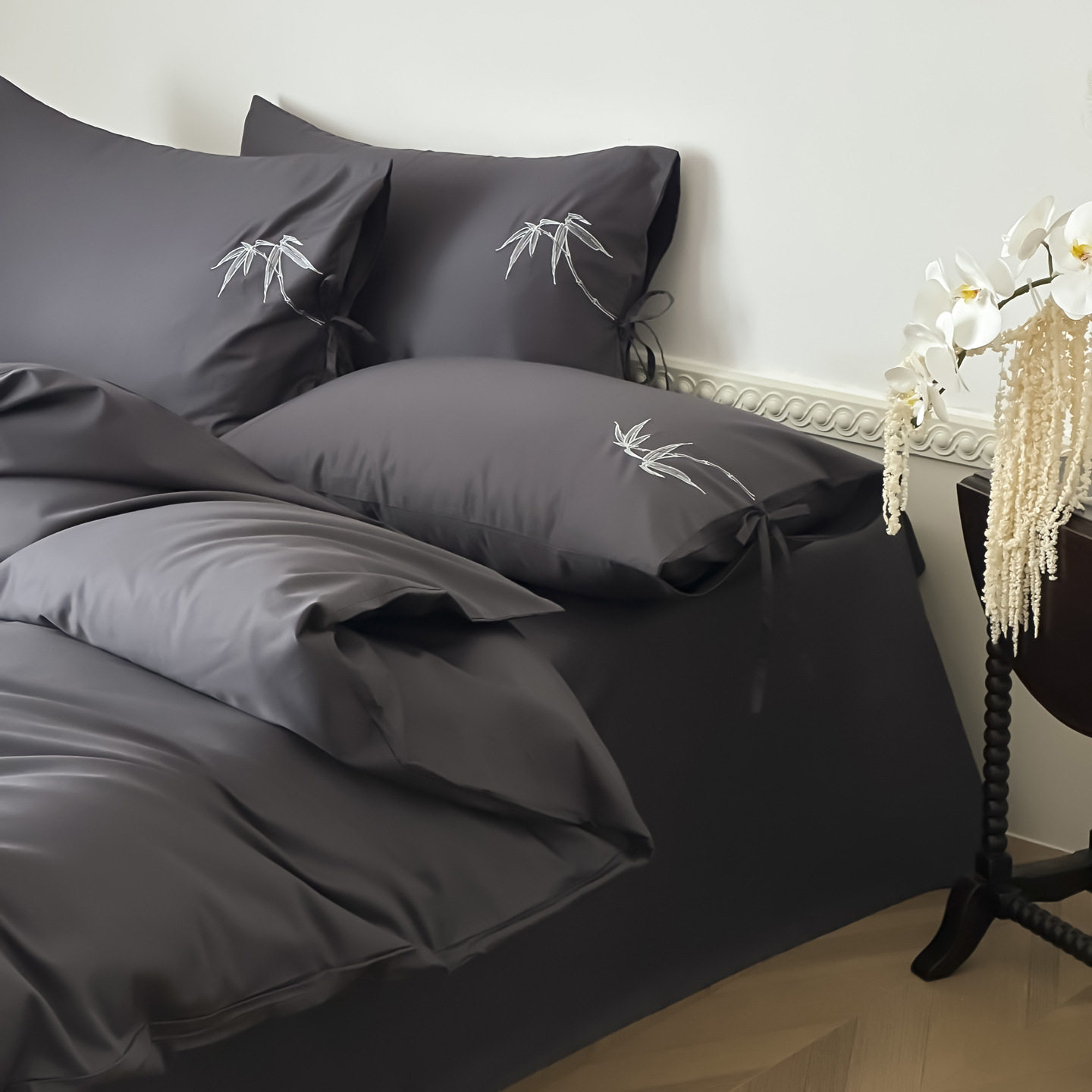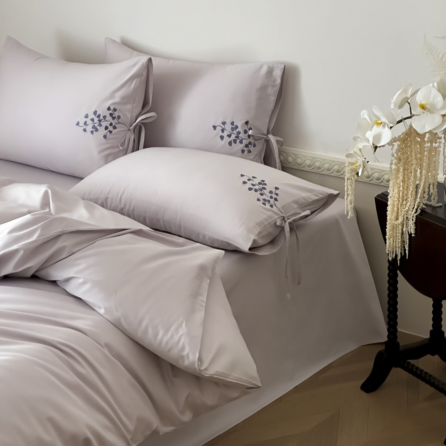 High-End Feel! Class a 100-Count Long-Staple Cotton Four-Piece Set, Solid Color Embroidered Bow Pillowcase, Pure Cotton Duvet Cover, Bed Sheet