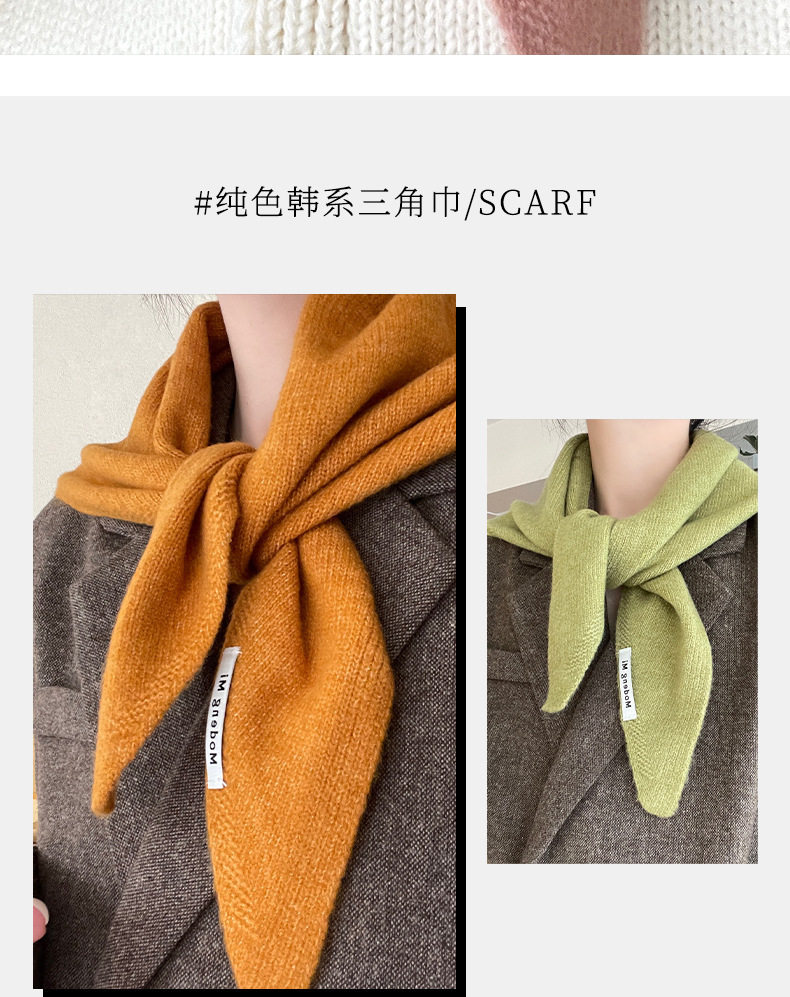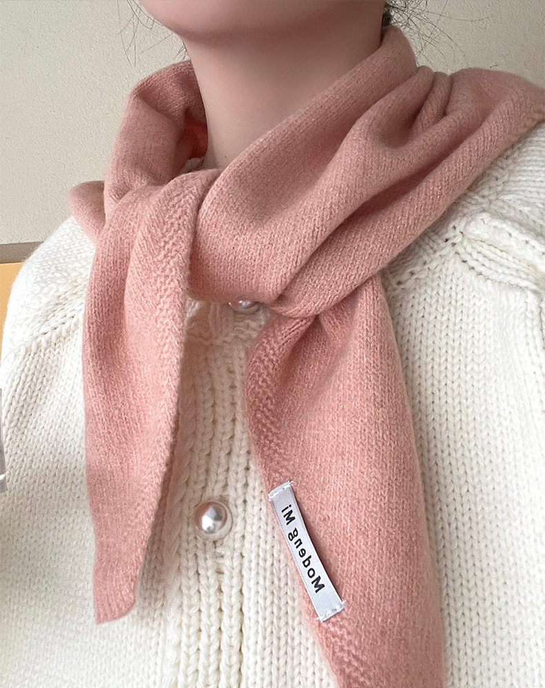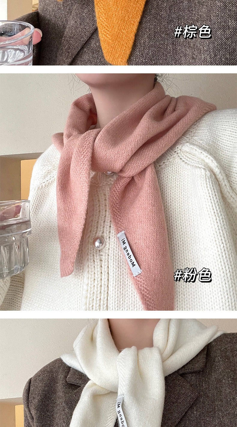 Solid Color Shawl Niche Brand Wool Knitted Triangle Scarf Women's Headscarf Knitted Scarf Multi-Functional Warm and Versatile