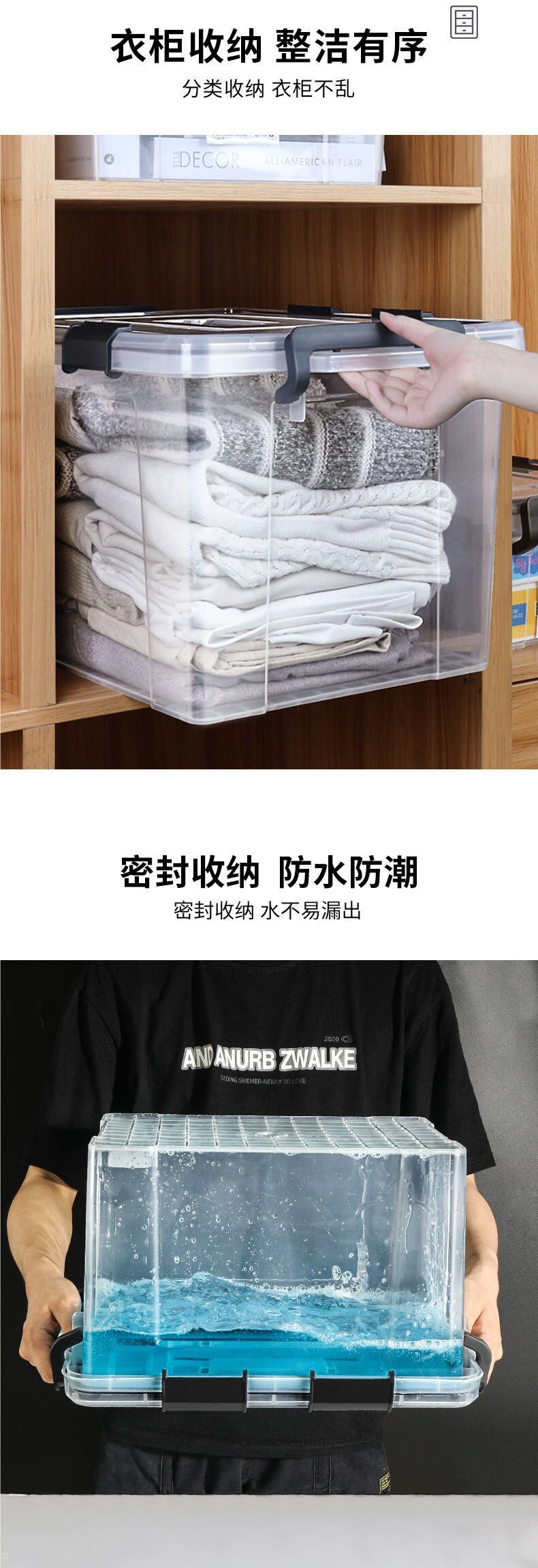 Sealed Storage Box Transparent Extra Large Thickeneded Moisture-Proof Box with Silicone Ring Household Clothes Storage Whole Aiyou Toys