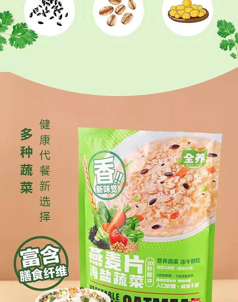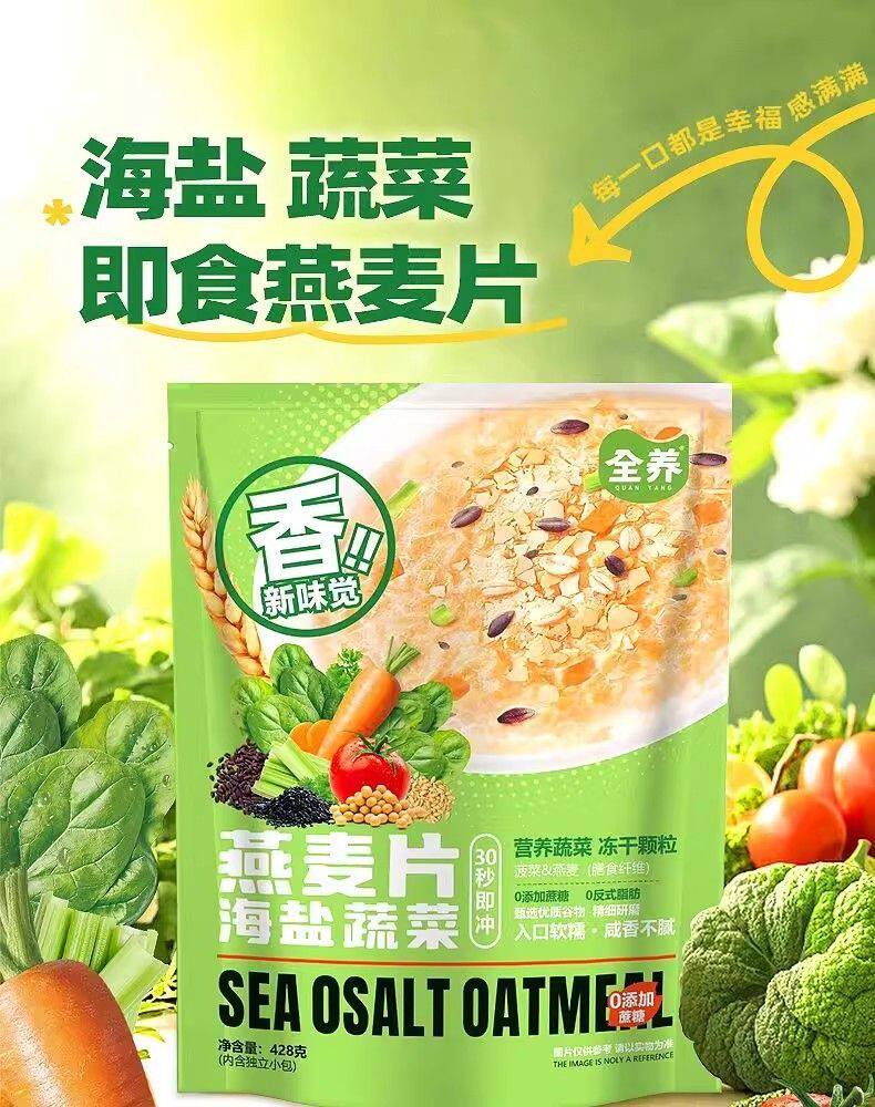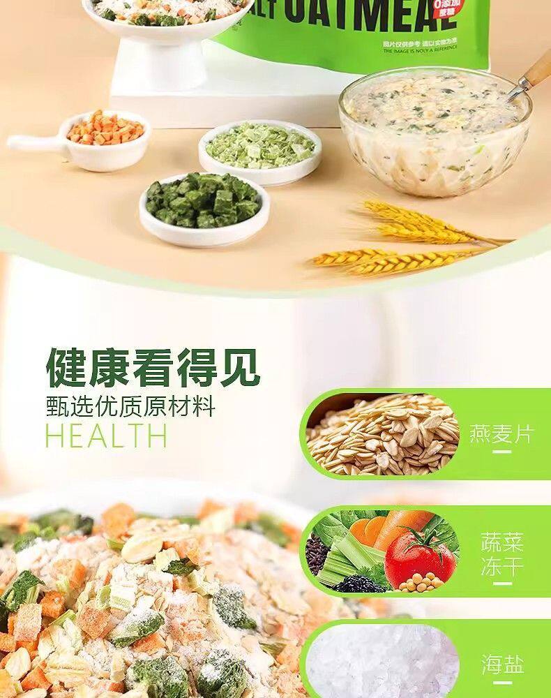| Packaging specifications | Sea salt salty fruit and vegetable oatmeal 428g*2 bags,Sea salt salty fruit and vegetable oatmeal 428g*3 bags,Sea salt salty fruit and vegetable oatmeal 428g*1 bag |