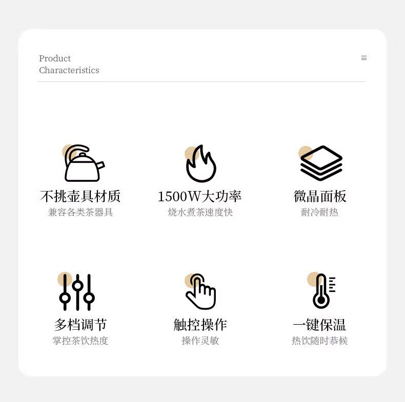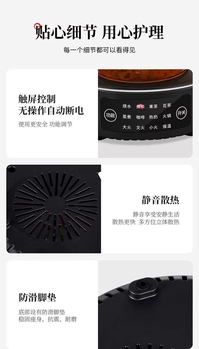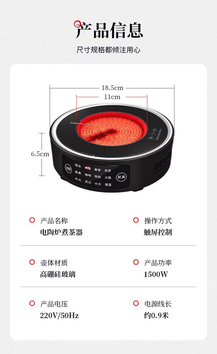 | Color | White-1500w-smart electric ceramic stove,Black-1500w-smart electric ceramic stove,Upgraded white 1500 watt [firepower can be adjusted regularly],Upgraded yahei 1500 watts [firepower can be adjusted regularly],Black-1500 watts + measuring pot 450 ml,White-1500 watts + measuring pot 450 ml,White-1500w+bamboo wooden lift pot 1000ml,Black-1500w+bamboo wooden lift pot 1000ml,White - 1500 watts + 1000 ml kettle,Black - 1500 watts + 1000 ml kettle,White-1500w + copper handle kettle 1000ml,Black-1500w + copper handle kettle 1000ml |