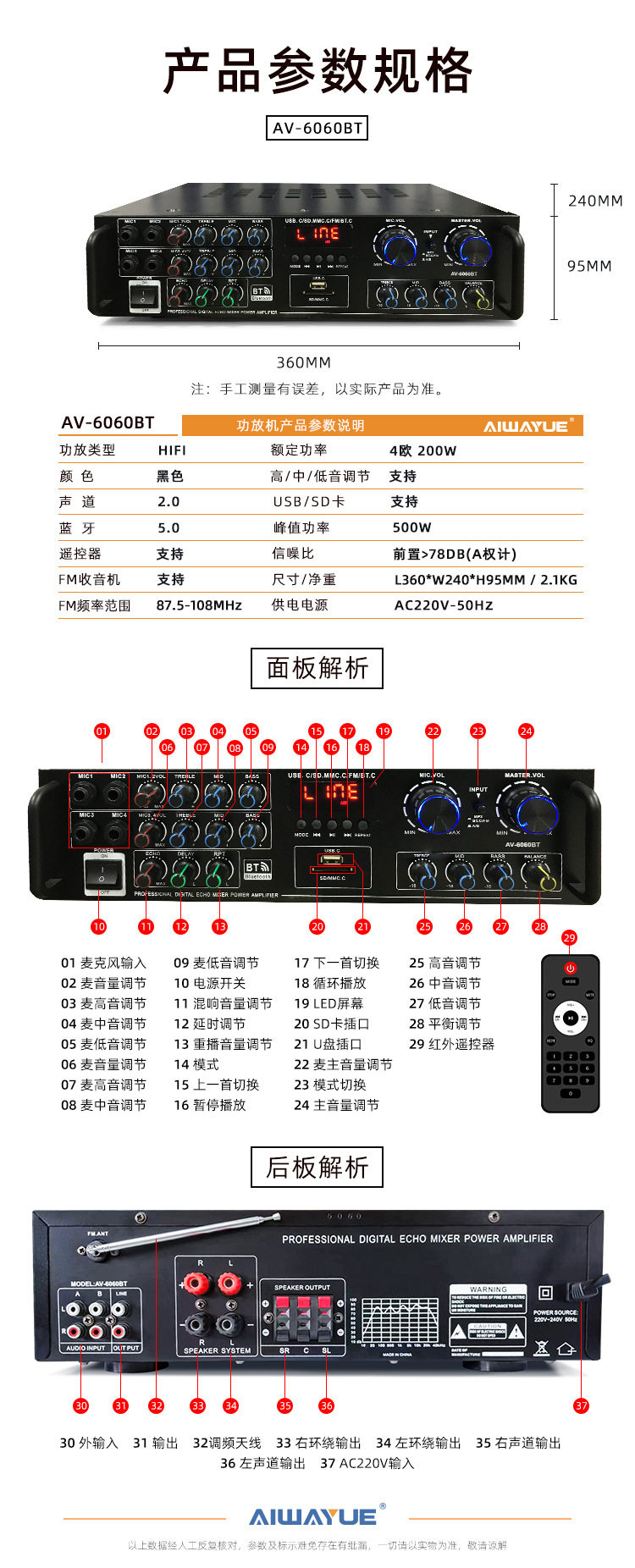 | Item number | Av-6060bt |