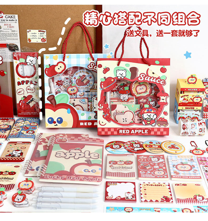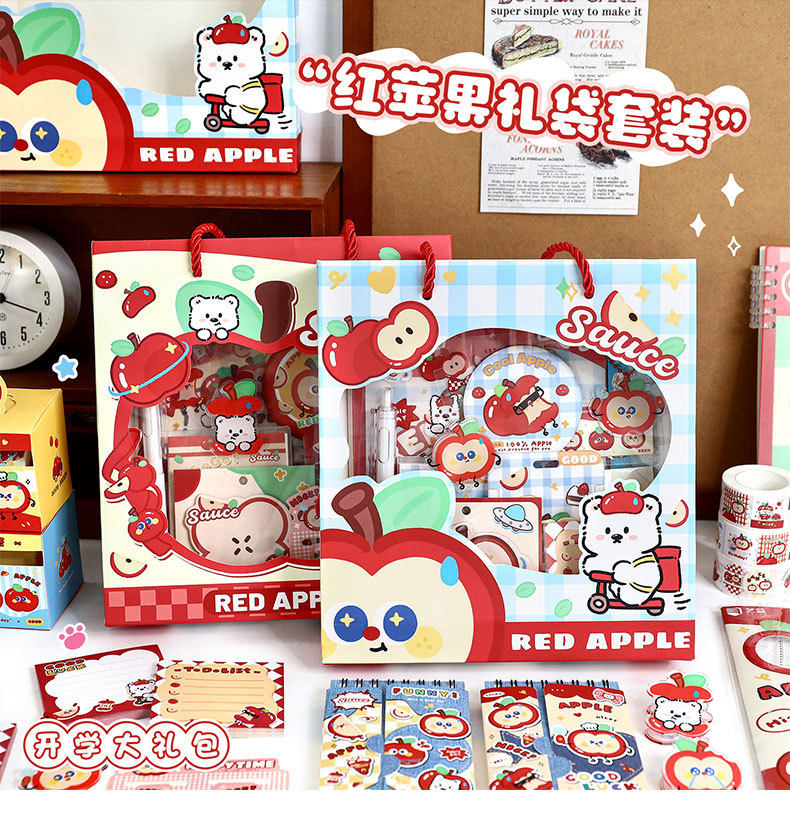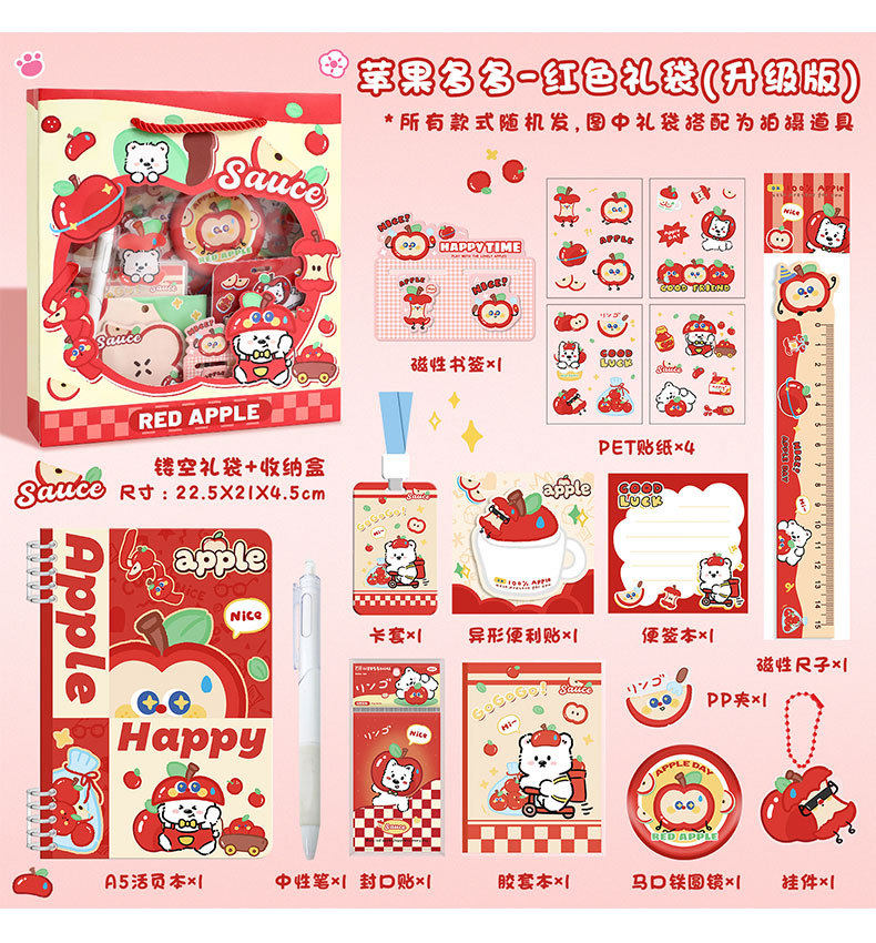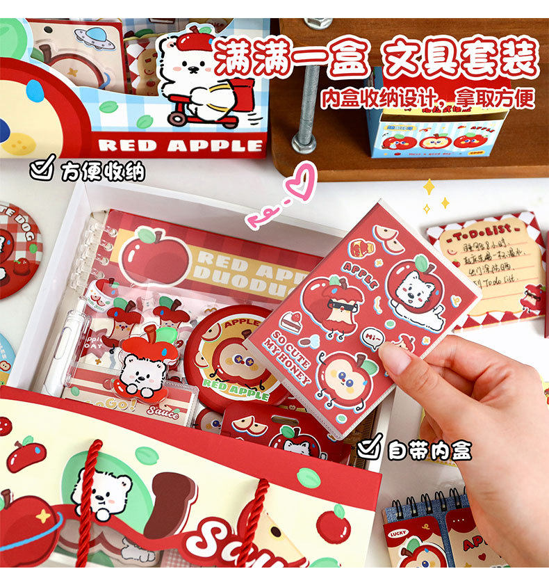 Apple Duoduo Stationery Set Cute Student School Supplies Gift Pack Back-To-School Season Stationery Gifts Souvenirs