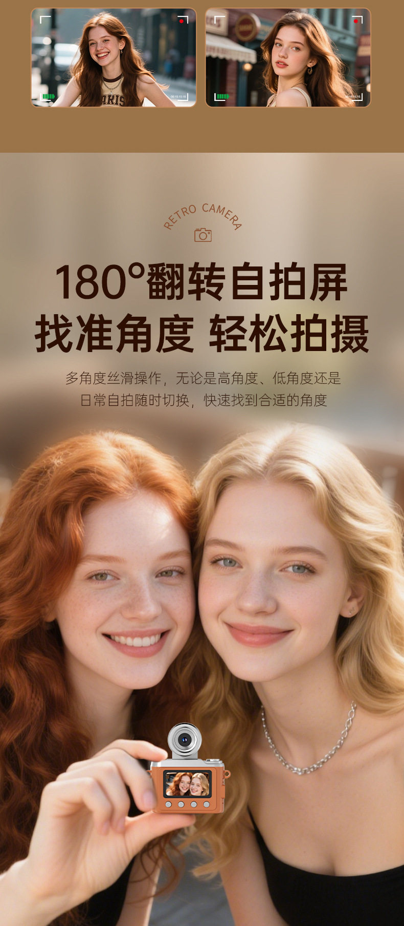 | Body color | Rotate lens can take selfies in classic black 1080p hd,Rotating lens for selfie retro brown 1080p hd,8gtf memory card,16gtf memory card,32gtf memory card,64gtf memory card,128gtf memory card |