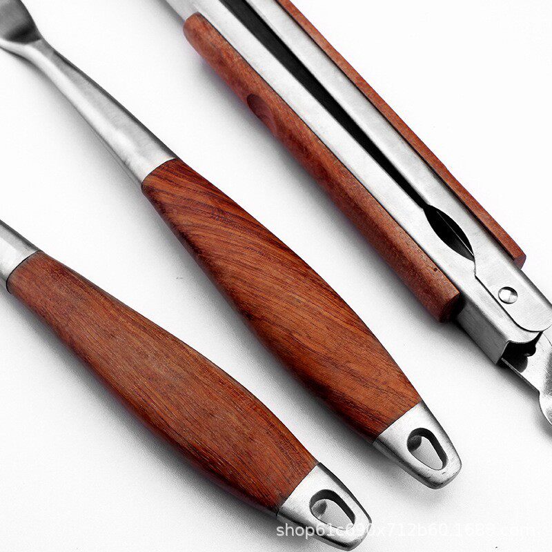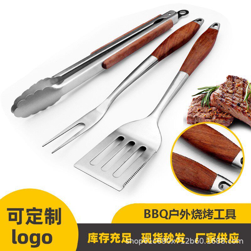 Manufacturer's Supply Barbecue Tool Set Combination Stainless Steel Barbecue Tools Bbq Outdoor Multi-Combination Three-Piece Wooden Handle