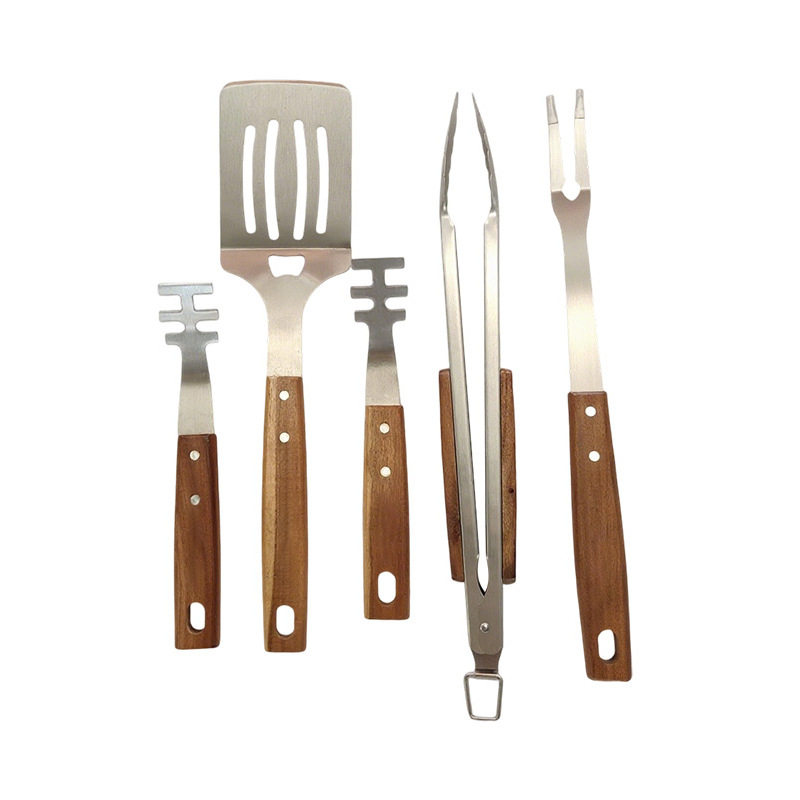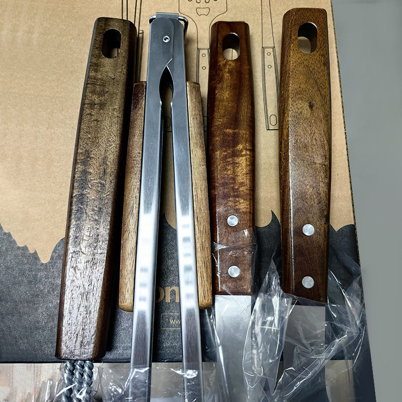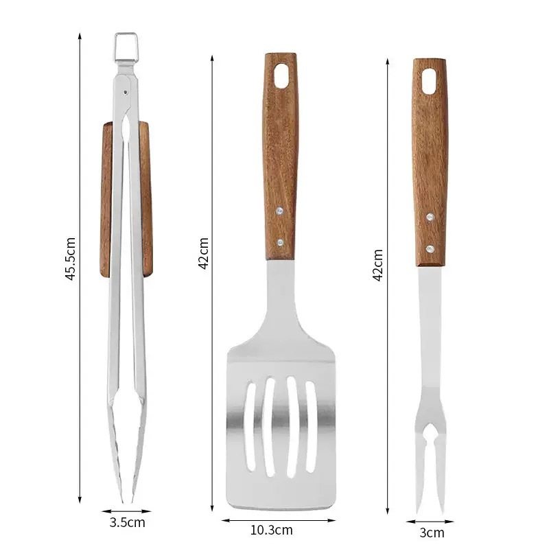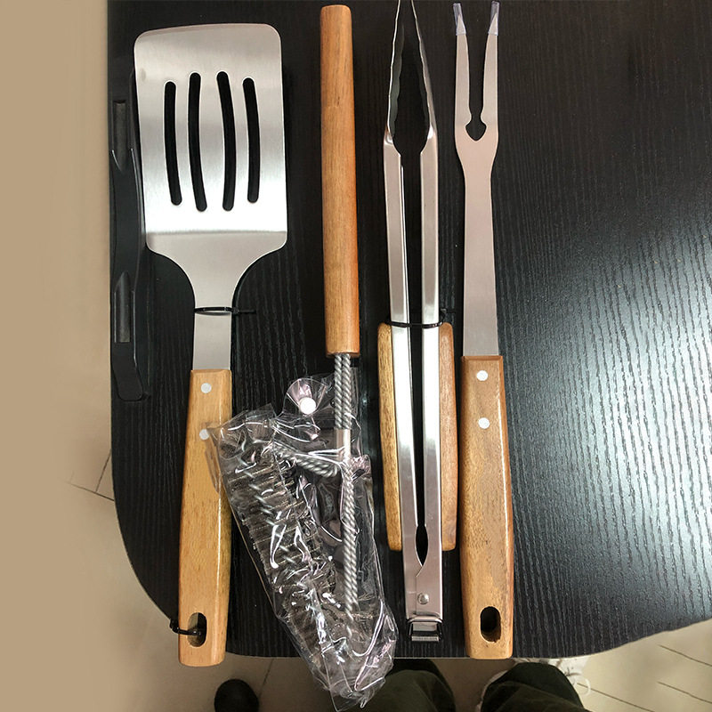 Amazon Bestsellers Cross-Border Stainless Steel Barbecue Set Wooden Handle Design Food-Grade Stainless Steel