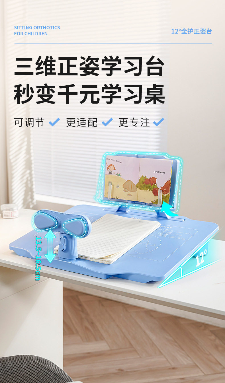 Younai Kidsren's Sitting Posture Corrector Gold Twelve Degrees Writing and Reading Posture Correction Hunchback Prevention Myopia Artifact