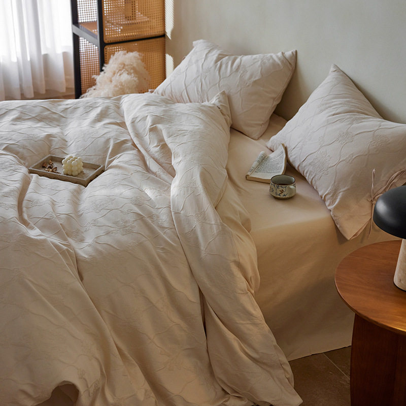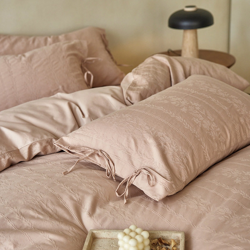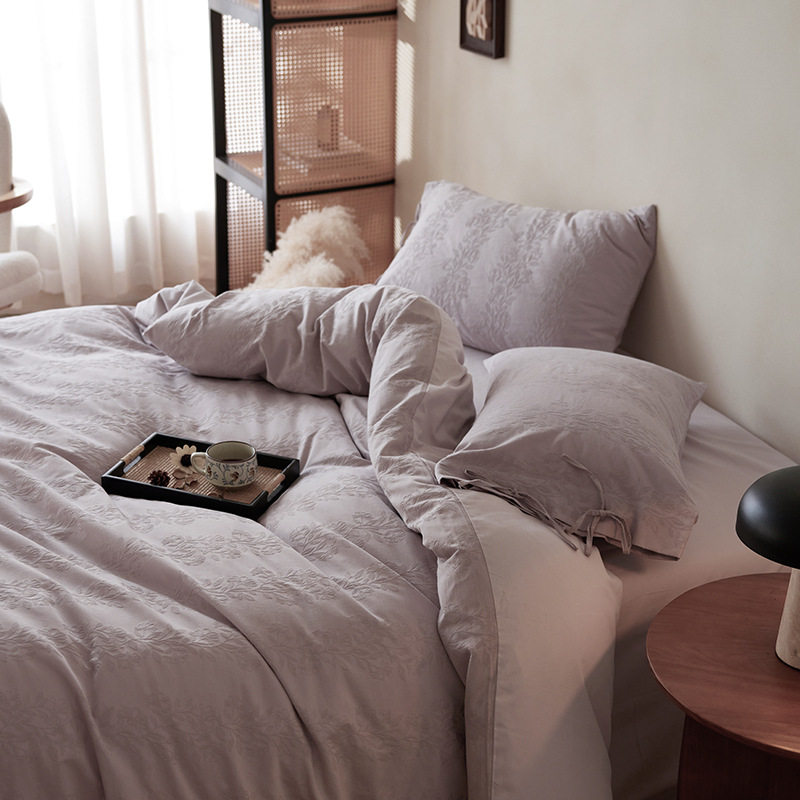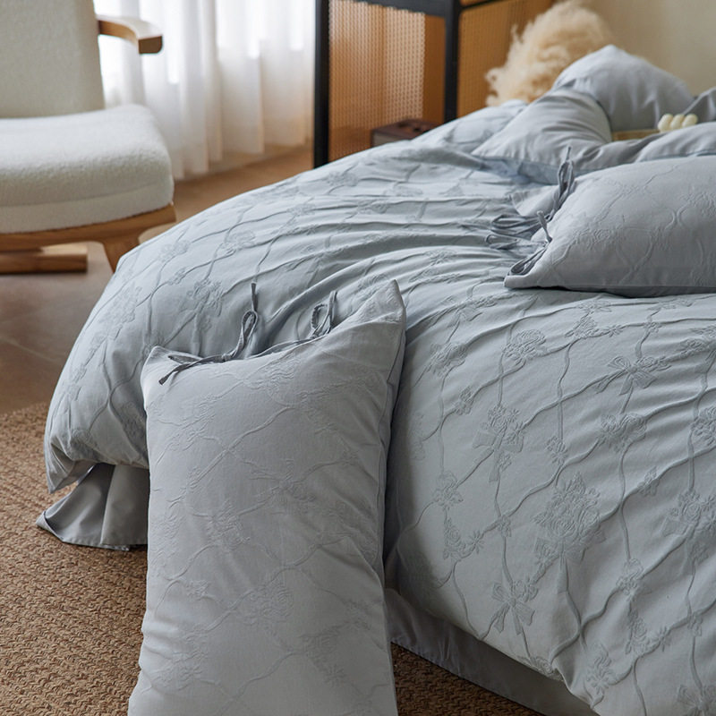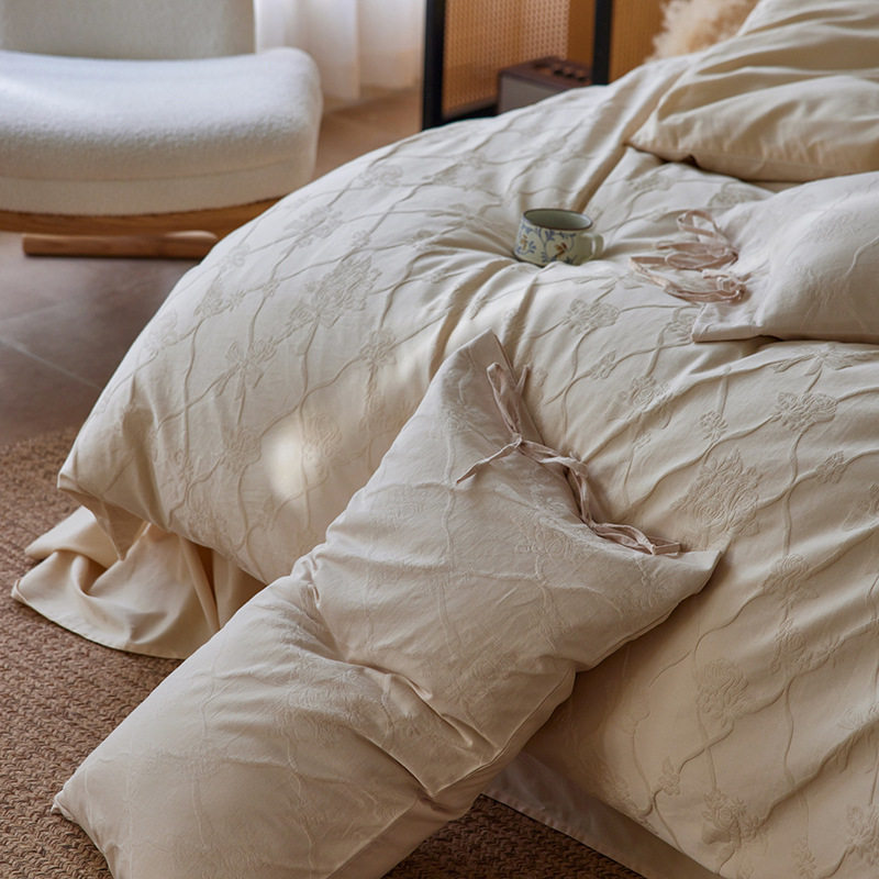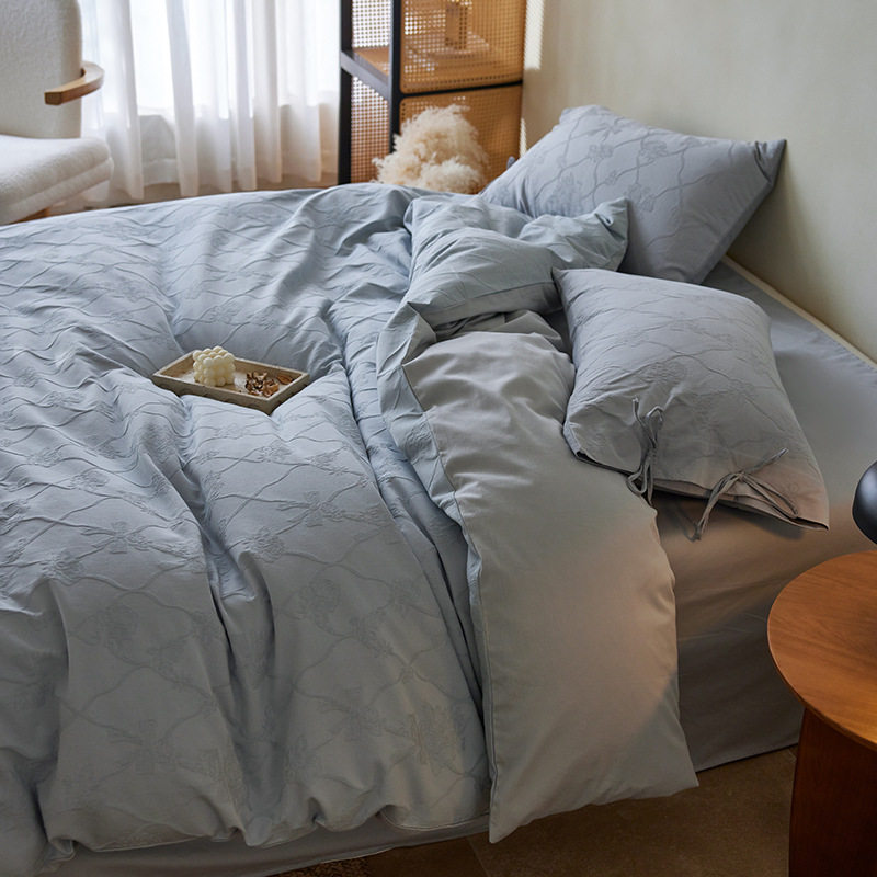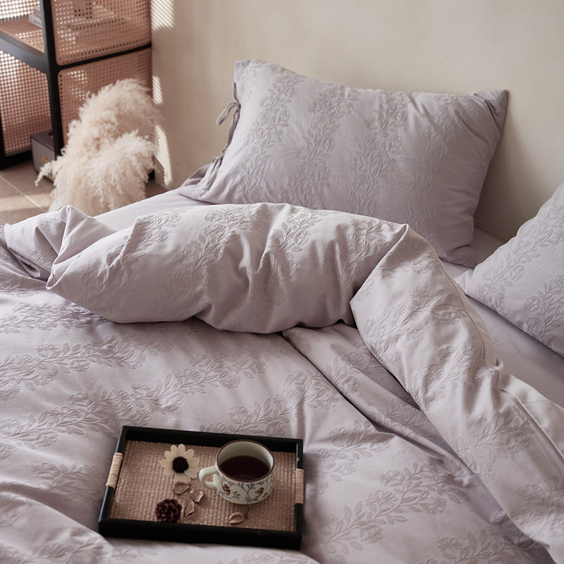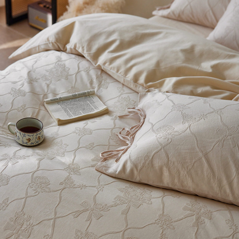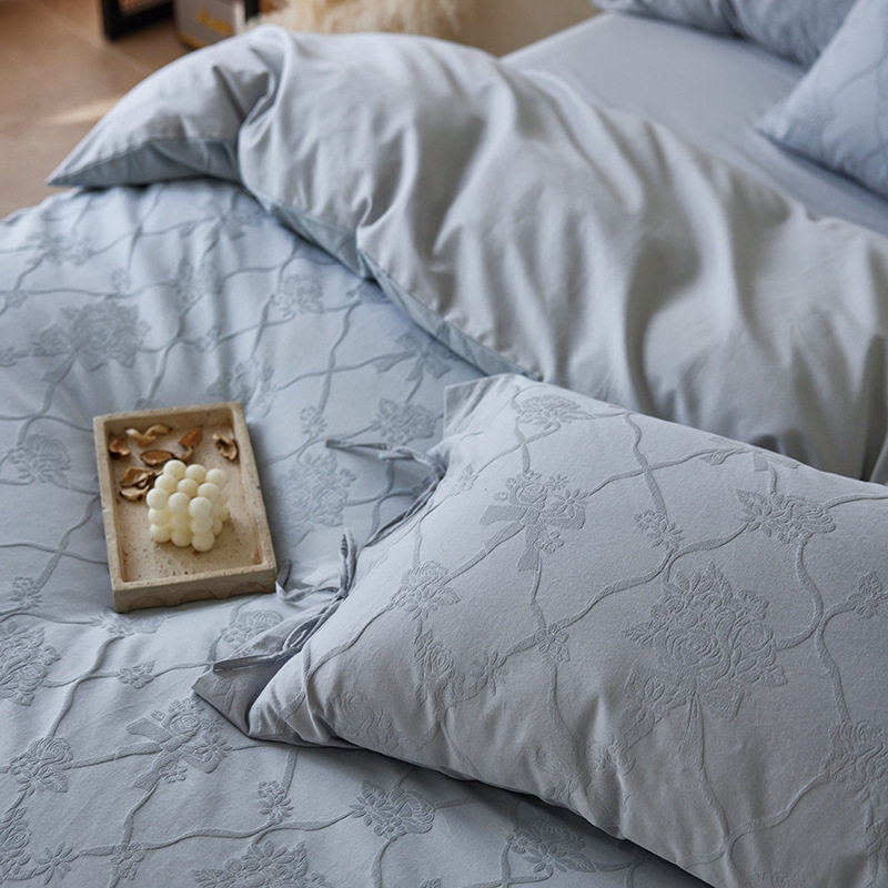 French-Style Light Luxury All-Cotton Brushed Four-Piece Set with Embossed Jacquard, Soft Pure Cotton Duvet Cover, Suitable for Sleeping Naked, Thickened Cotton