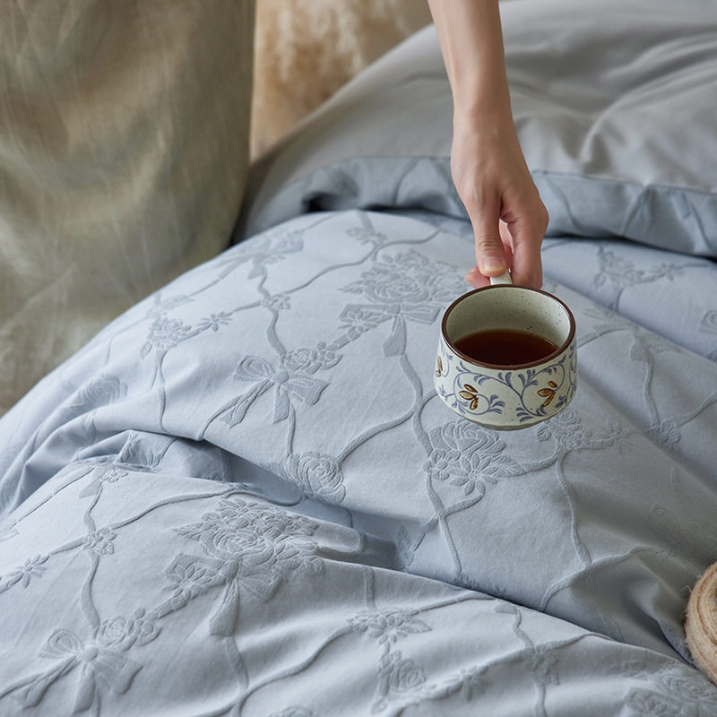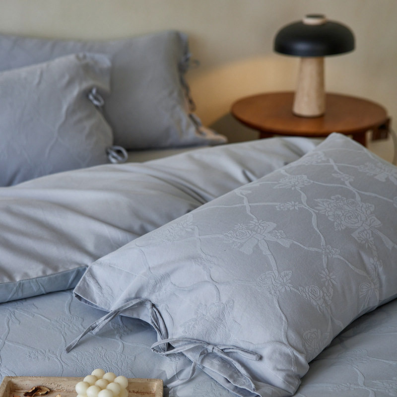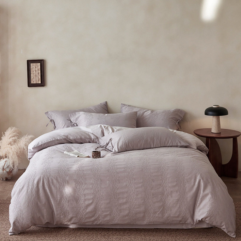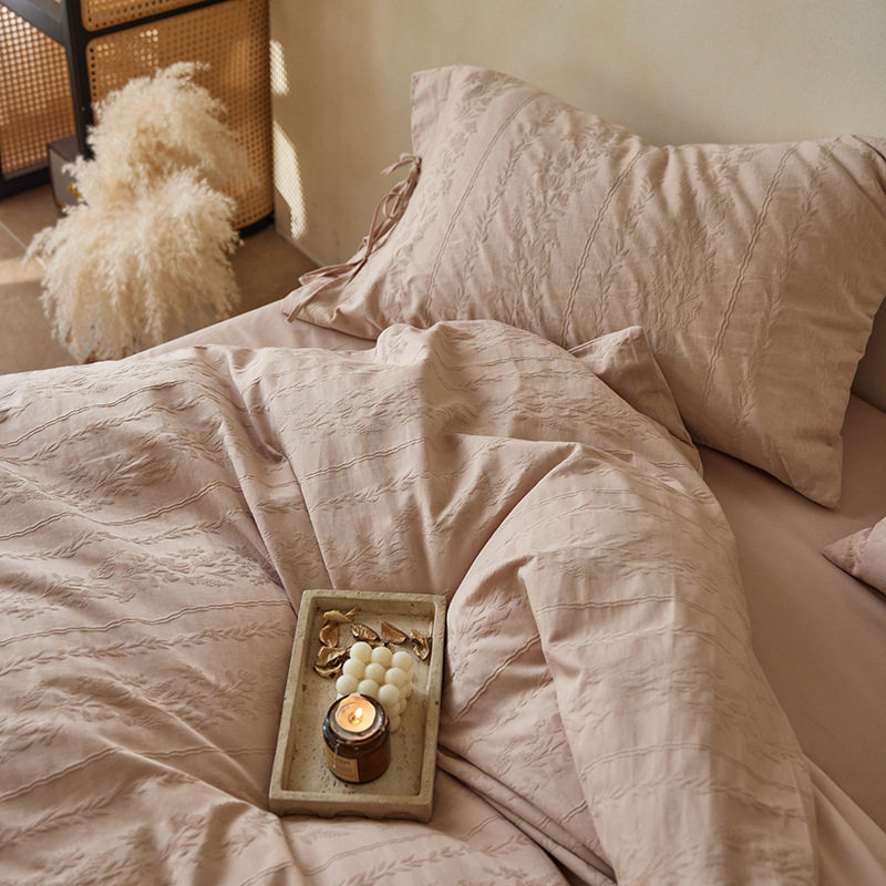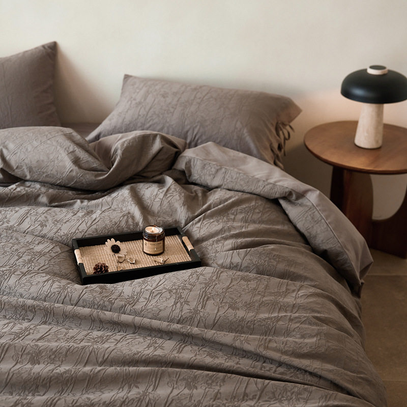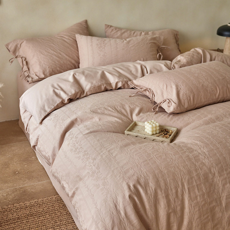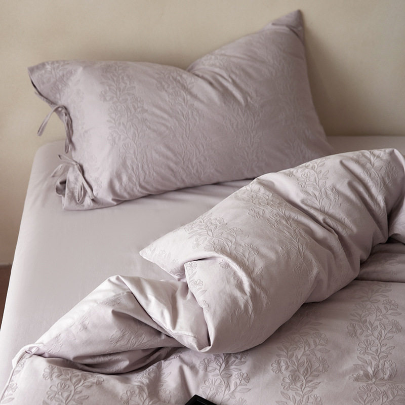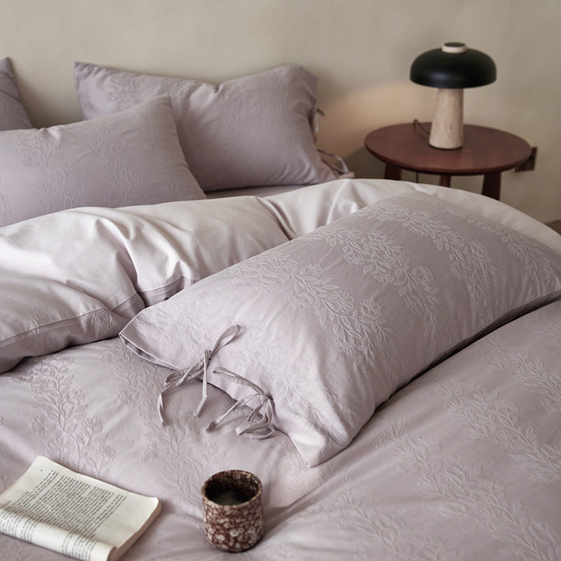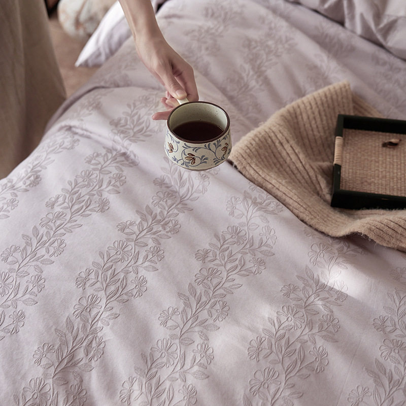 French-Style Light Luxury All-Cotton Brushed Four-Piece Set with Embossed Jacquard, Soft Pure Cotton Duvet Cover, Suitable for Sleeping Naked, Thickened Cotton