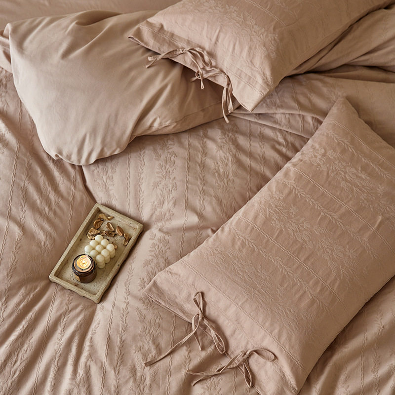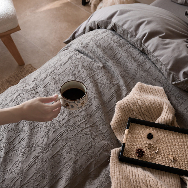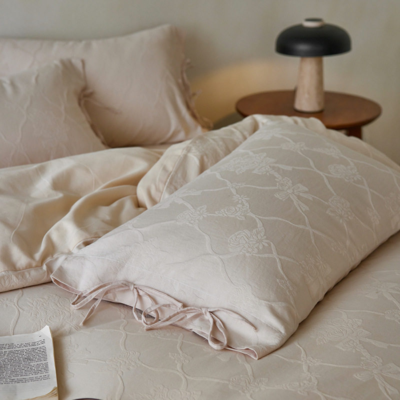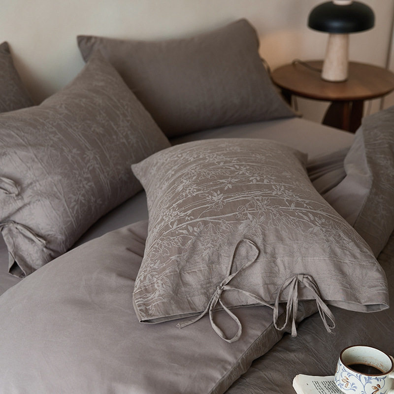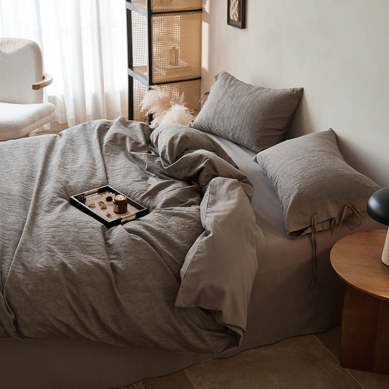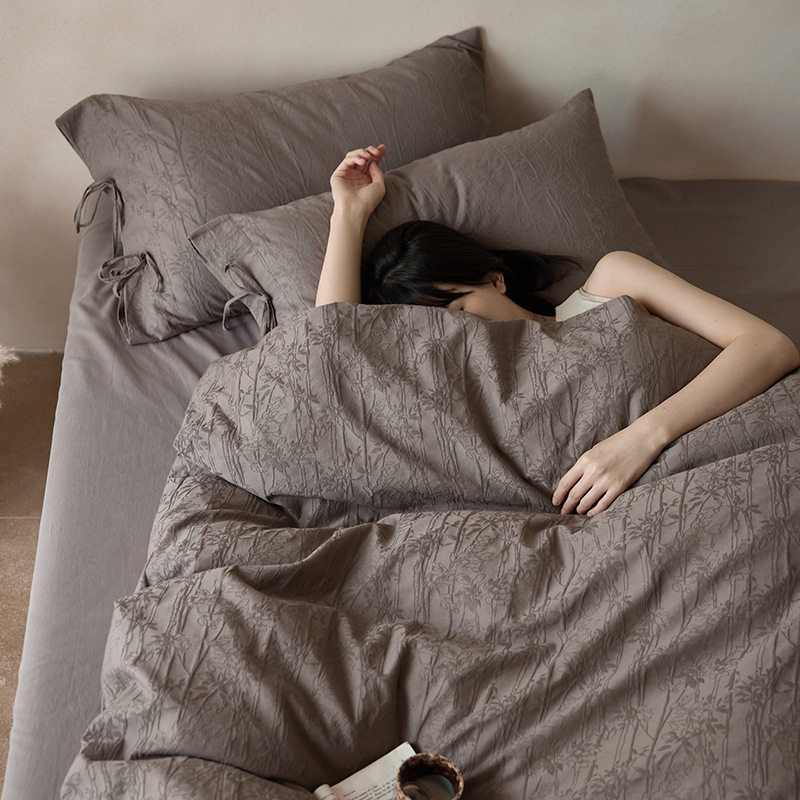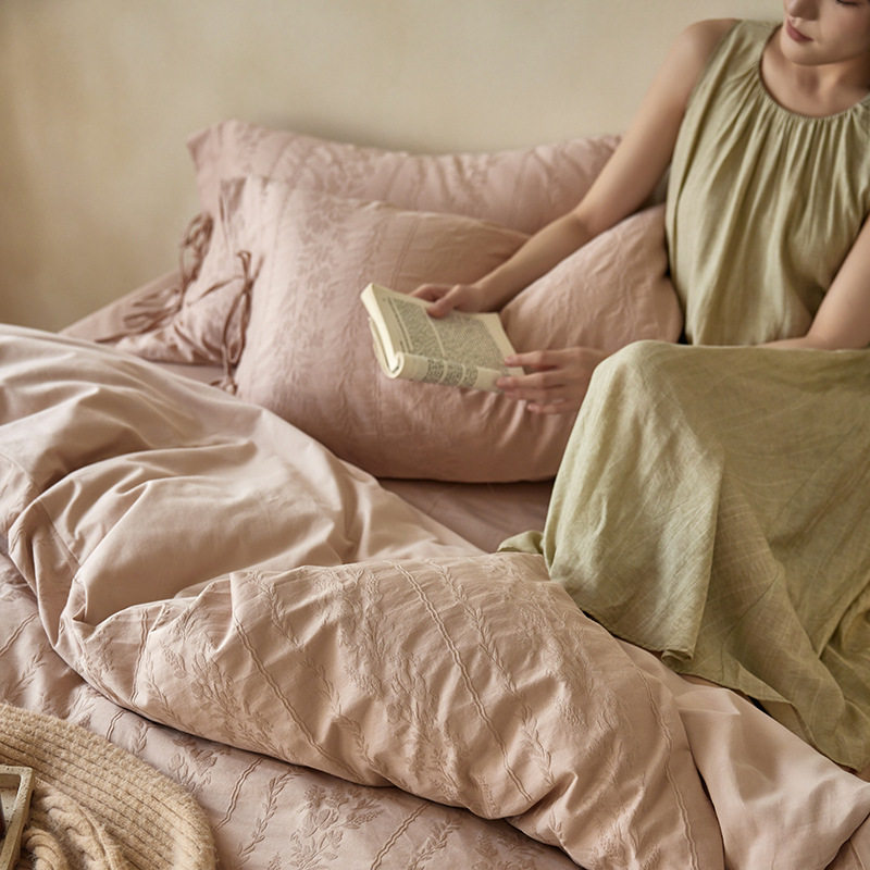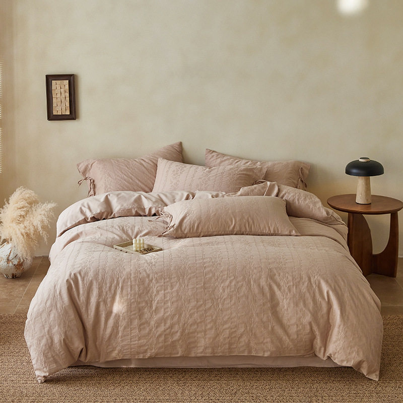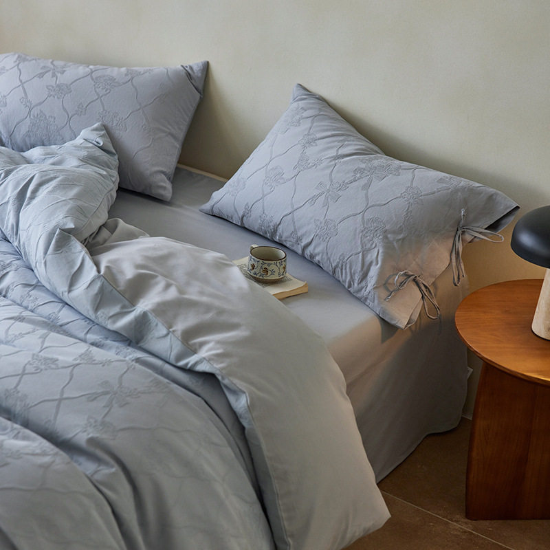 French-Style Light Luxury All-Cotton Brushed Four-Piece Set with Embossed Jacquard, Soft Pure Cotton Duvet Cover, Suitable for Sleeping Naked, Thickened Cotton
