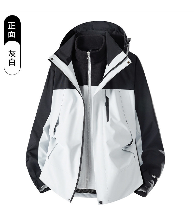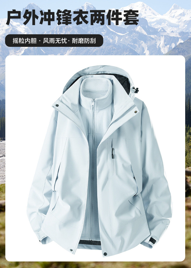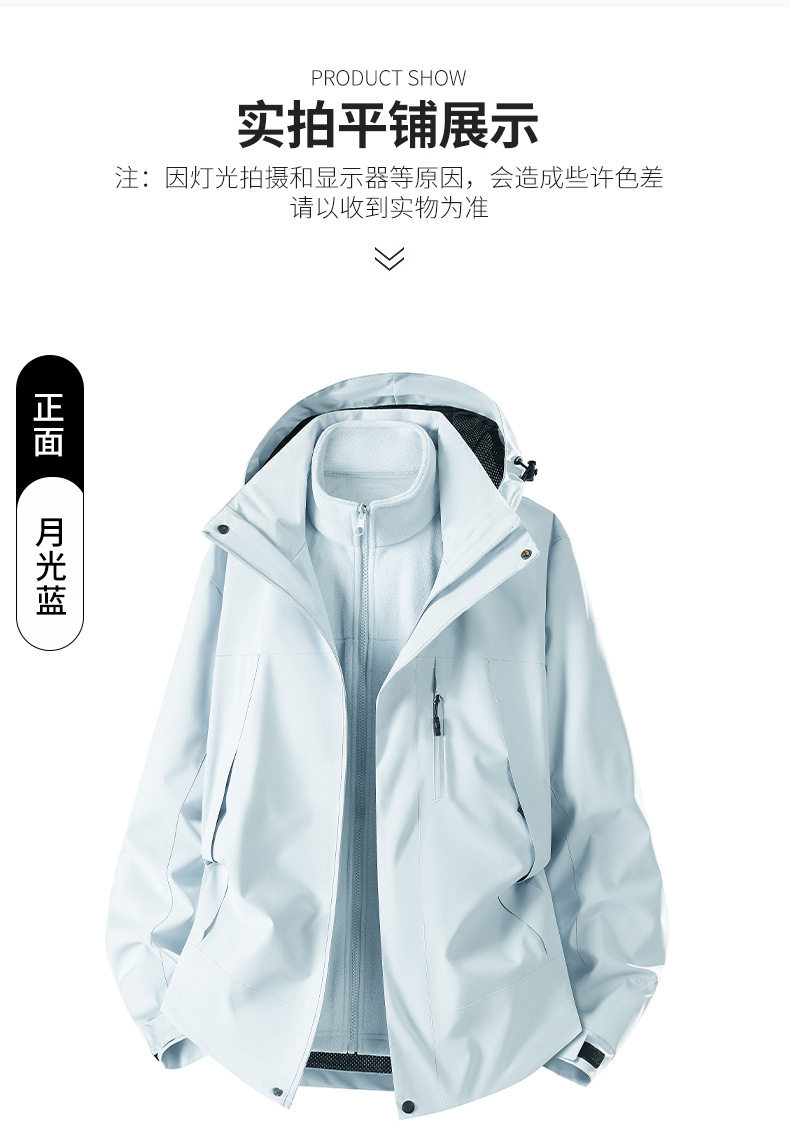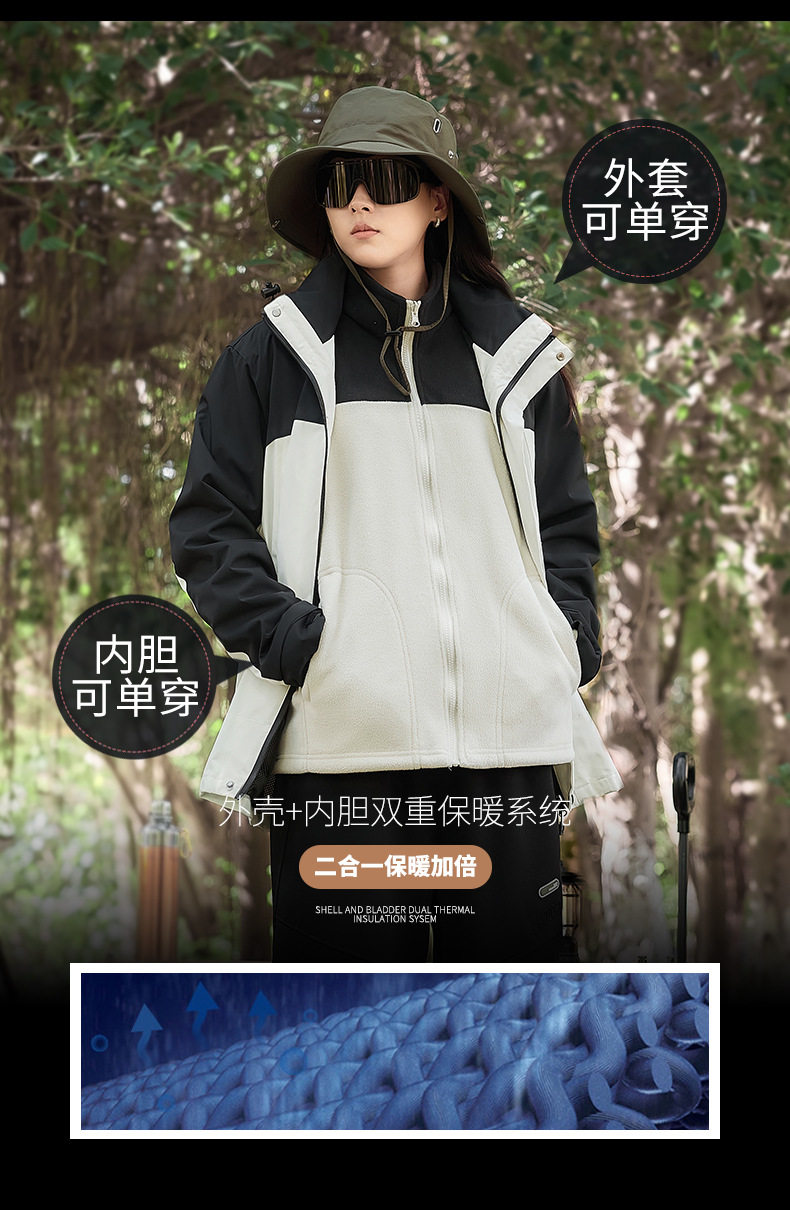 Men's and Women's Outdoor Mountaineering Travel Jacket Fleece Liner Three-In-One Detachable Windproof and Water-Repellent Couple Jacket