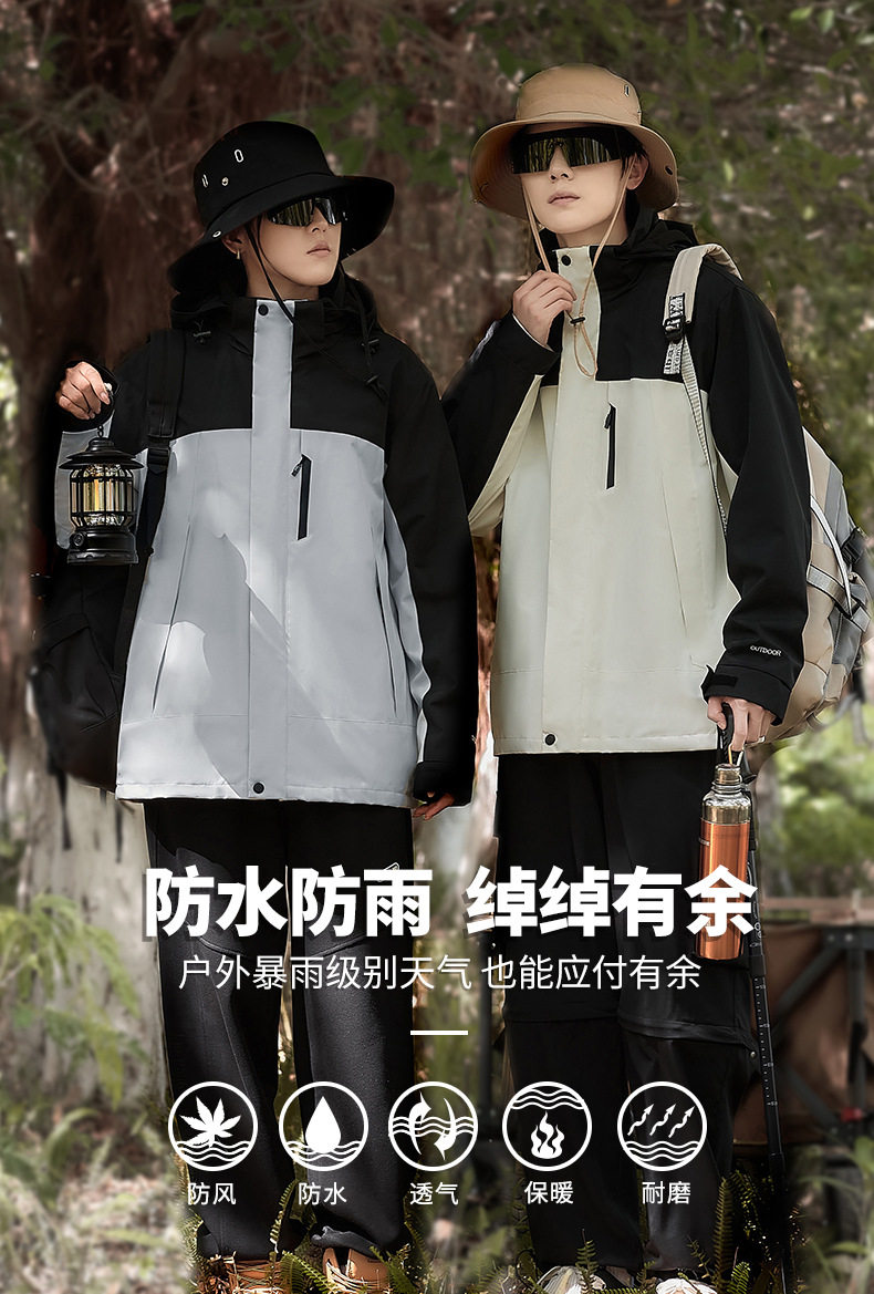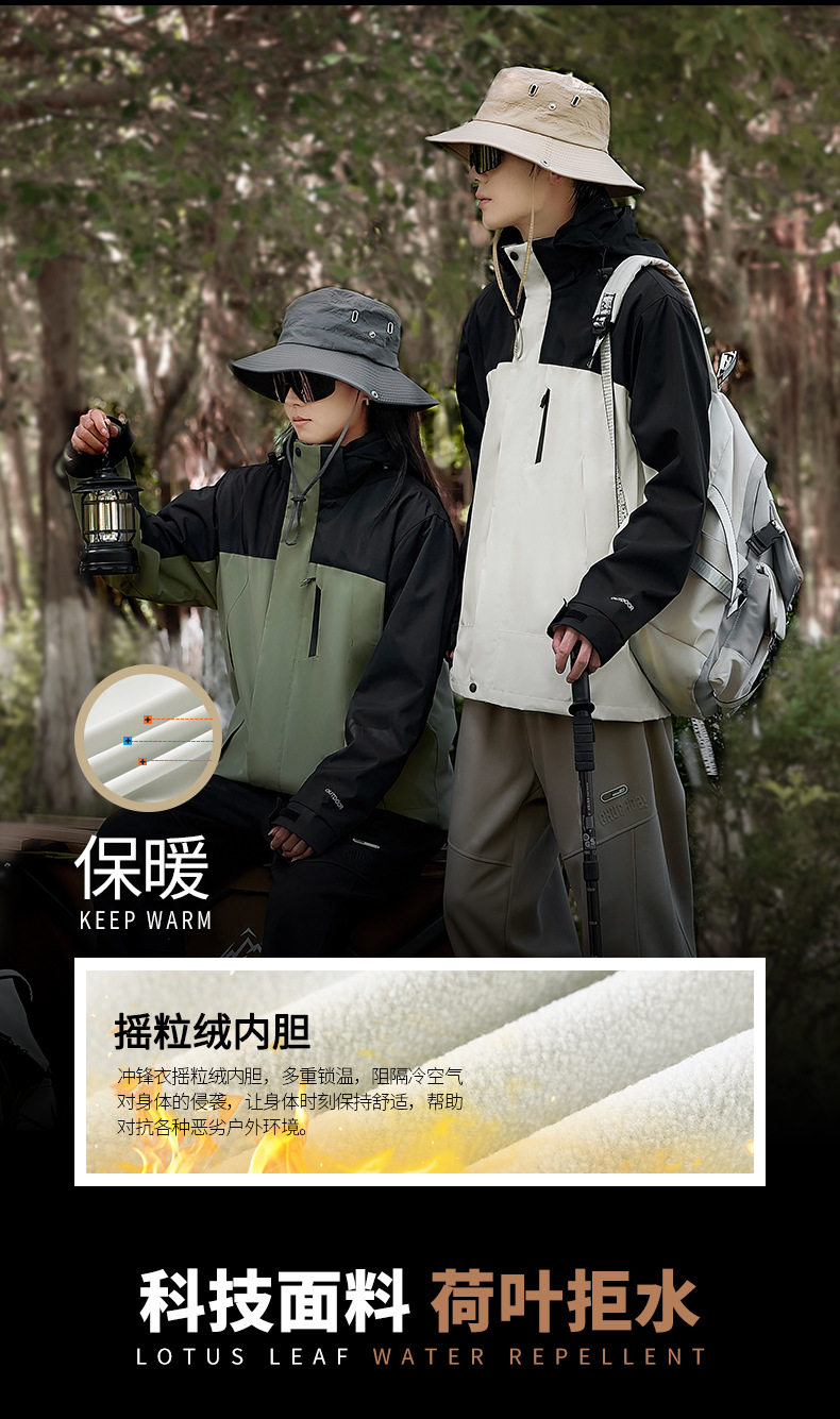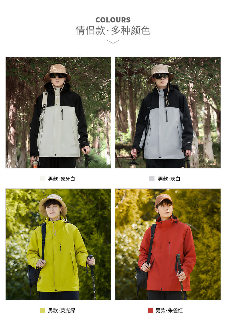 Men's and Women's Outdoor Mountaineering Travel Jacket Fleece Liner Three-In-One Detachable Windproof and Water-Repellent Couple Jacket