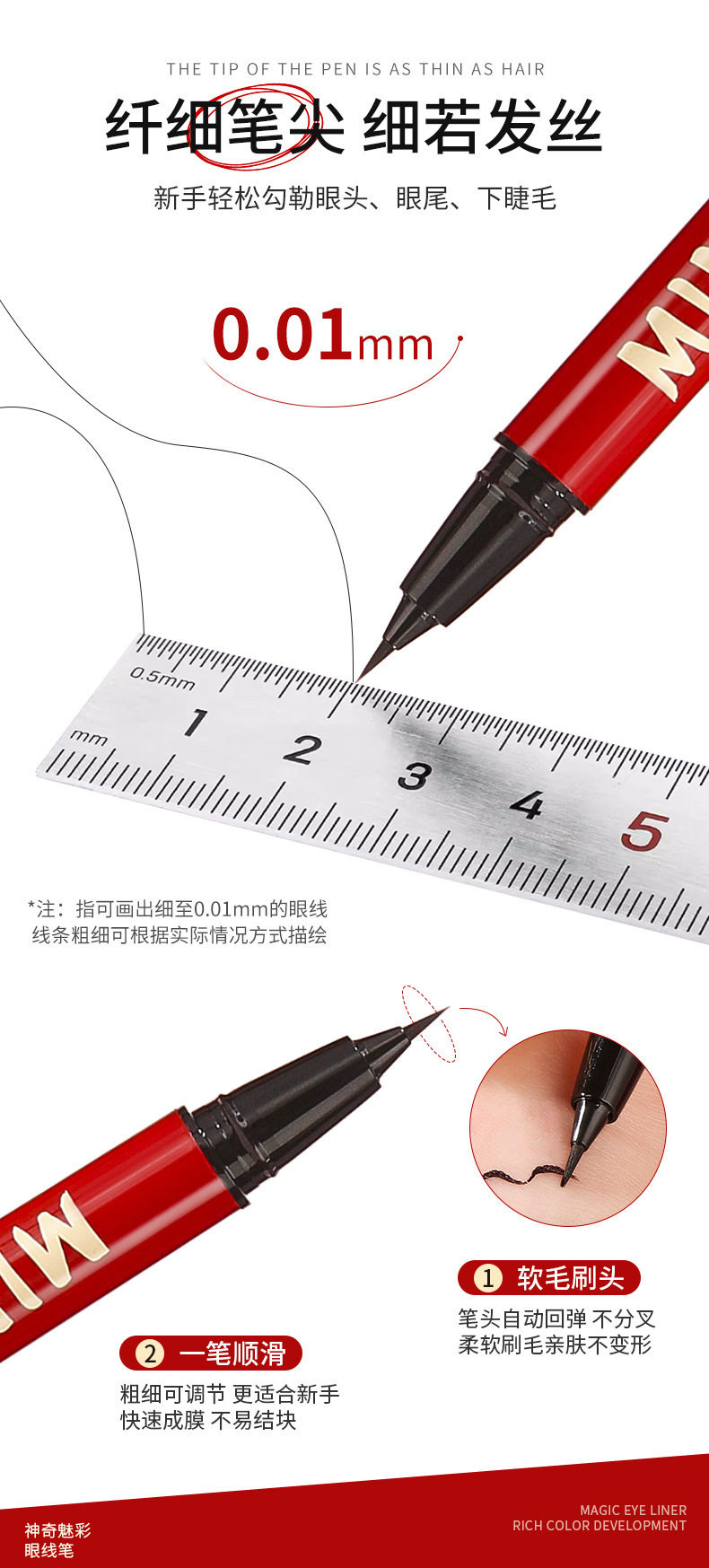 Ming Xizhi Eyeliner Does Not Smudge, Is Waterproof, Sweat-Proof, Does Not Smudge, Does Not Fall Off, Long-Lasting Ultra-Fine Liquid Eyeliner Pen