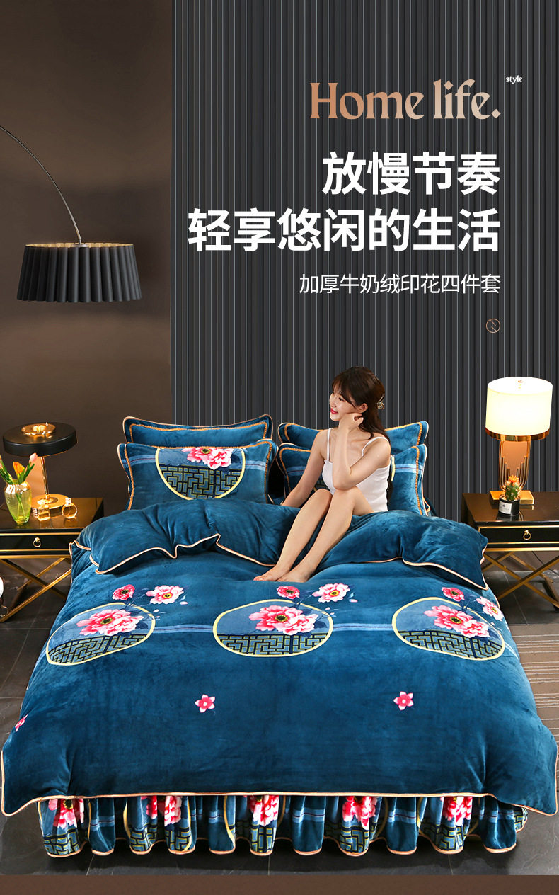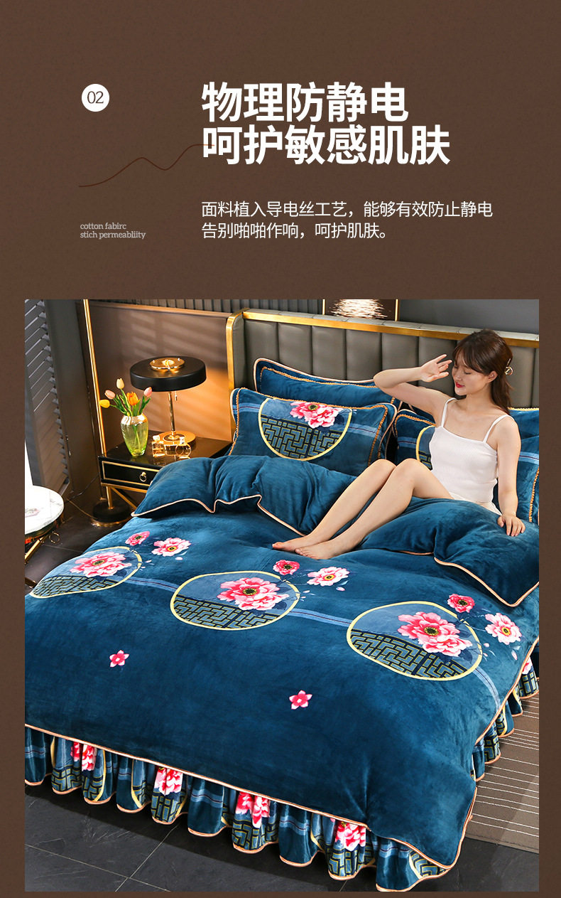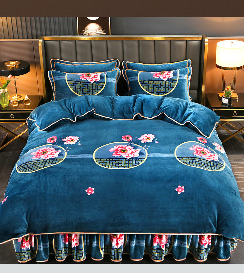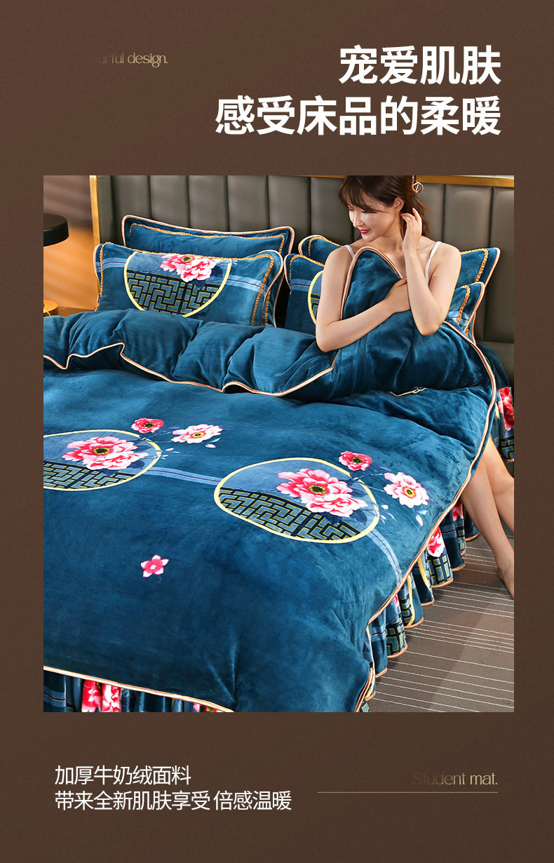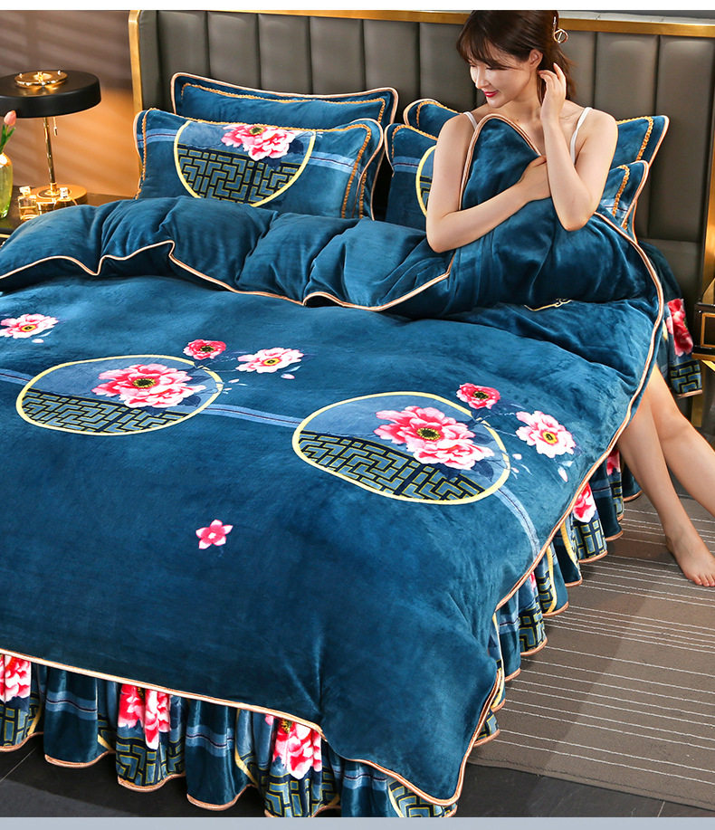 2025 New 8.5 Pounds 230 Grams High Weight Milk Velvet Four-Piece Set 5D French Velvet Bed Skirt Four-Piece Set