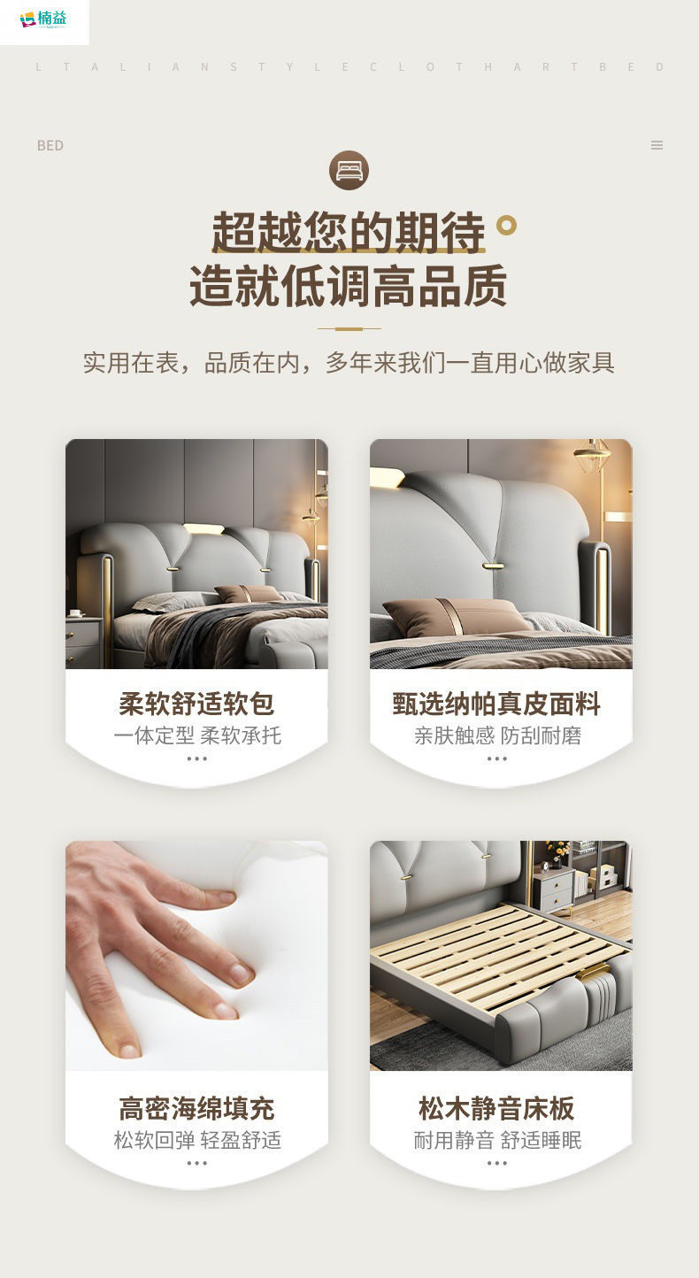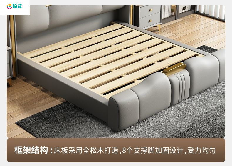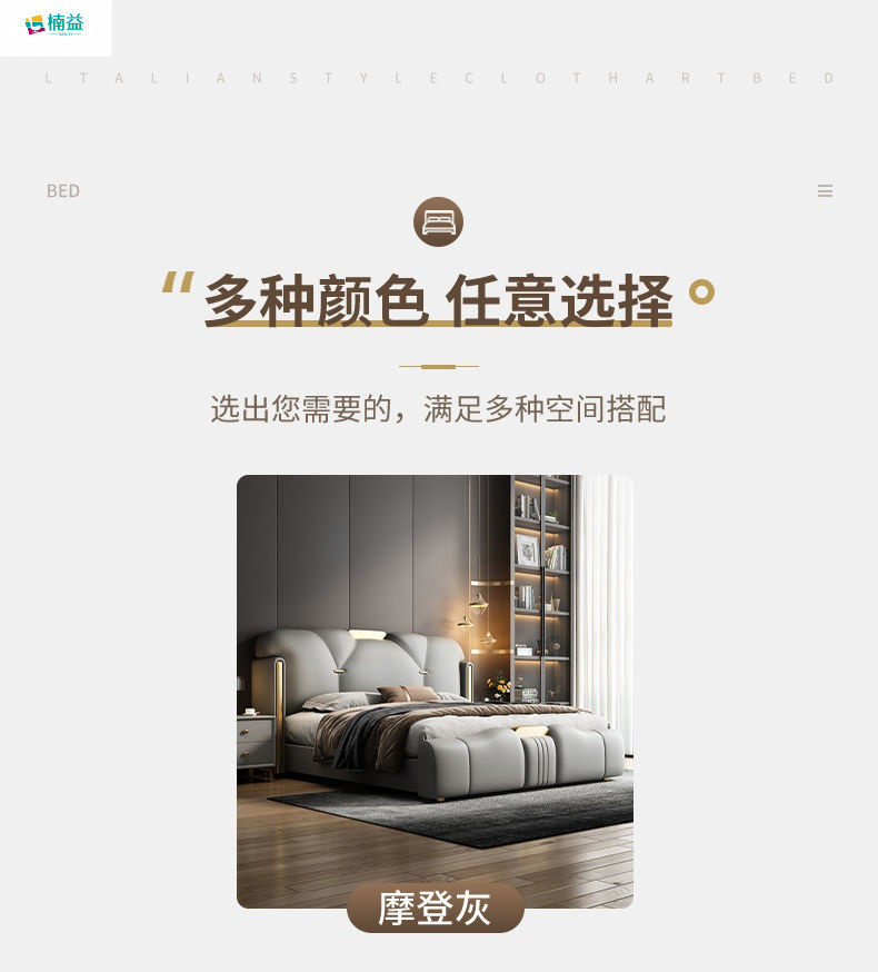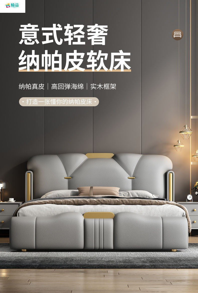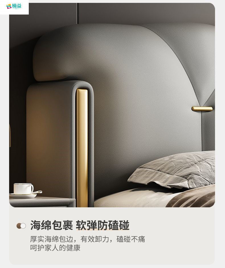 Italian-Style Bed, Light Luxury, Modern Minimalist, Nan Yi Double Bed, Master Bedroom, Internet Celebrity Large Bed, Multifunctional Storage Bed, Soft-Packed Wedding Bed