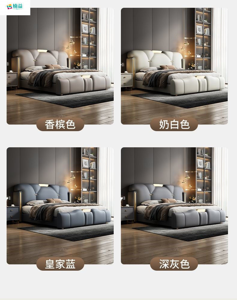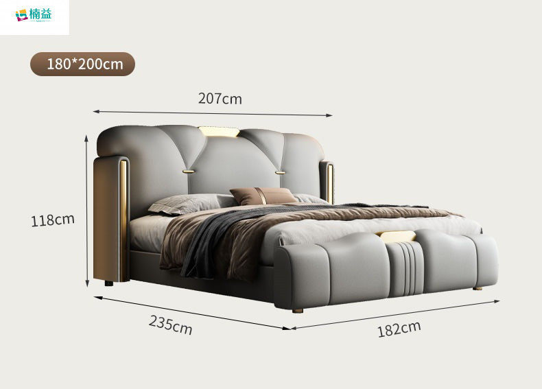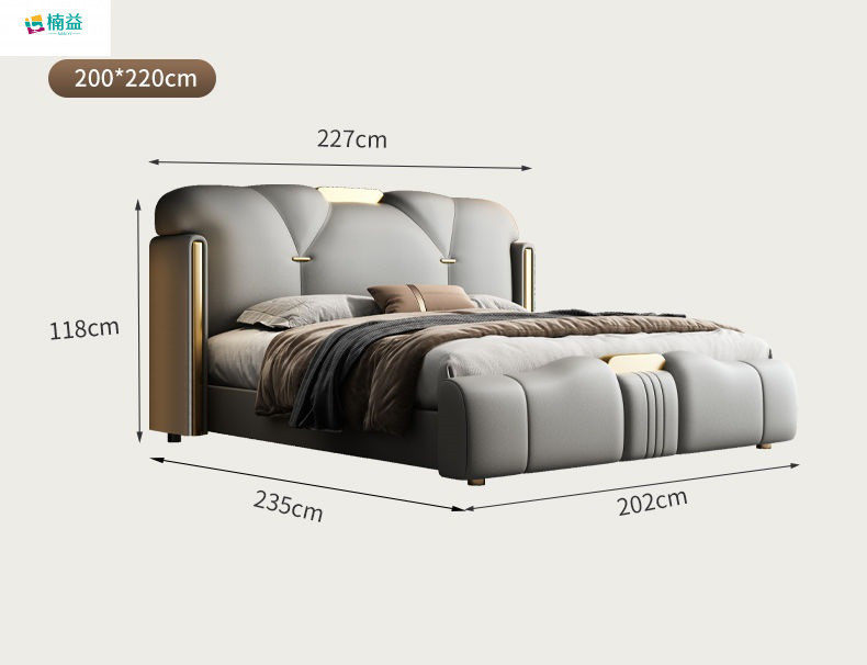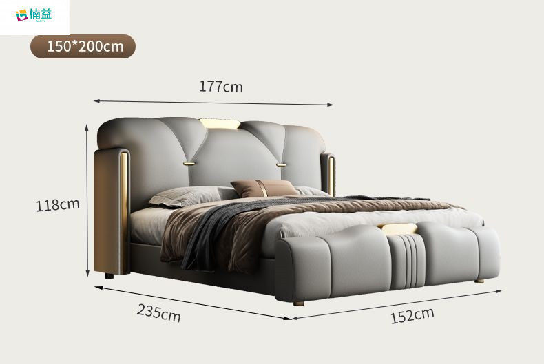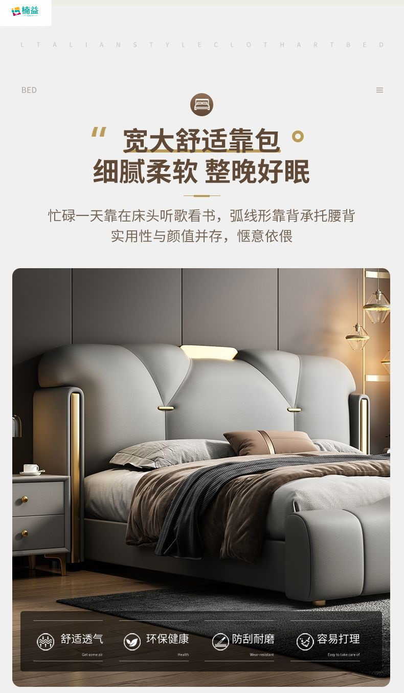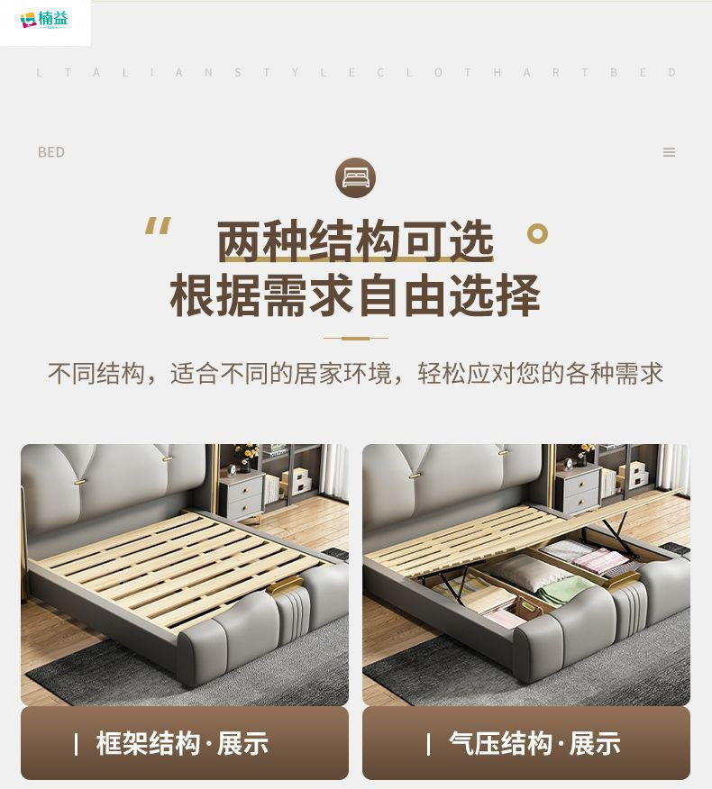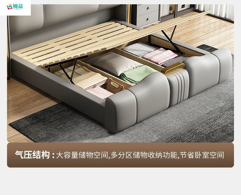 Italian-Style Bed, Light Luxury, Modern Minimalist, Nan Yi Double Bed, Master Bedroom, Internet Celebrity Large Bed, Multifunctional Storage Bed, Soft-Packed Wedding Bed
