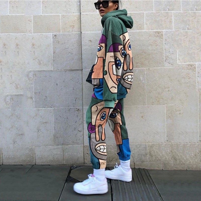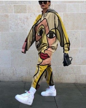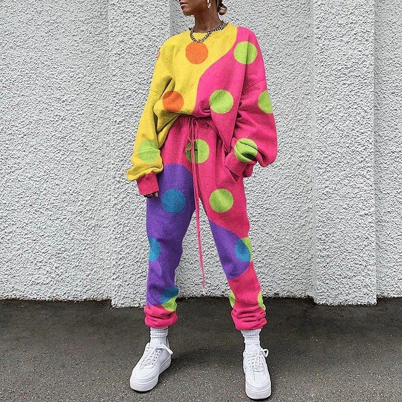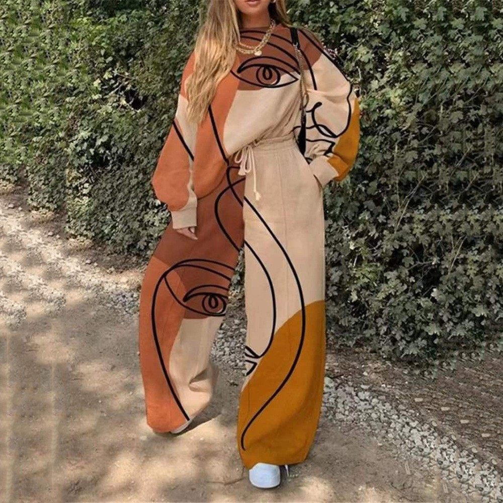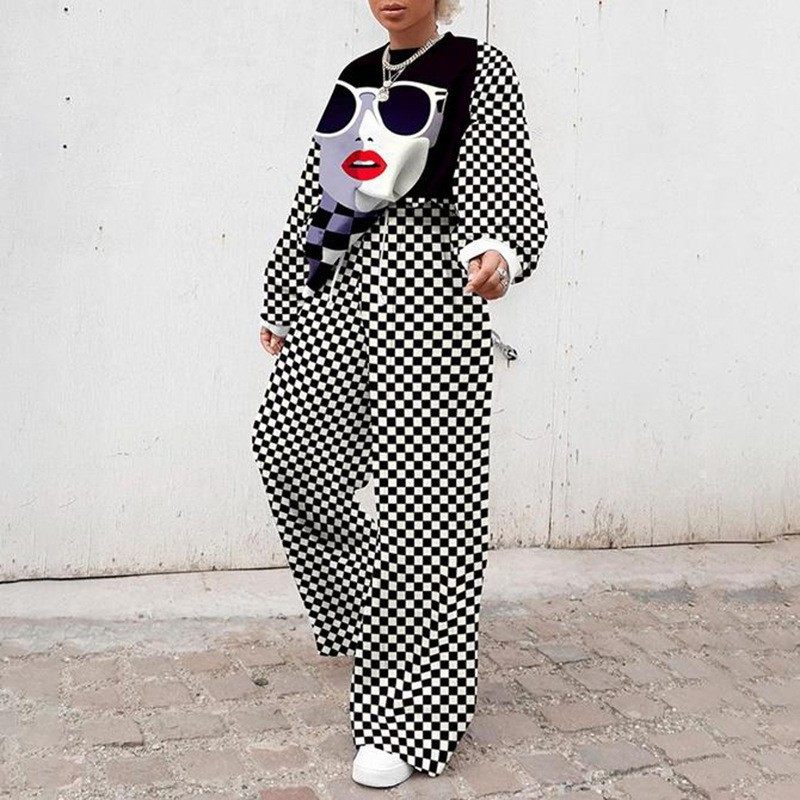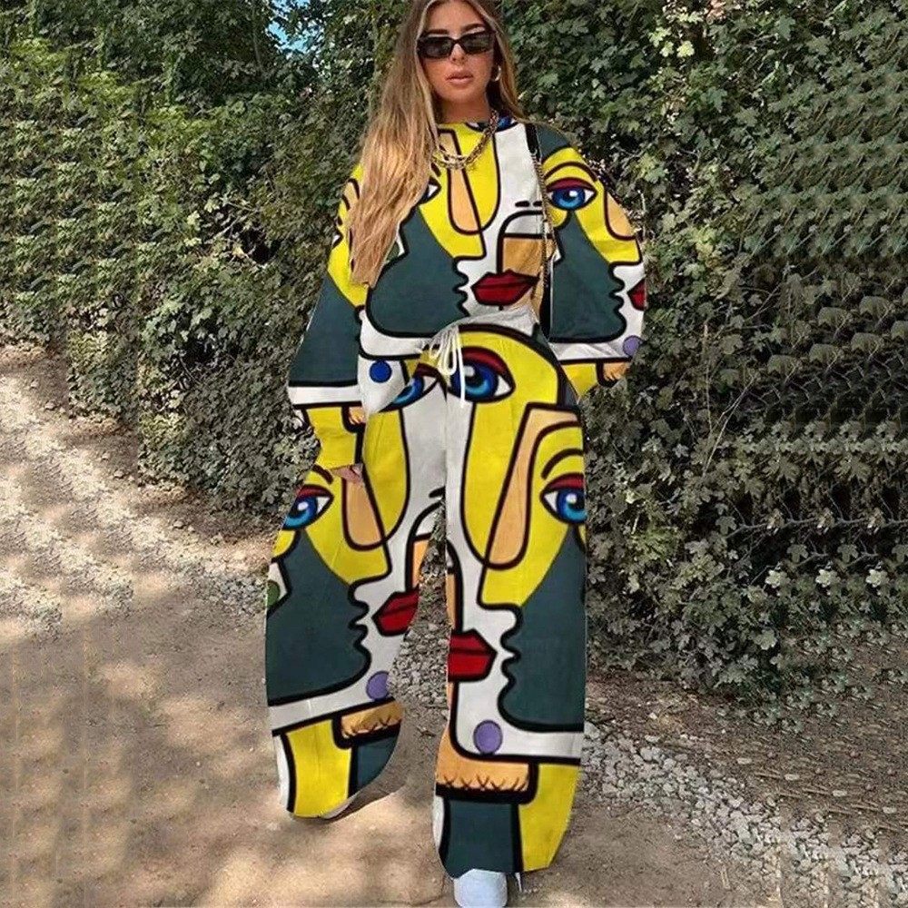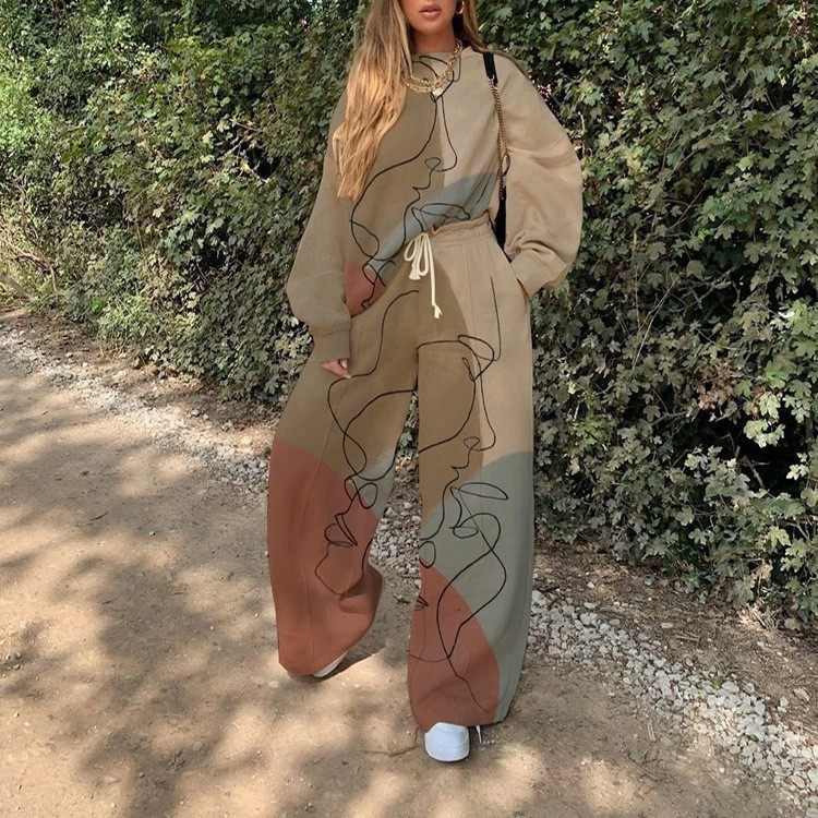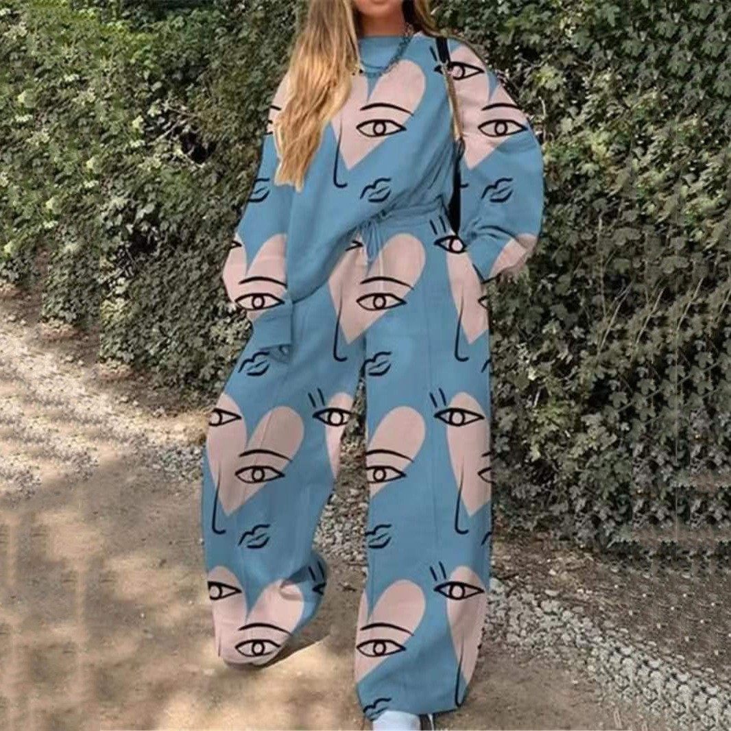 2025 European and American New Export Cross-Border Women's Casual Round Neck Loose Printed Basic Women's Sweatshirt Suit Autumn