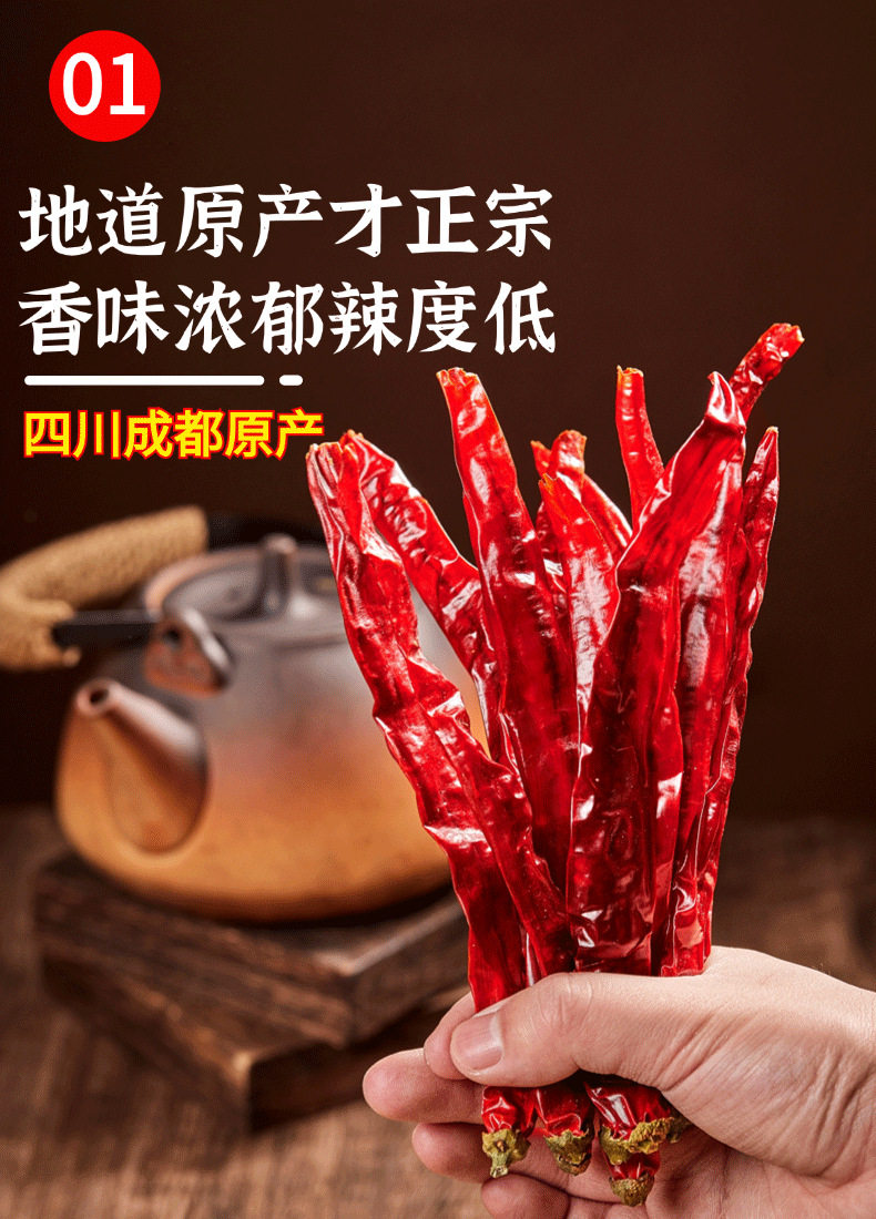 Authentic Sichuan Erjingtiao Dried Peppers, Fragrant but Not Spicy, Slightly Spicy and Fragrant Specialty, 1.0kg Pieces of Sea Peppers, Commercial Wholesale