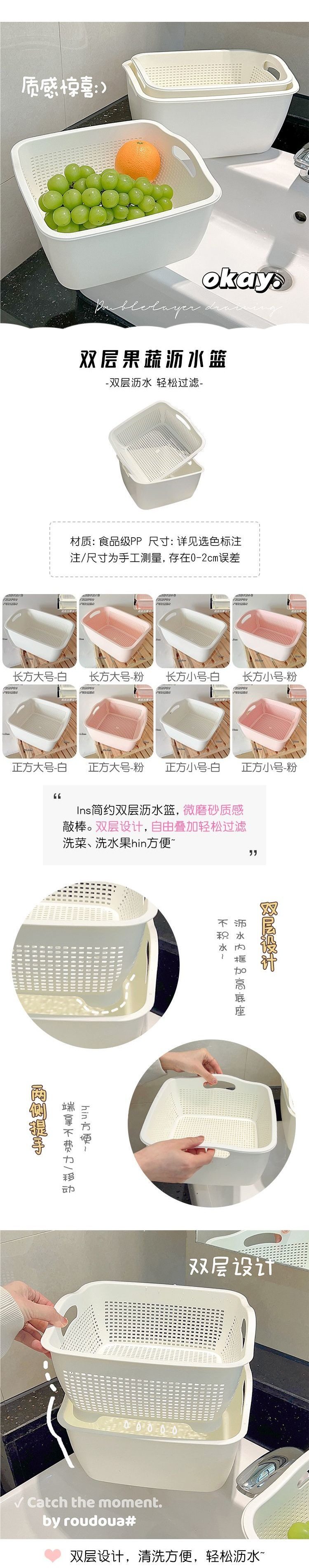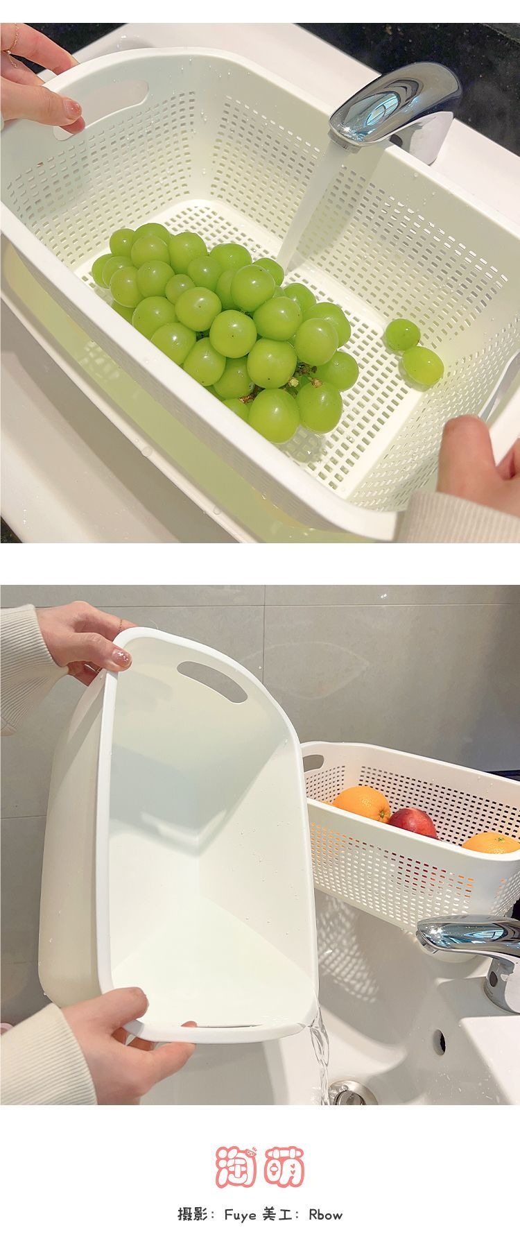Double-Layer Drain Basket Household Kitchen Sink Thickeneded Plastic Basket Fruit Storage Basket Drain Basket Fruit Plate