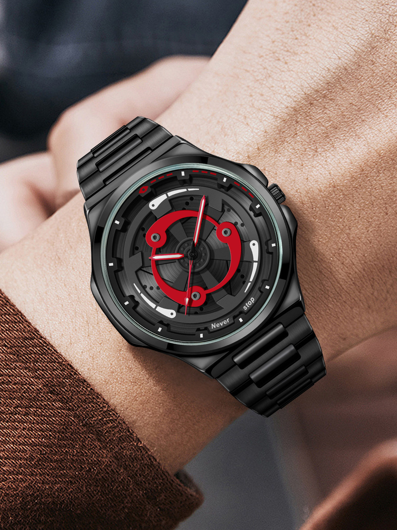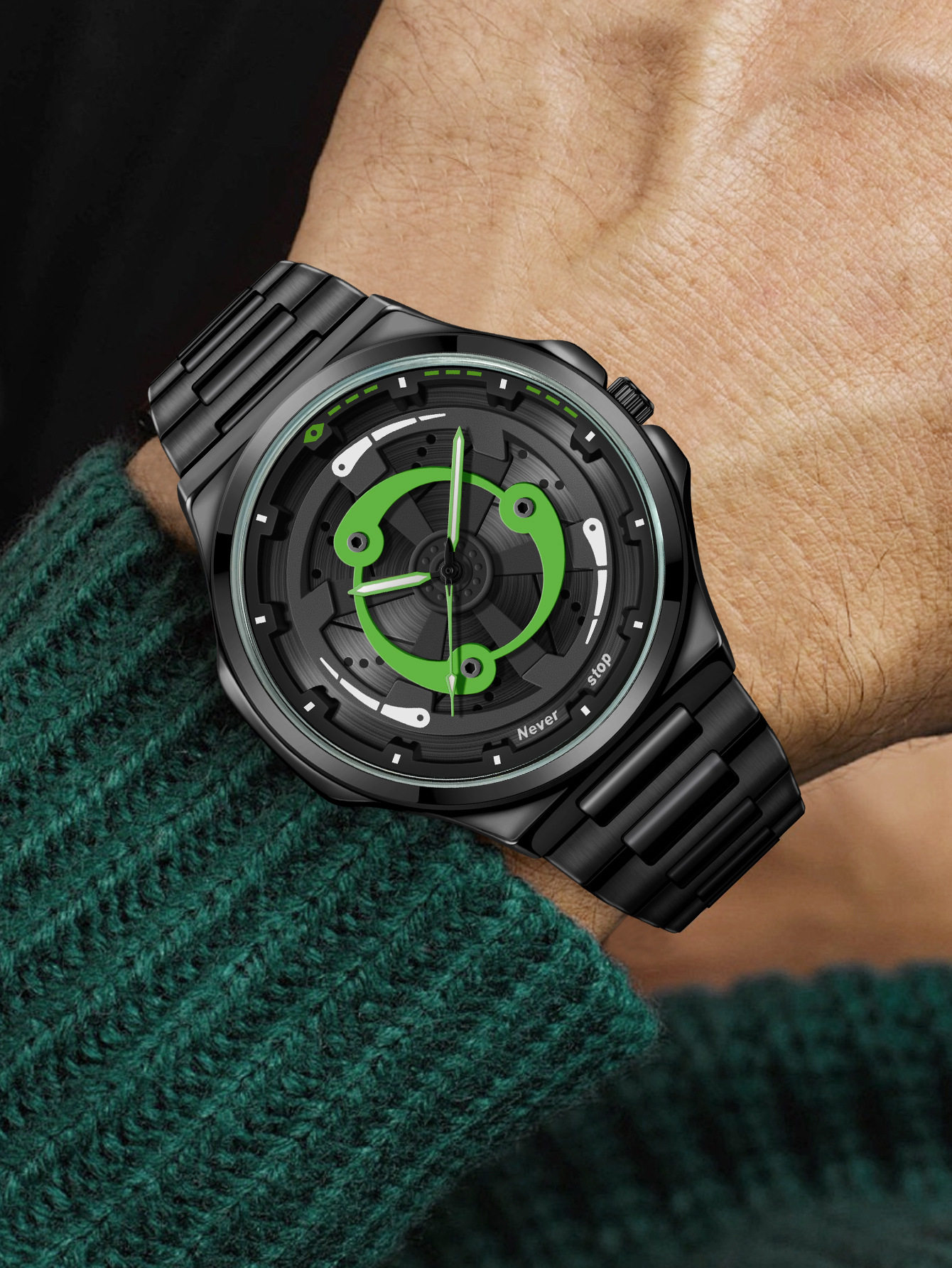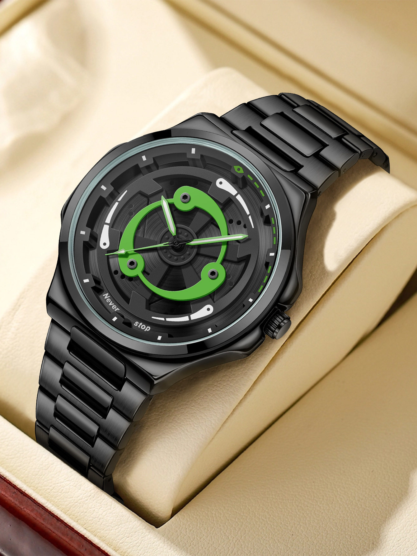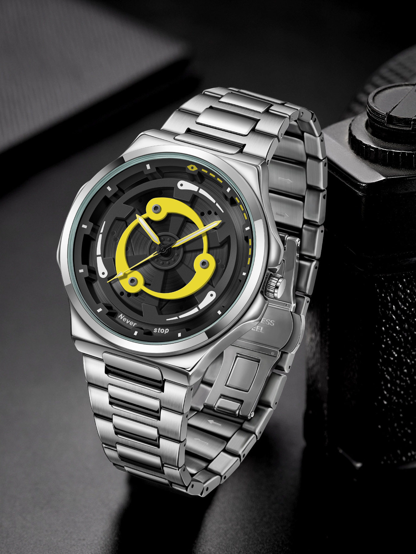Ns Brand Cross-Border Popular Men's Steel Band Watch, Sporty Style with Rotatable Dial, Trendy Quartz Watch, Factory Ready Stock