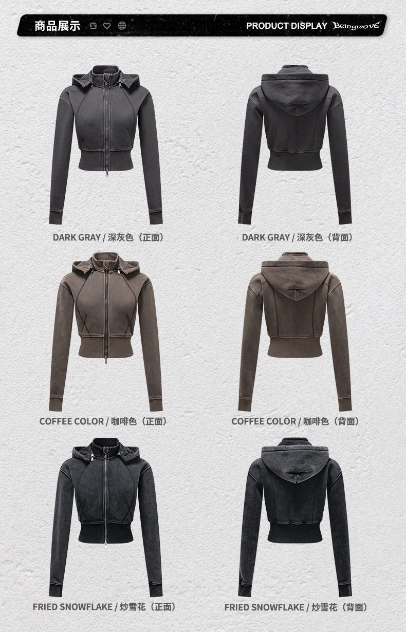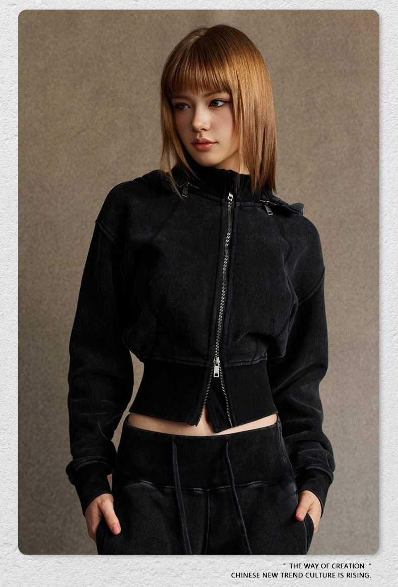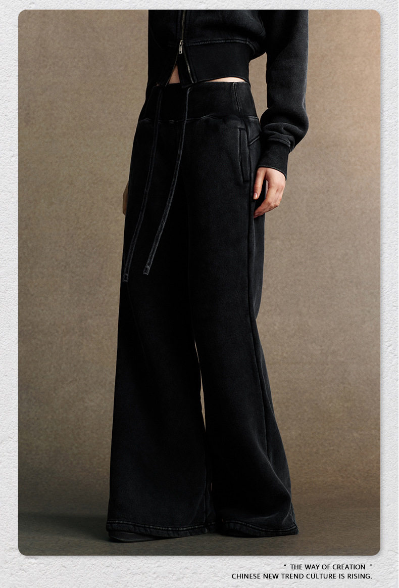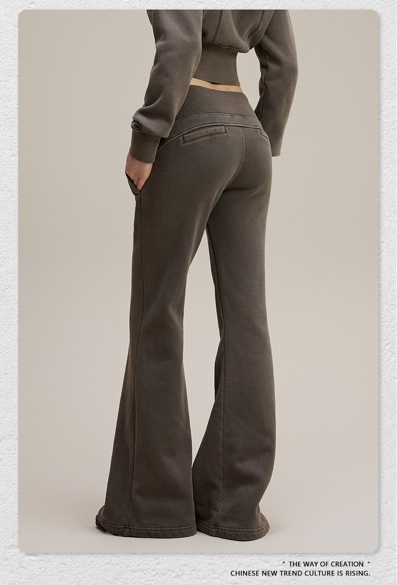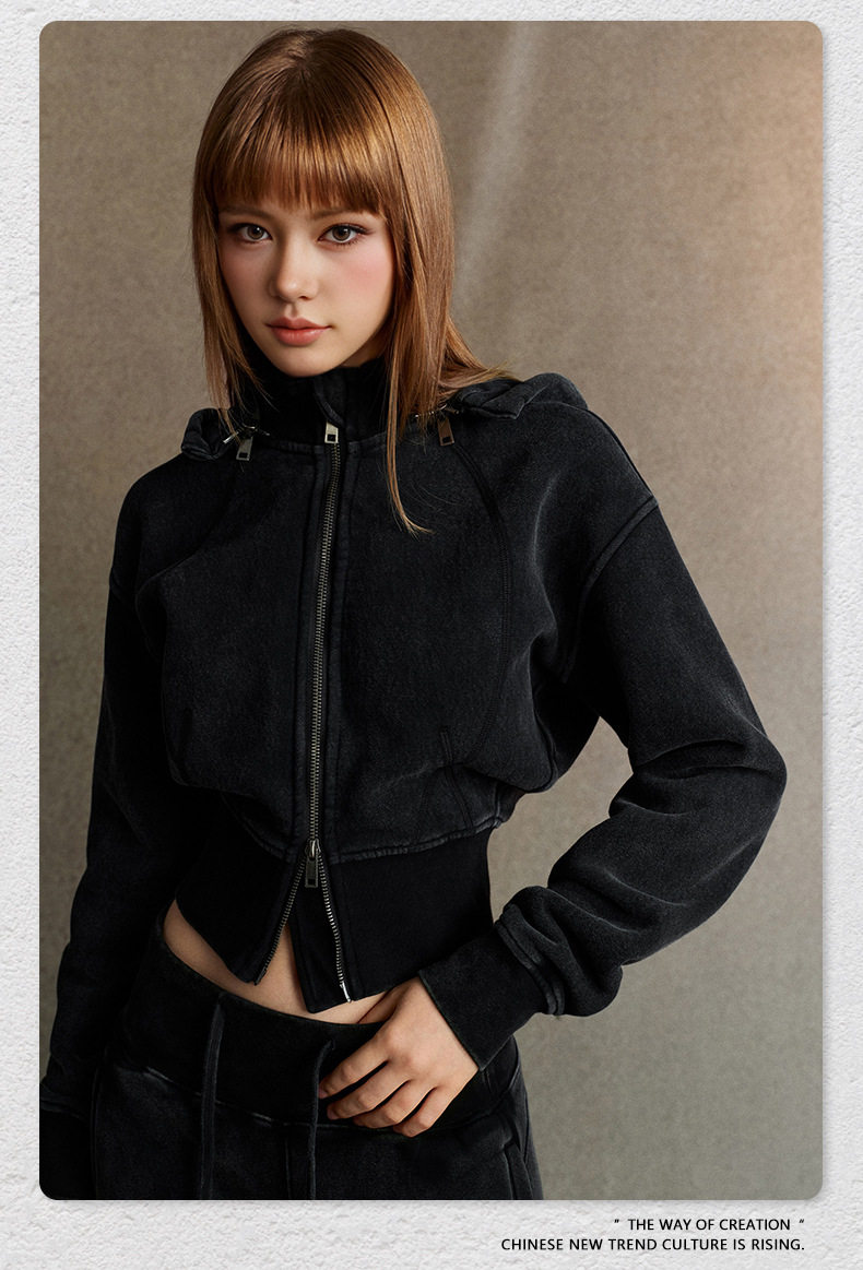 Street Style Retro Washed Sports Detachable Cardigan Hooded Sweatshirt Outdoor Micro-Flared Slim Trousers Suit for Women