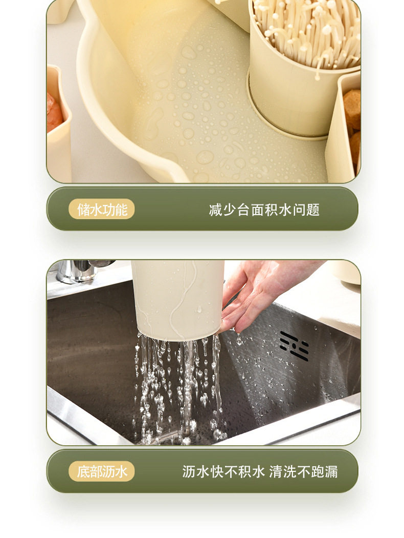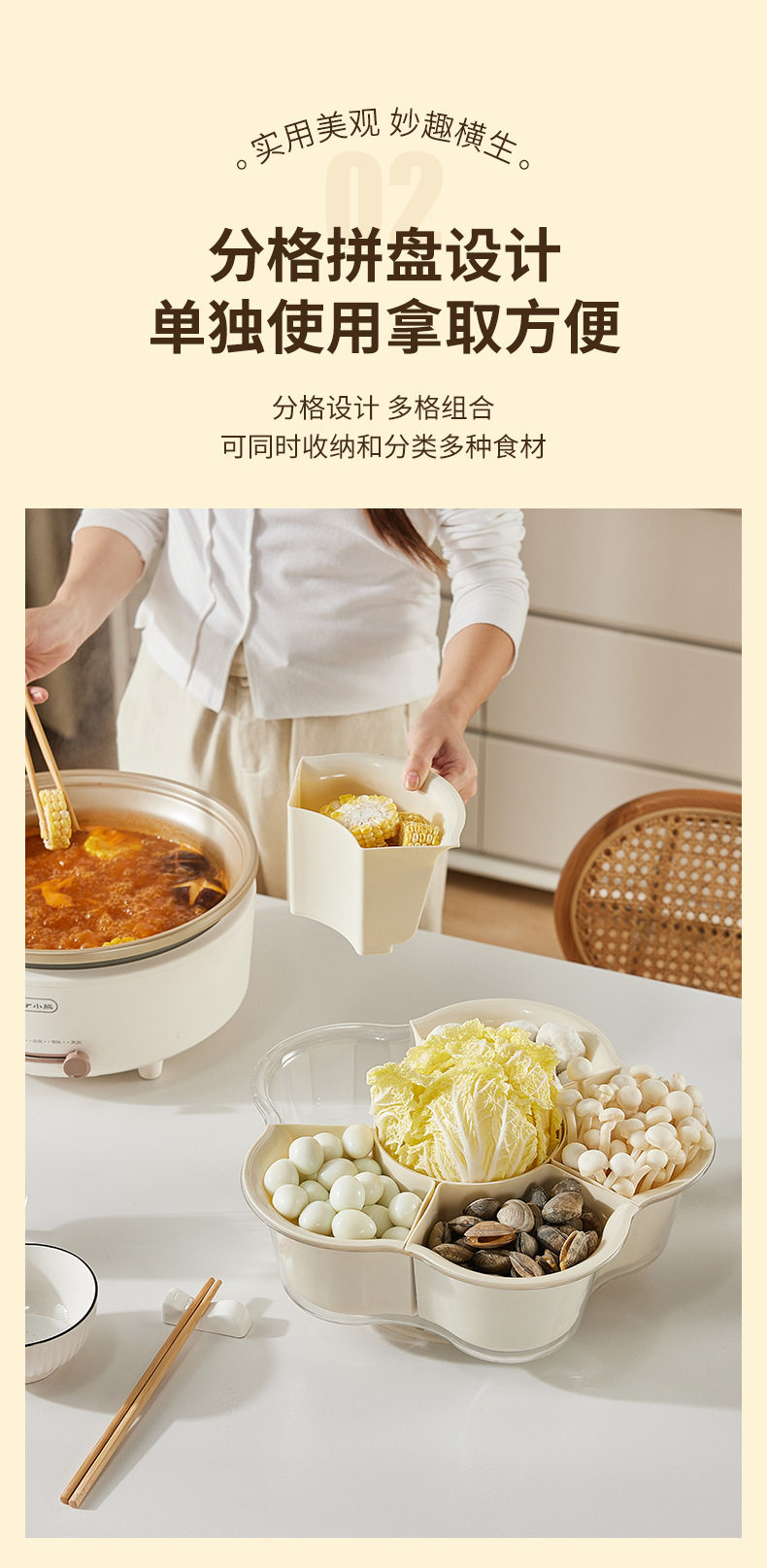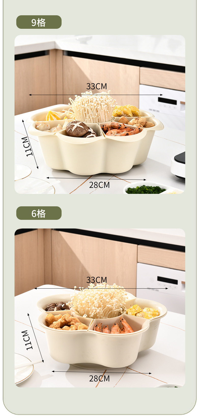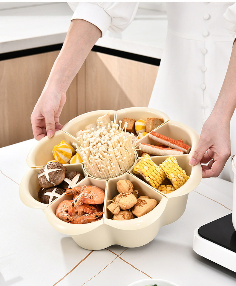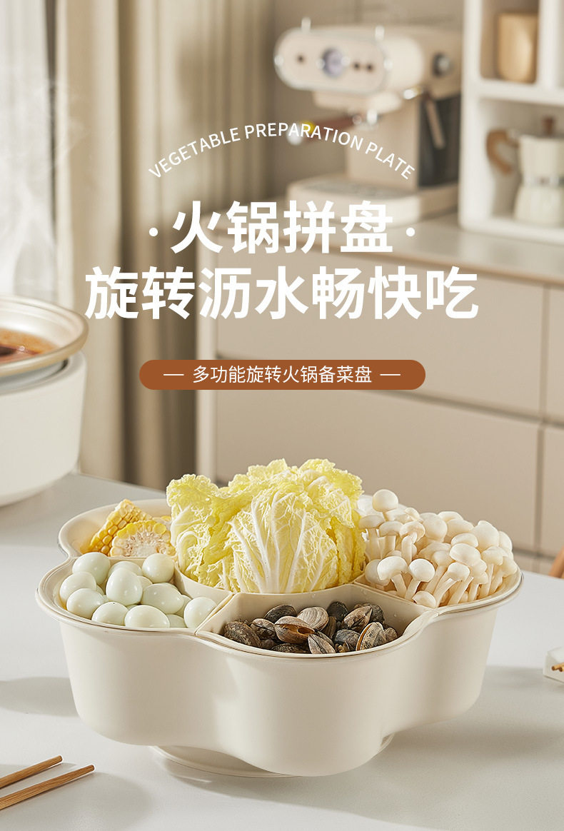 Rotating Hot Pot Vegetable Double-Layer Platter with Vegetable Washing Basin and Draining Basket, Creative Multifunctional Food Preparation and Side Dish Tray for Home Use