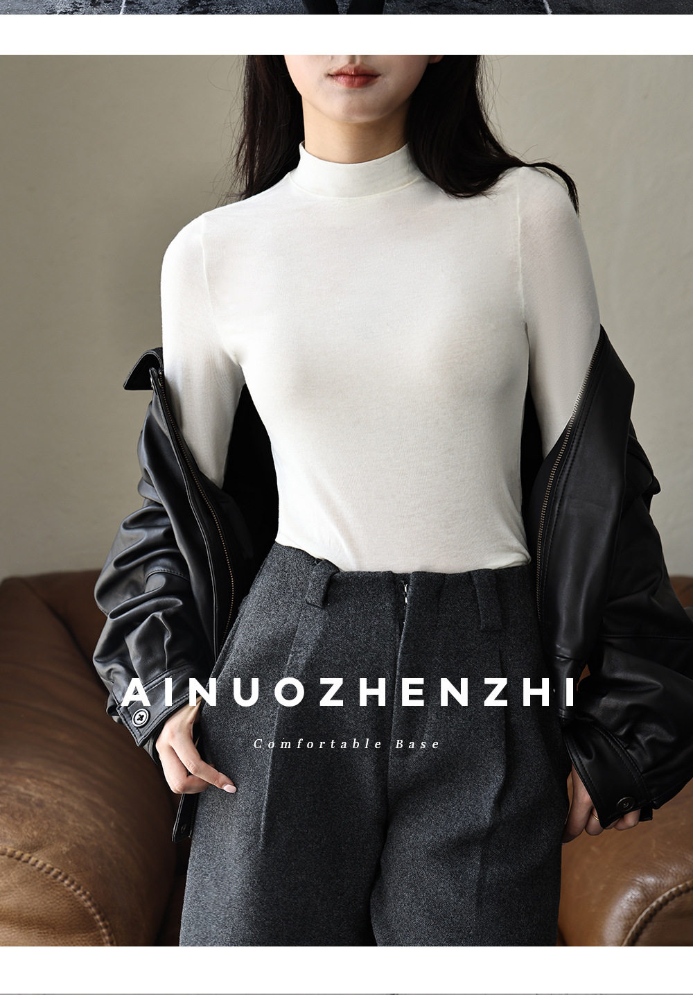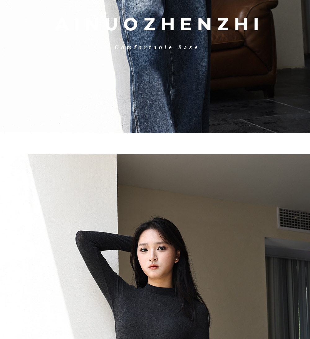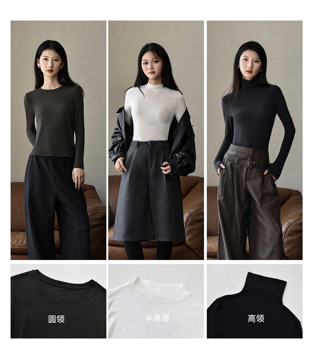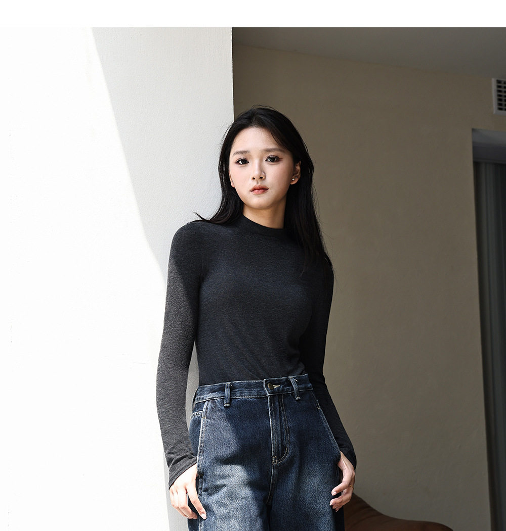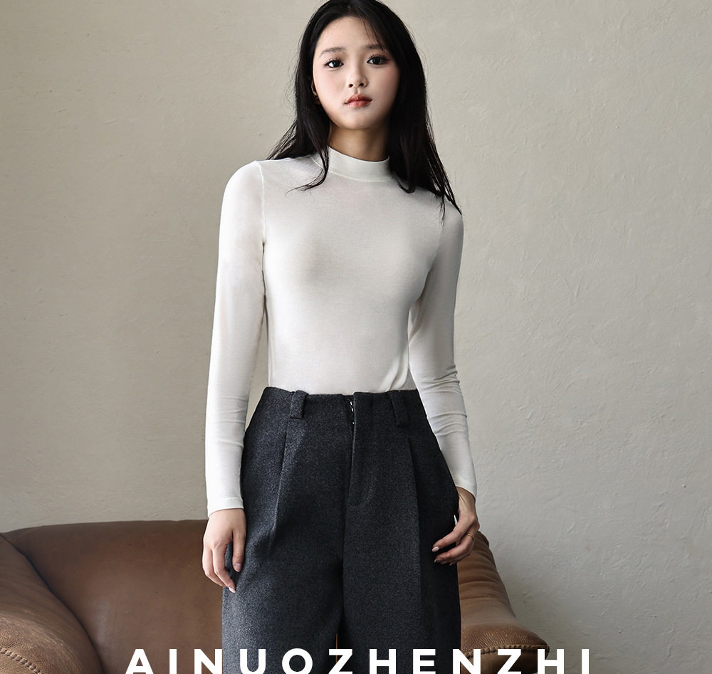 Half Turtleneck Wool Bottoming Shirt for Women in Autumn and Winter Long-Sleeved Inner Wear Slimming Look Modal Cotton Lightweight Outer Top