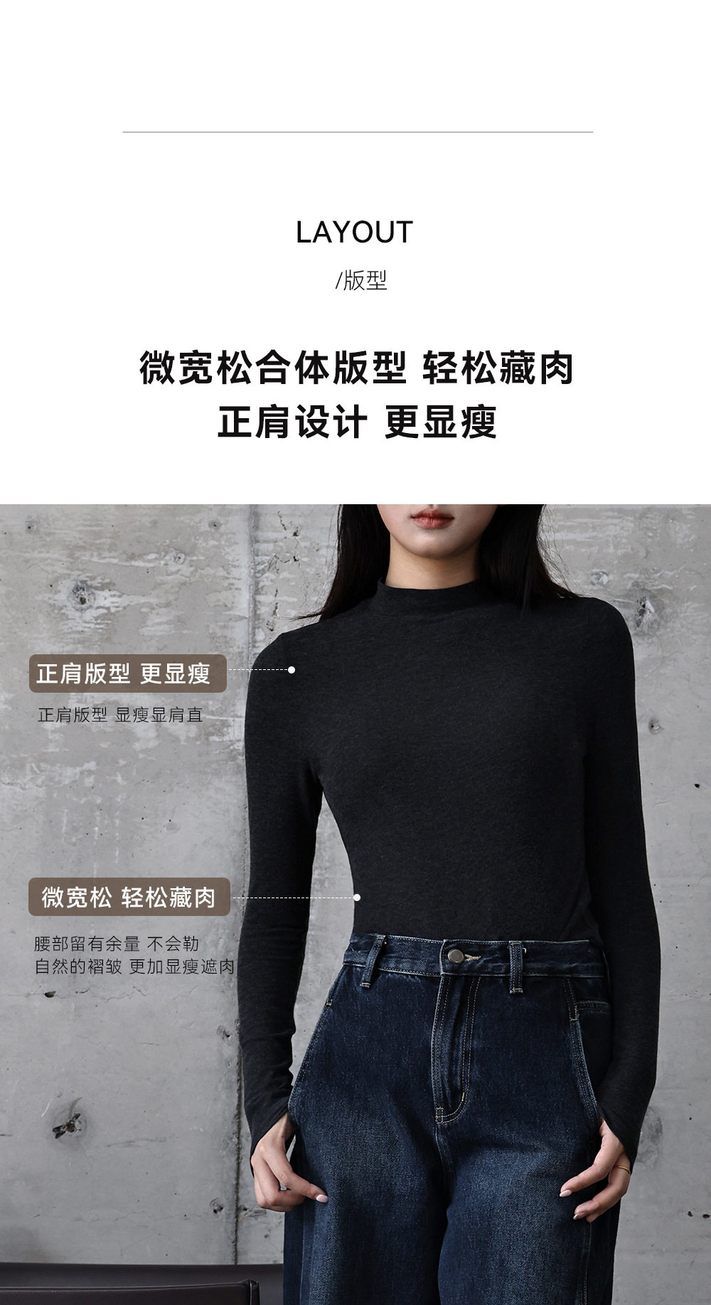 | Collar type | Half turtleneck |