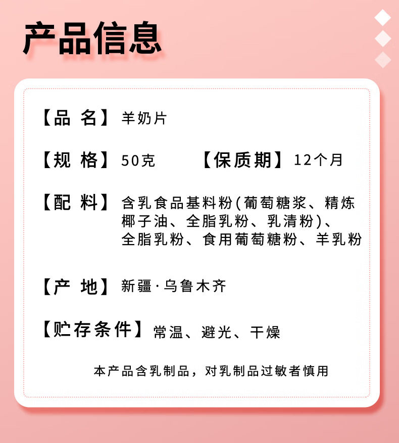 | Packaging specifications | 50g goat milk clams*8 bags |