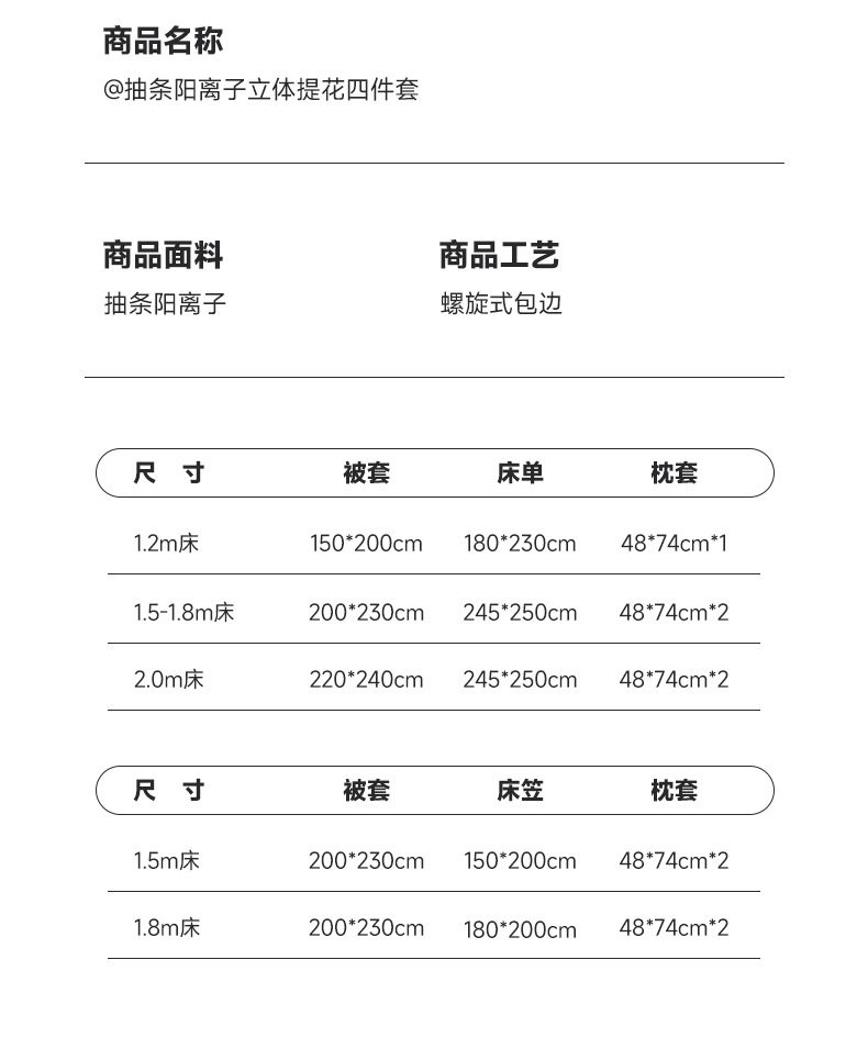| Dimensions | 0.9-1.2m bed sheet three-piece set [quilt cover 1.5*2.0],1.5m bed sheet four-piece set [quilt cover 2.0*2.3],1.8m bed sheet four-piece set [quilt cover 2.0*2.3],2.0m bed sheet four-piece set [quilt cover 2.2*2.4],1.5m fitted sheet set of four [quilt cover 2.0*2.3],1.8m fitted sheet set of four [quilt cover 2.0*2.3],150*200cm single quilt cover,180*220cm single quilt cover,200*230cm single quilt cover,220*240cm single quilt cover |