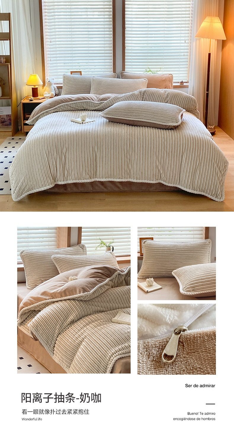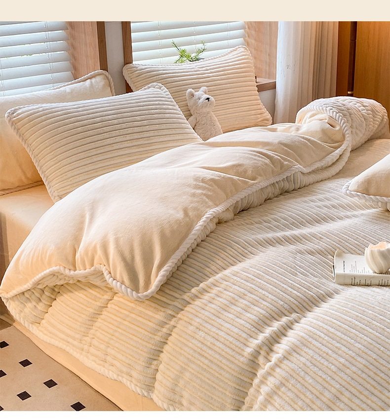 Autumn and Winter Thickeneded Velvet Four-Piece Set Coral Velvet Jacquard Milk Velvet Four-Piece Bedding Set Three-Piece Fitted Sheet Quilt Cover