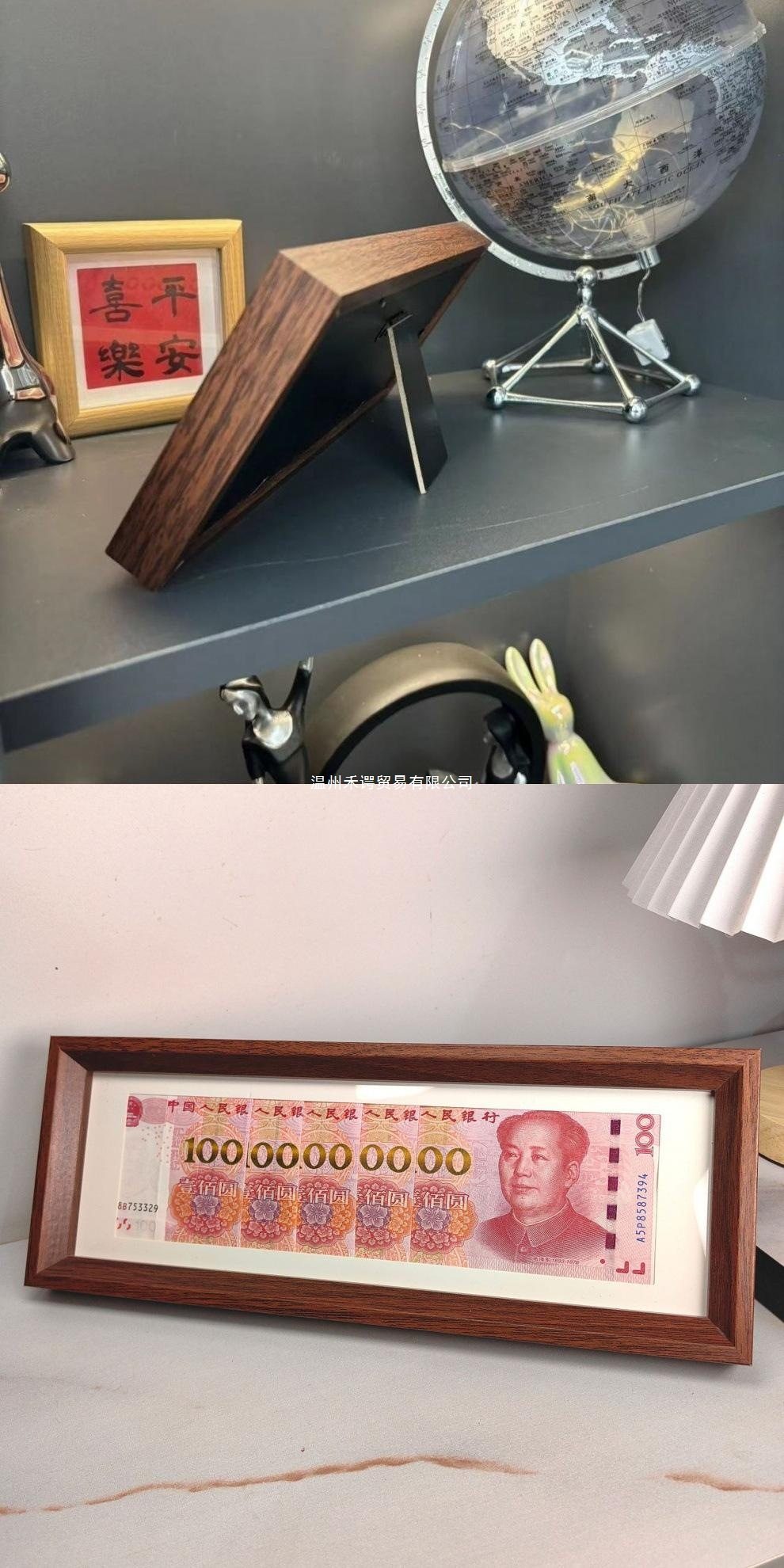 Fashionable Black Walnut Photo Frame Multi-Gold Display Stand for Enhancing Luck, Vertical Simple Light Luxury Chinese-Style Home Decoration Wood