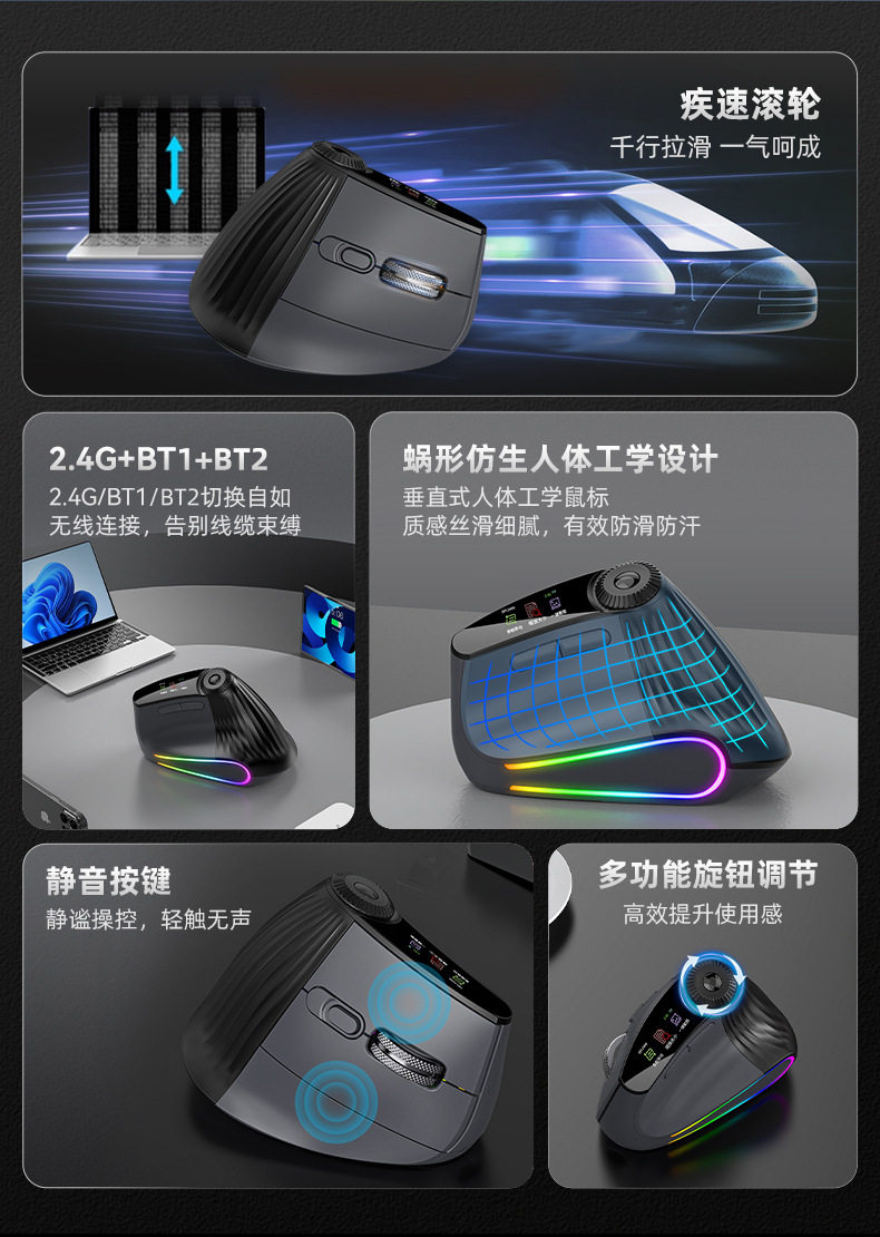 Pyp Wireless Mouse Bluetooth Silent Sound Charging Vertical Computer Laptop Office Fast Scroll Wheel Ergonomic