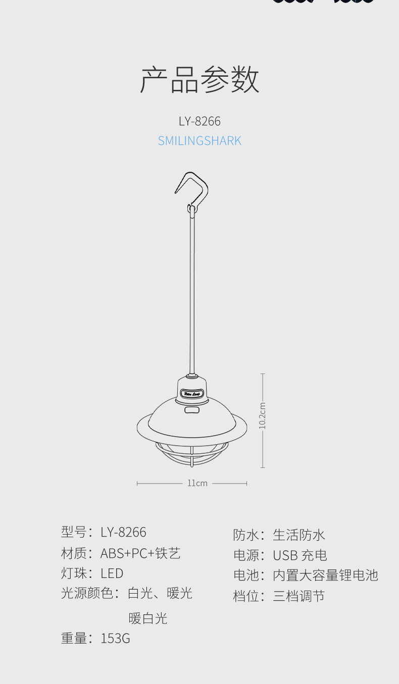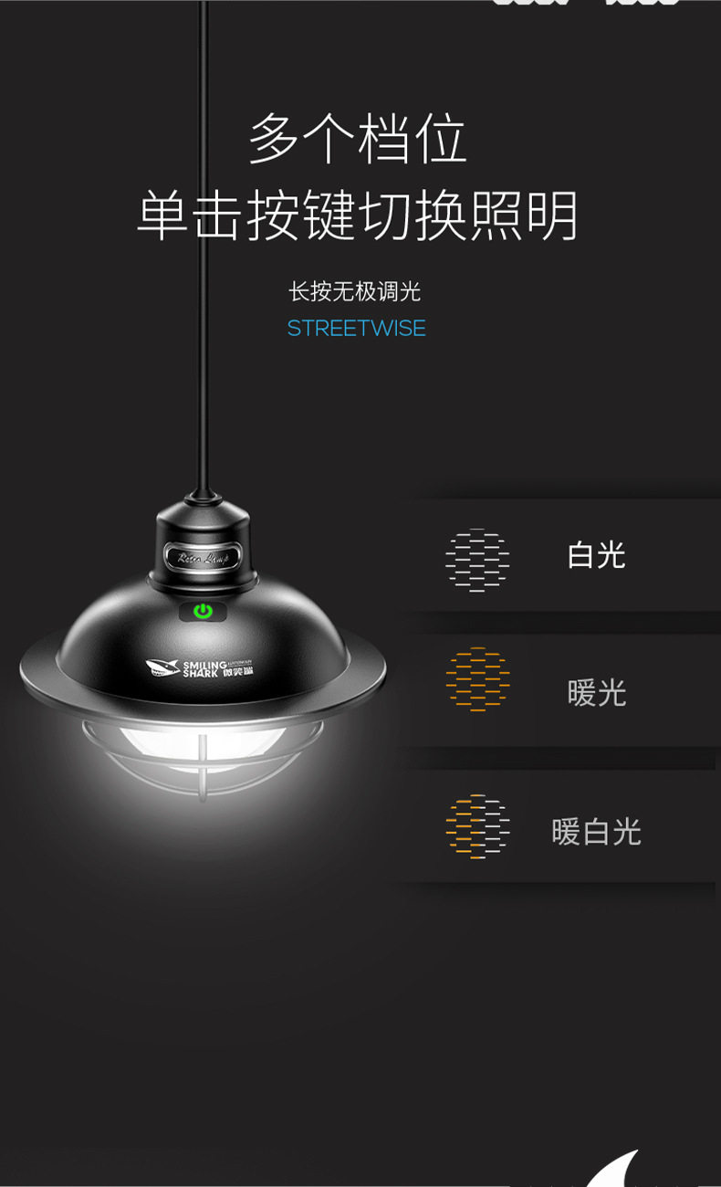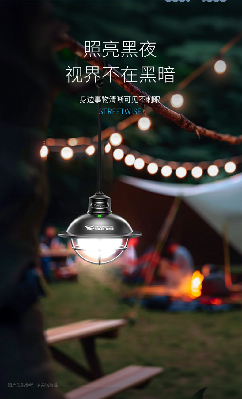 Smiling Shark New Retro Camping Light Tent Light Multifunctional Outdoor Lighting Portable Lantern Hanging Light Rechargeable