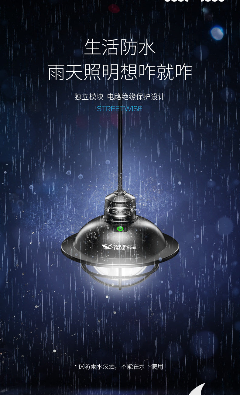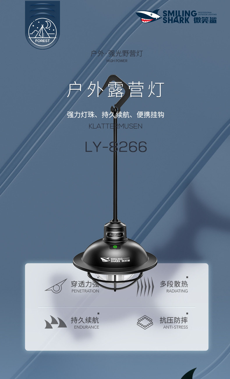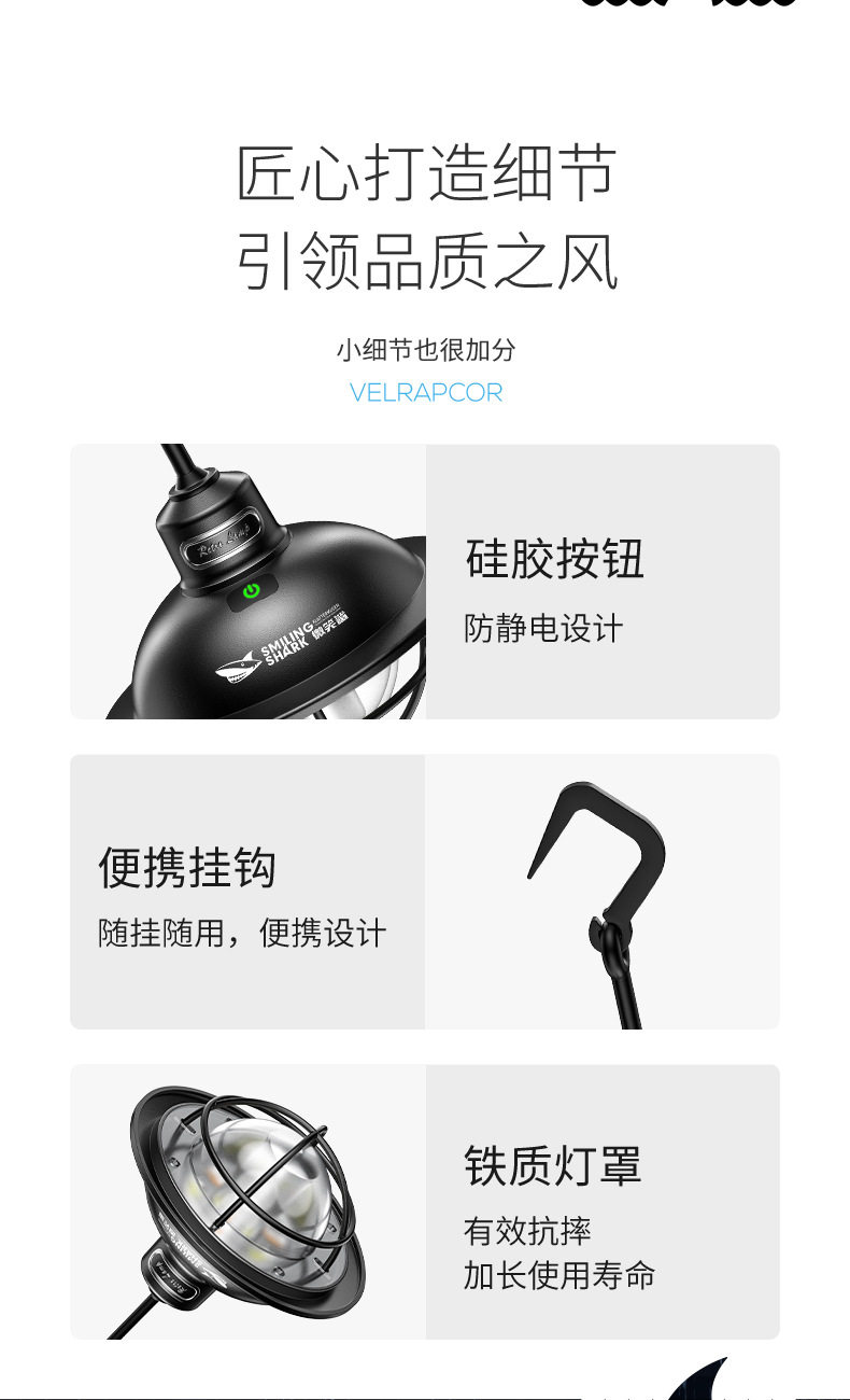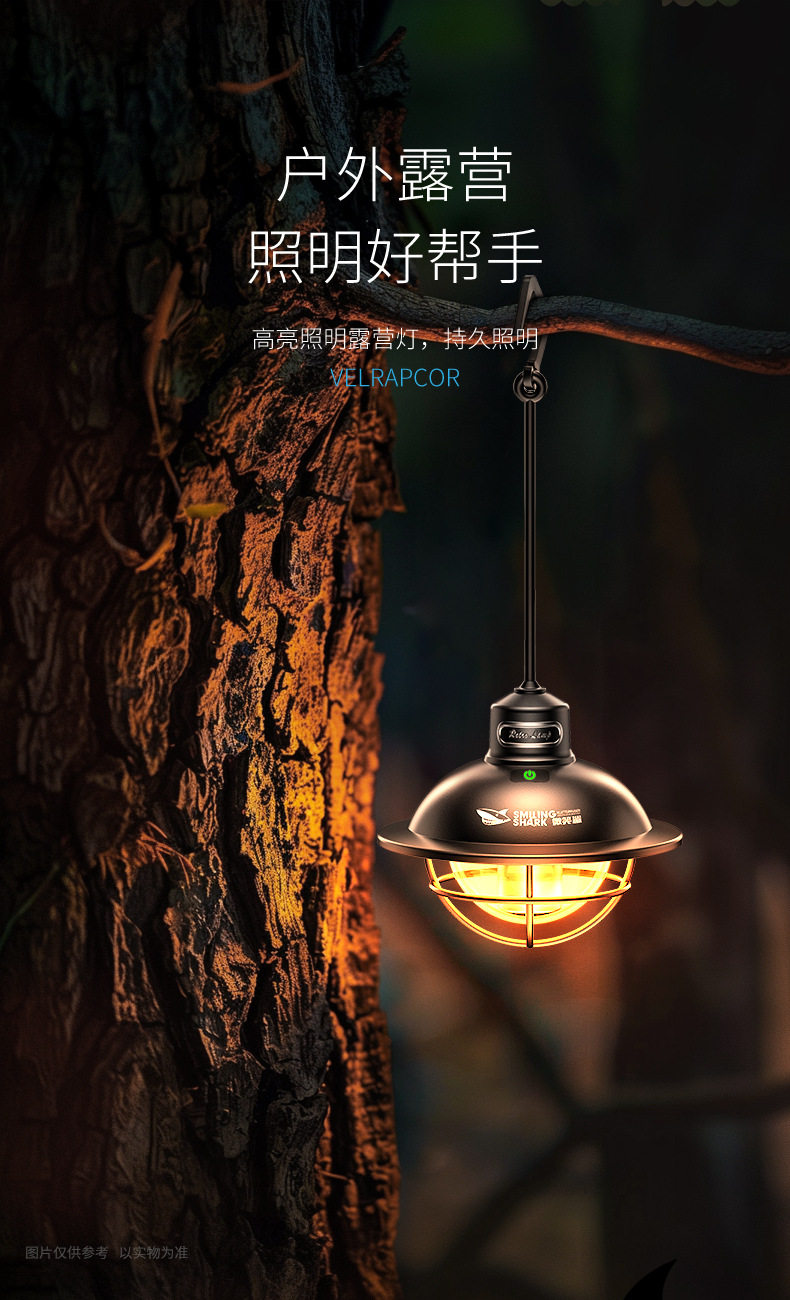 Smiling Shark New Retro Camping Light Tent Light Multifunctional Outdoor Lighting Portable Lantern Hanging Light Rechargeable