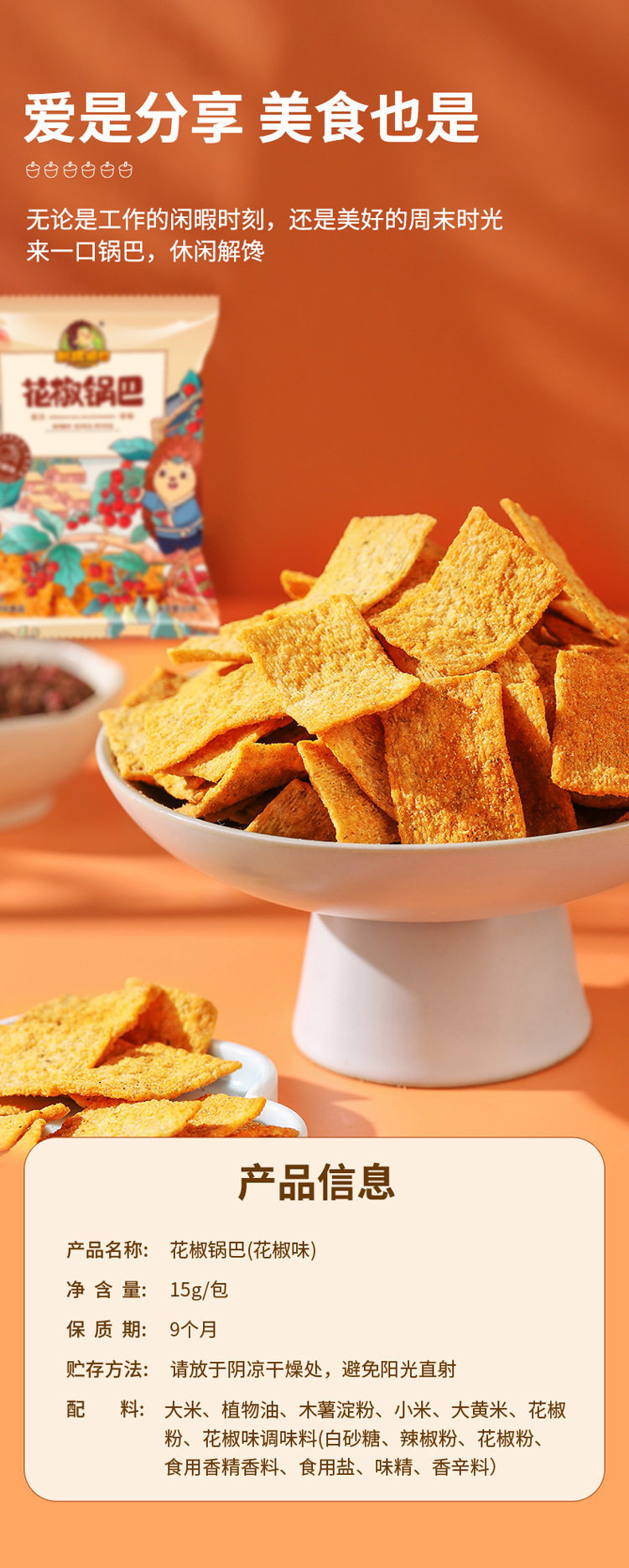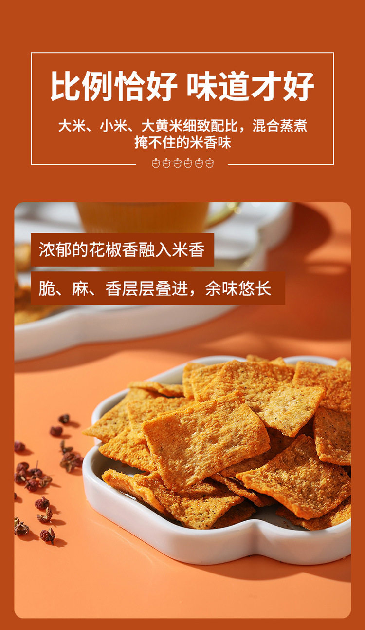 | Packaging specifications | Sichuan pepper flavor 15g*15 packs,Chili flavor 15g*15 packs,Sichuan pepper flavor 15g*30 packs,Pepper flavor 15g*30 packs,Sichuan peppercorn rice crispy rice 15g*30 packs (sichuan peppercorn*15+pepper flavor*15),Sichuan pepper flavor 15g*50 packs,Pepper flavor 15g*50 packs,Sichuan peppercorn rice crispy rice 15g*50 packs (sichuan peppercorn*25+pepper flavor*25) |