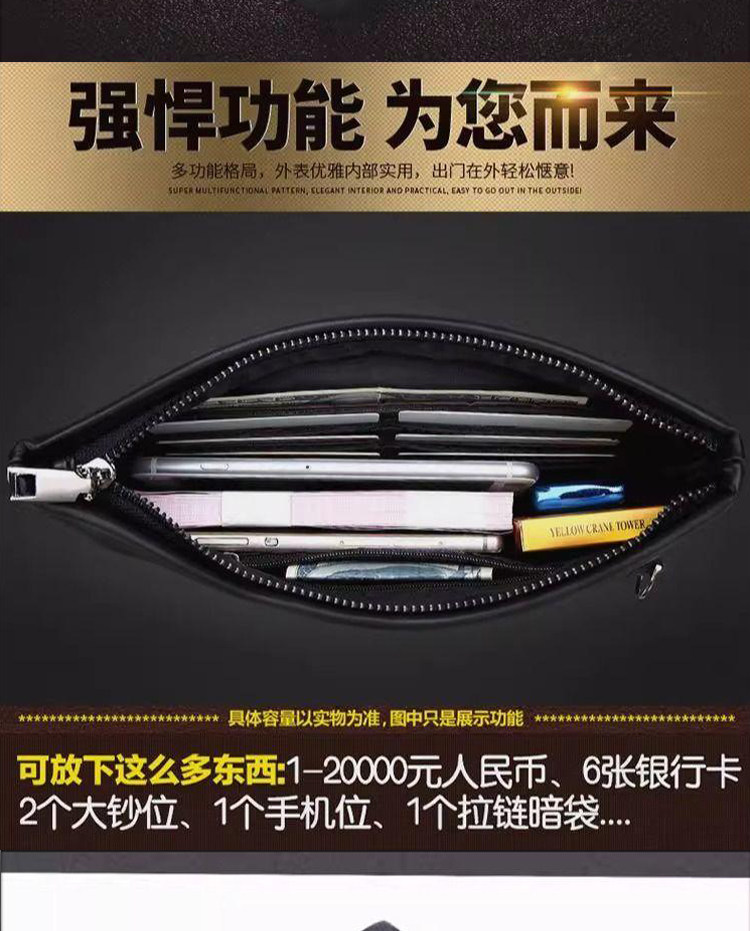 Men's Handbag Large Capacity Soft Leather Clutch Bag Casual Clutch Bag Envelope Clip Bag Men's Wallet Coin Bag