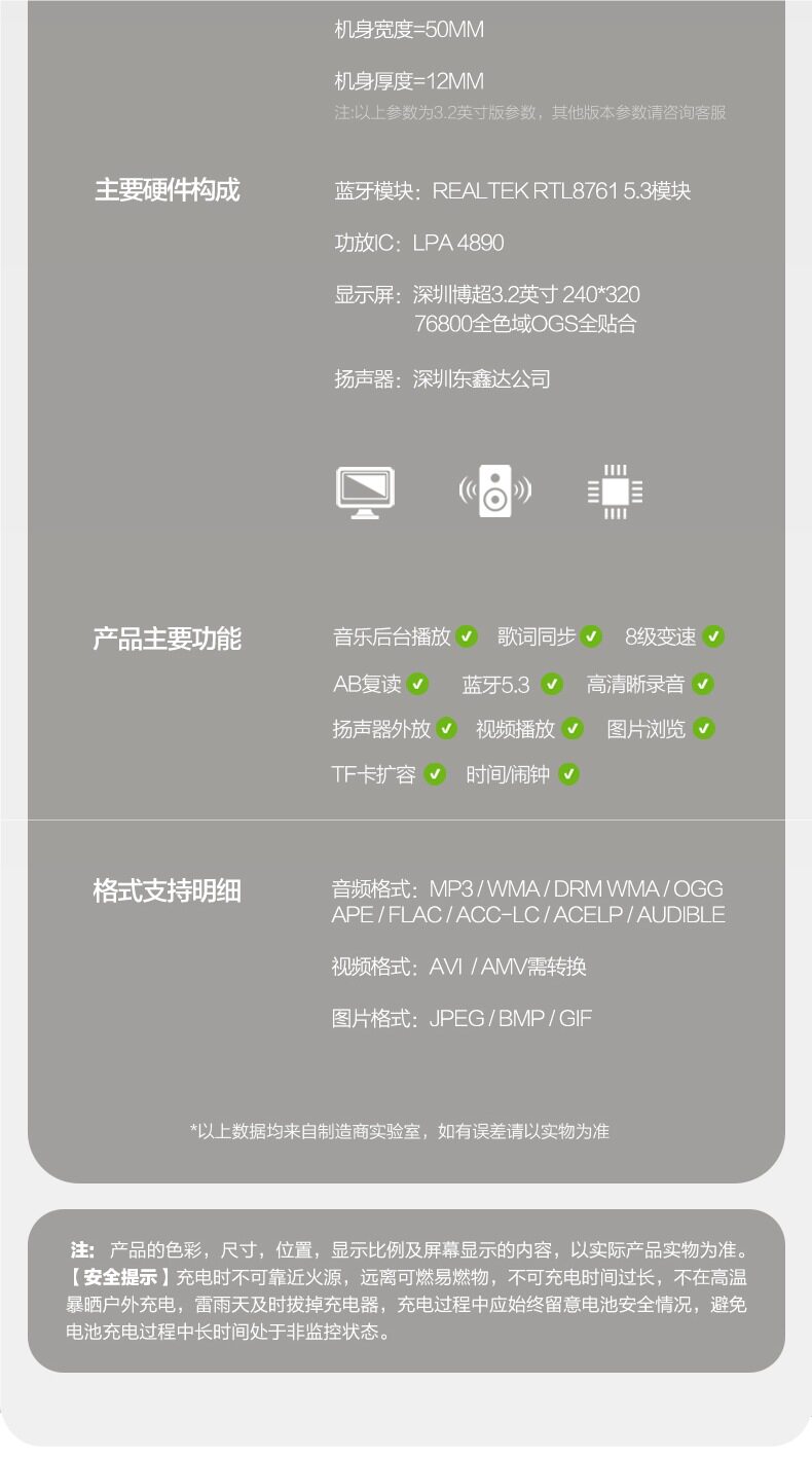 | Additional features | External function bluetooth connection recording function supports photo playback and picture browsing mp3 |