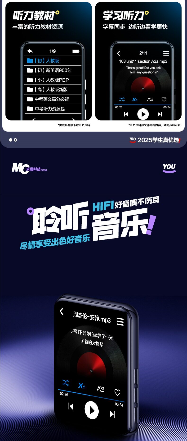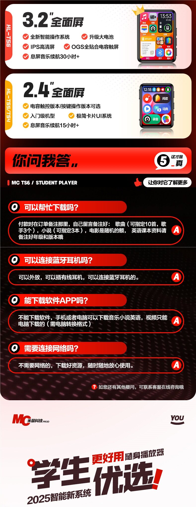| Body color | Pure music screenless version [bare metal/no gift package/no screen/can only listen to music],Pure music screenless version [gift package/no screen/can only listen to music],2.4-button full screen/bluetooth 6.0 [no gift package/upgrade e-book chapter selection/watch videos/listen to songs/voice dictionary.],2.4-button full-screen long battery life/bluetooth 6.0 [free gift package/e-book chapter selection/watch videos/listen to songs/sound dictionary/large battery.],2.4 touch full screen/bluetooth 6.0 [no gift package/upgrade e-book chapter selection/watch videos/listen to songs/speech dictionary],2.4 touch full screen, long battery life/bluetooth 6.0 [gift package/e-book chapter selection/watch videos/listen to songs/speech dictionary/large battery],3.2 touch full screen/bluetooth 6.0 [no gift package/upgrade e-book chapter selection/watch videos/listen to songs/voice dictionary],3.2 touch full screen, long battery life/bluetooth 6.0 [gift package/e-book chapter selection/watch videos/listen to songs/speech dictionary/large battery],2.4-button full screen/bluetooth 6.0 [no gift package/upgraded e-book chapter selection/watch videos/listen to songs/speech dictionary],2.4-button full screen, long battery life/bluetooth 6.0 [gift package/e-book chapter selection/watching videos/listening to songs/speech dictionary/large battery] |