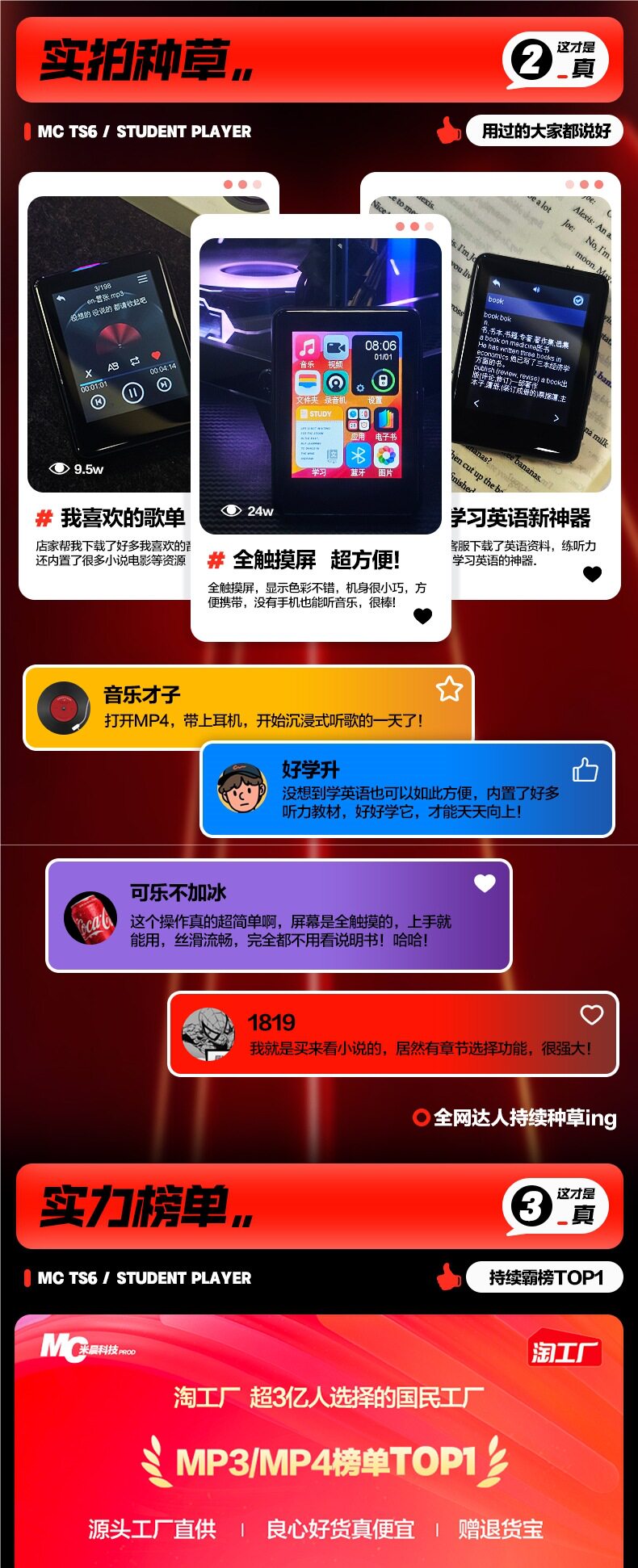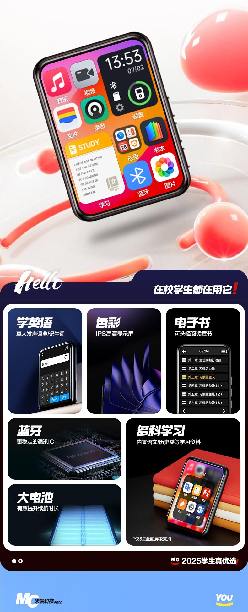 Full Screen Mp3Mp4 Walkman Student Version Bluetooth High School Student Special Touch Screen P3 Player Novel Artifact