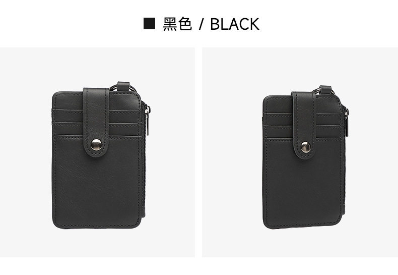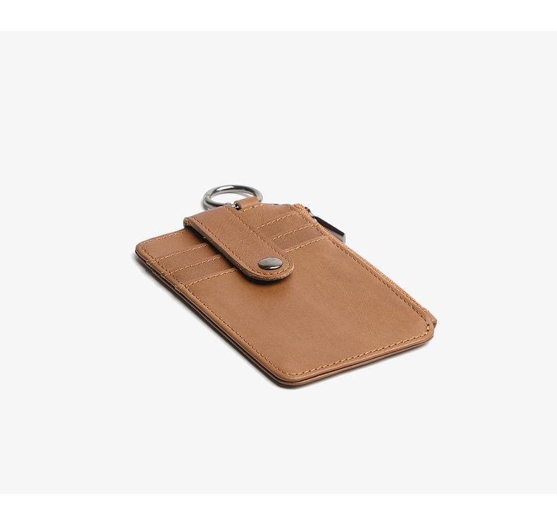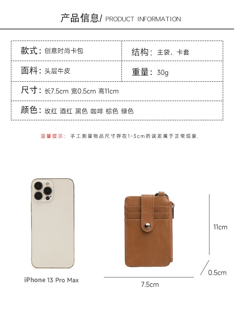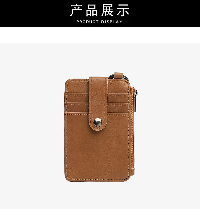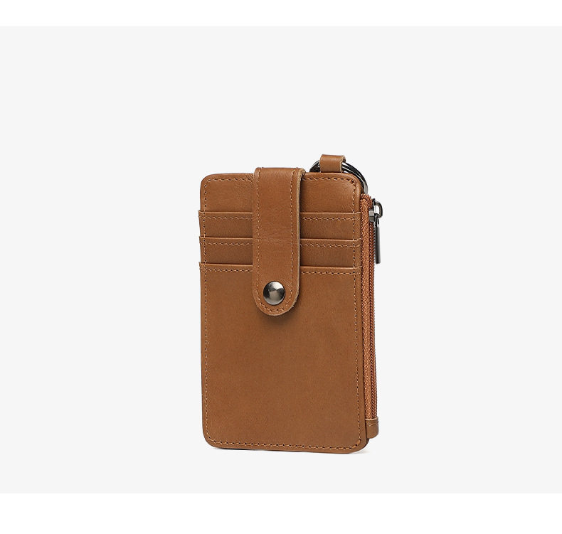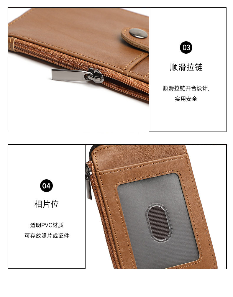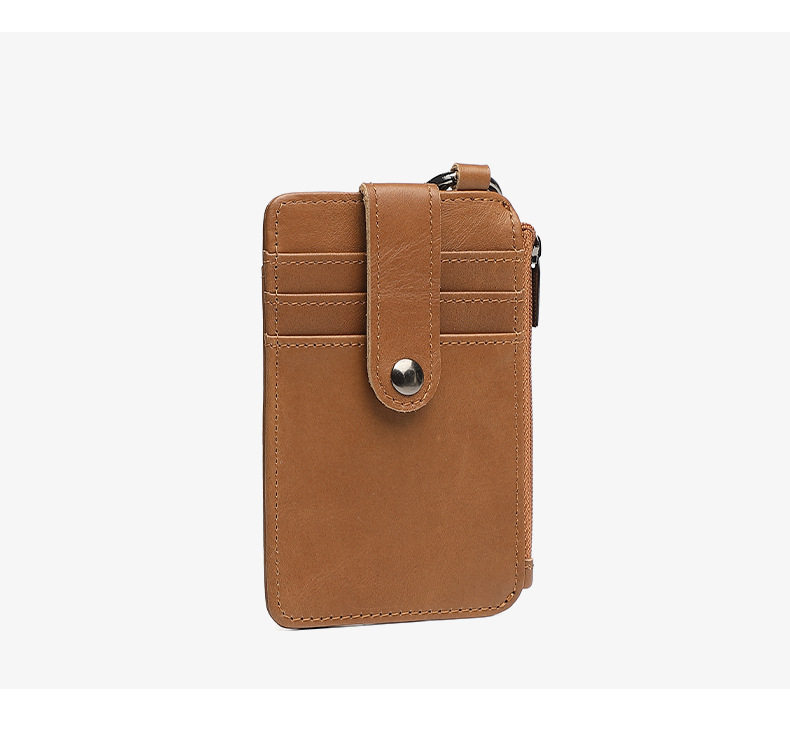 Cross-Border Popular First-Layer Cowhide Work Id Card Holder with Double Pockets and Snap Button Design, New Badge Card Holder from the Source Manufacturer