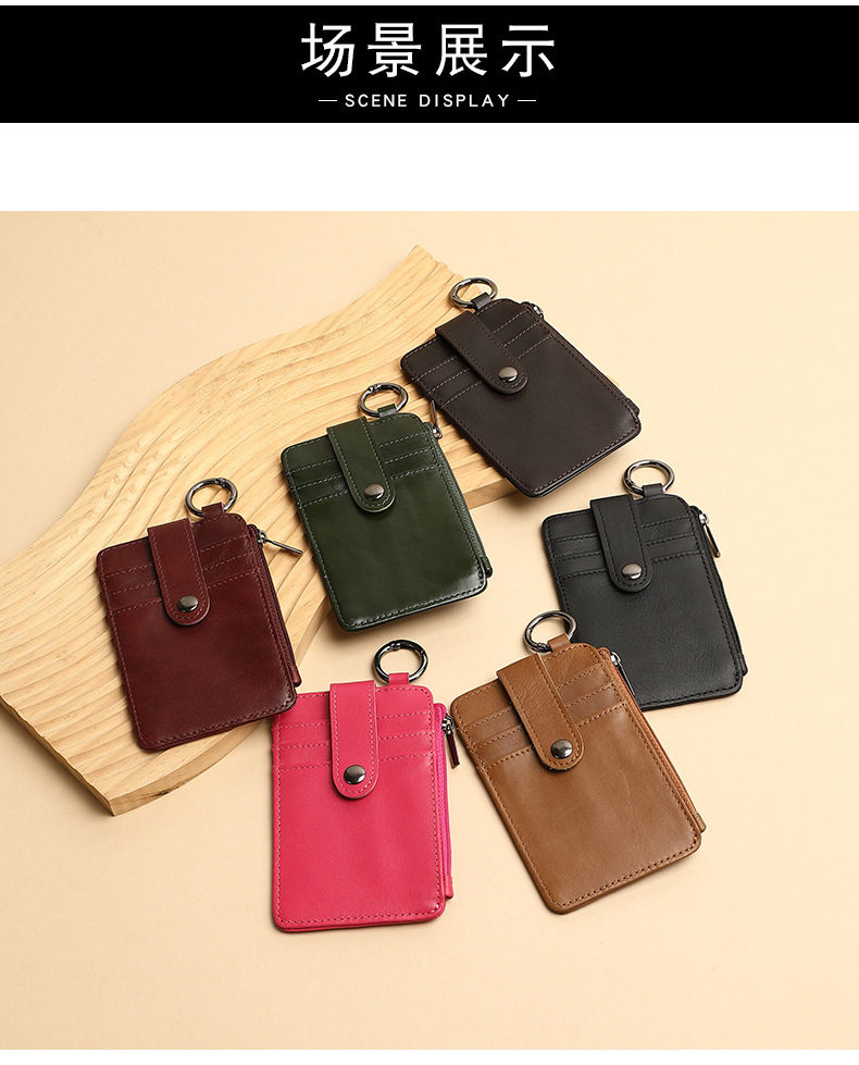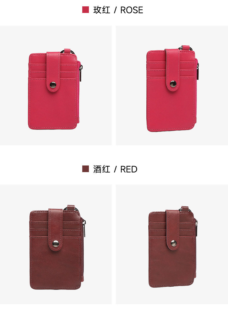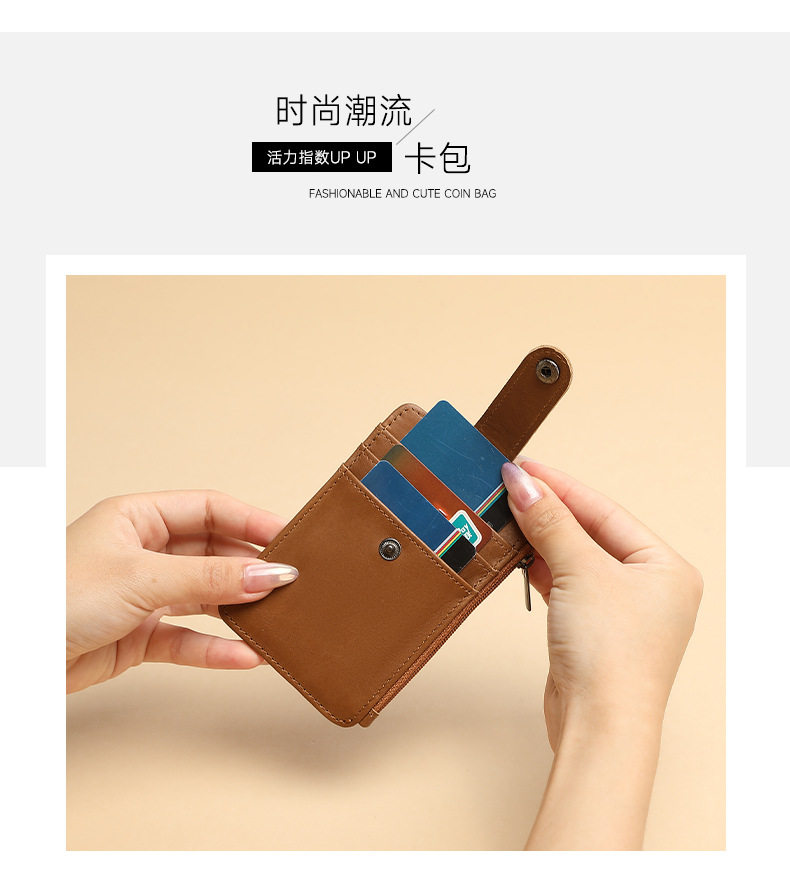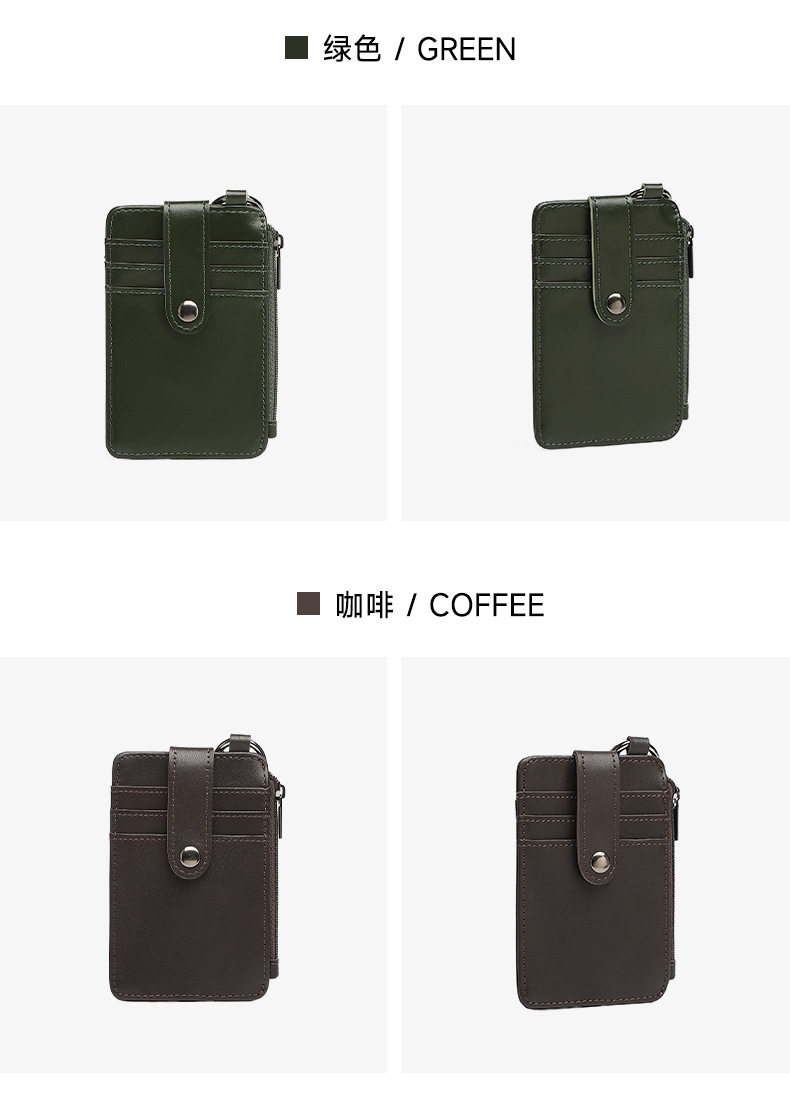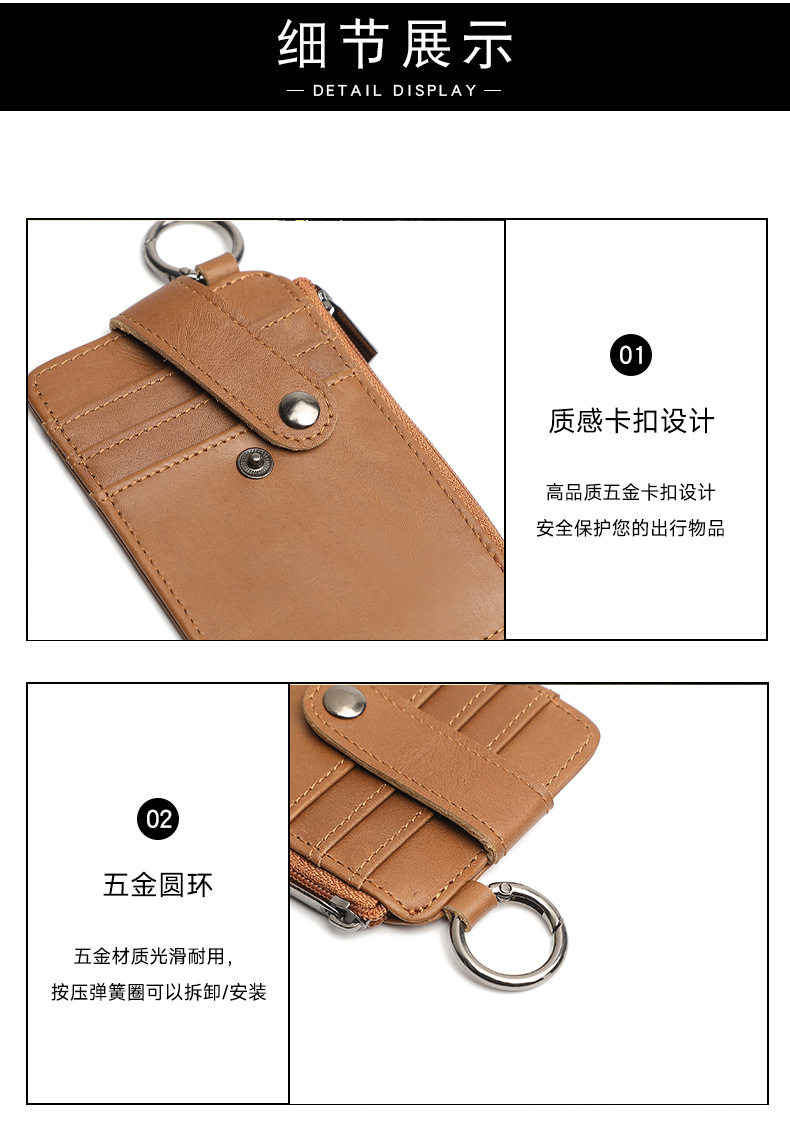 Cross-Border Popular First-Layer Cowhide Work Id Card Holder with Double Pockets and Snap Button Design, New Badge Card Holder from the Source Manufacturer