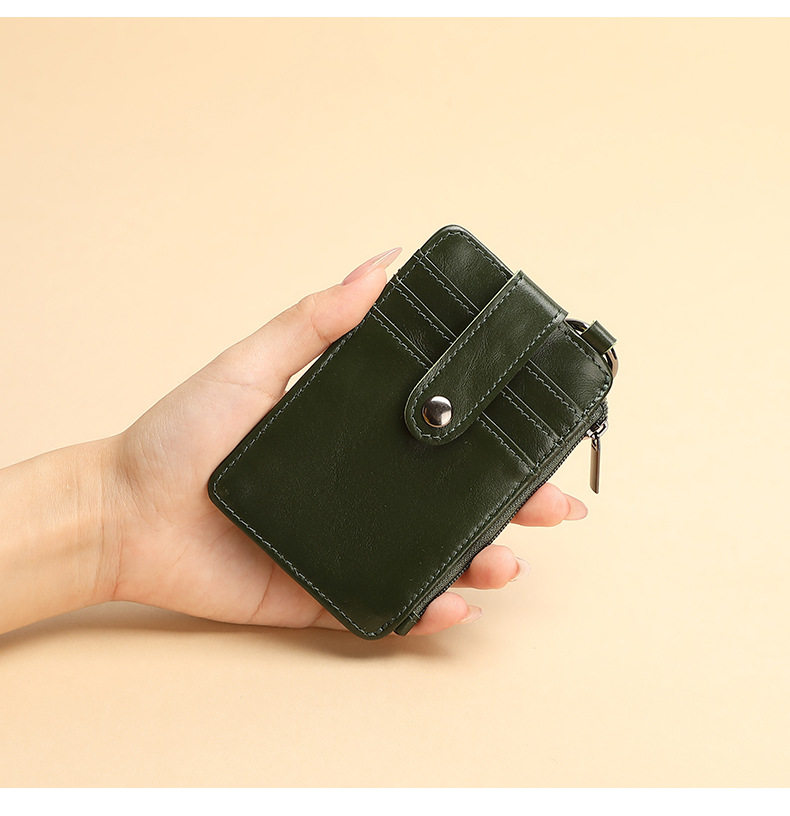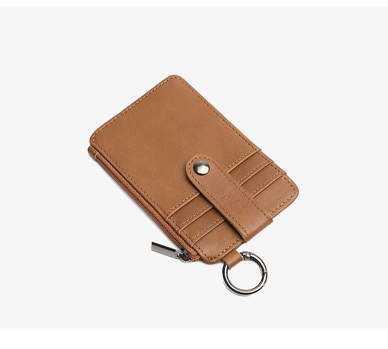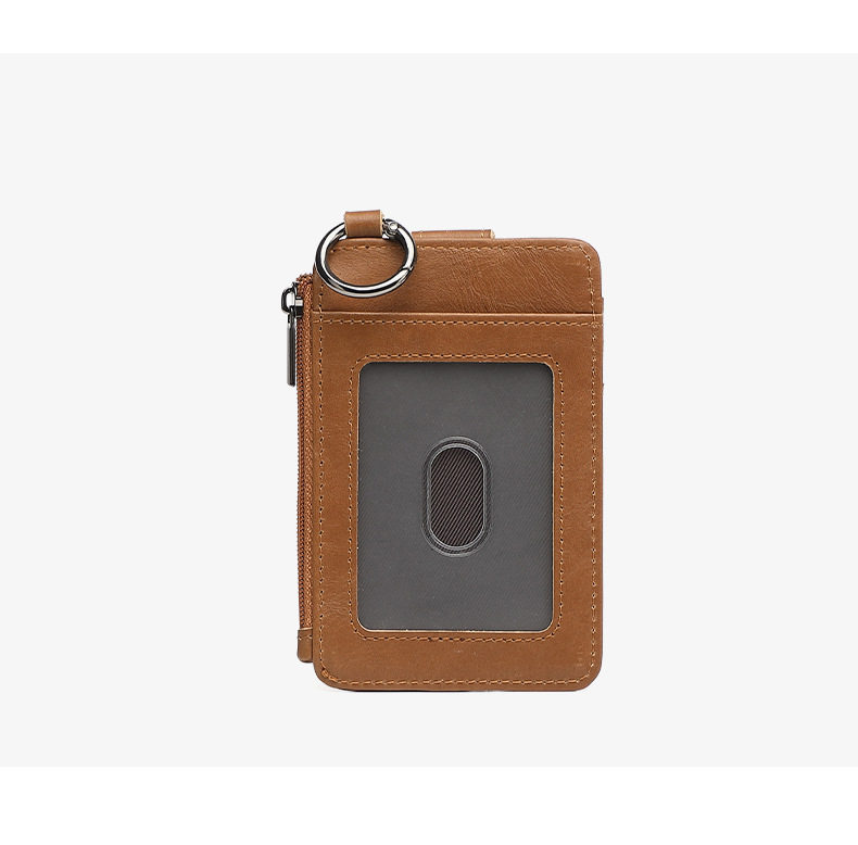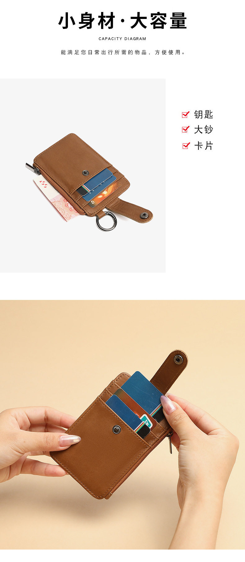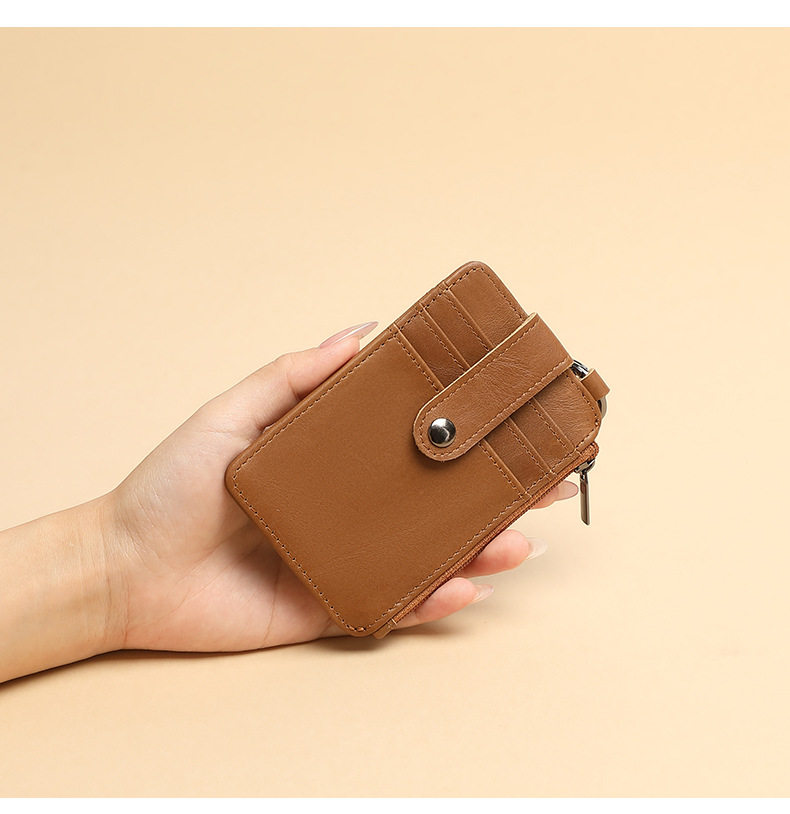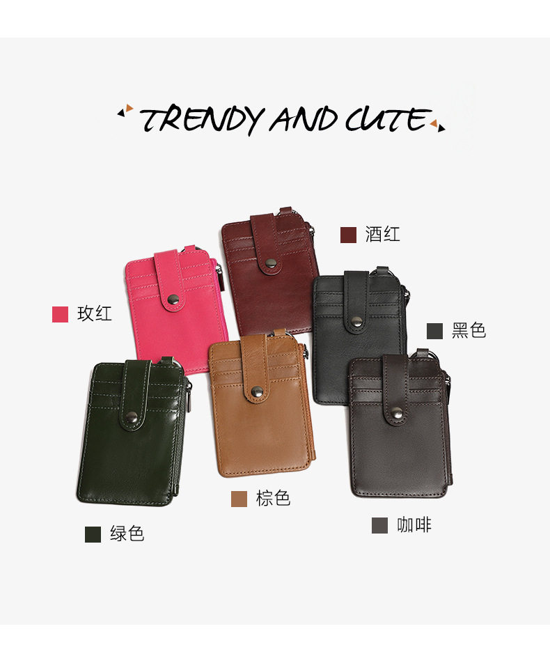 Cross-Border Popular First-Layer Cowhide Work Id Card Holder with Double Pockets and Snap Button Design, New Badge Card Holder from the Source Manufacturer