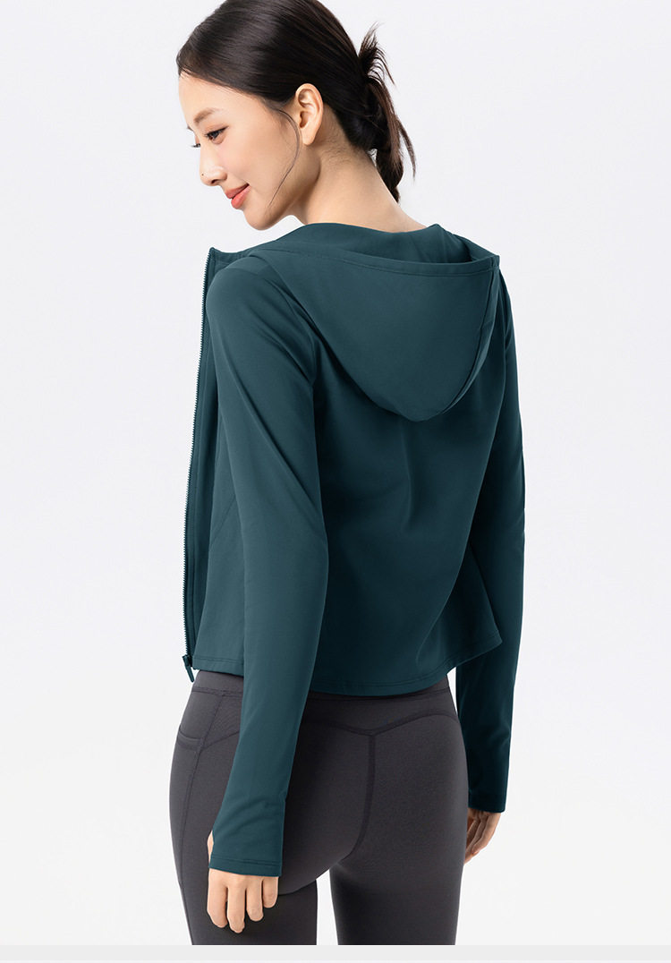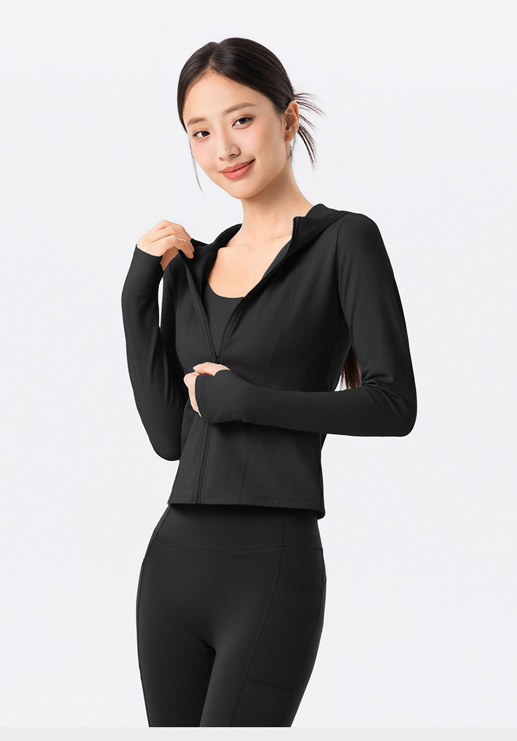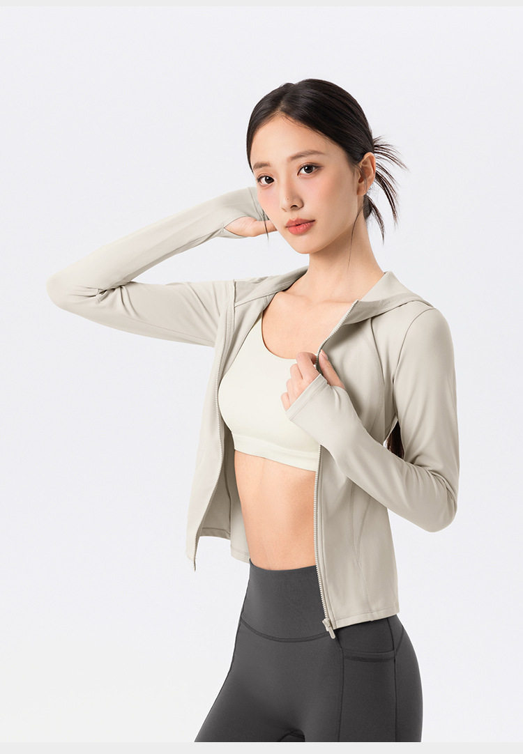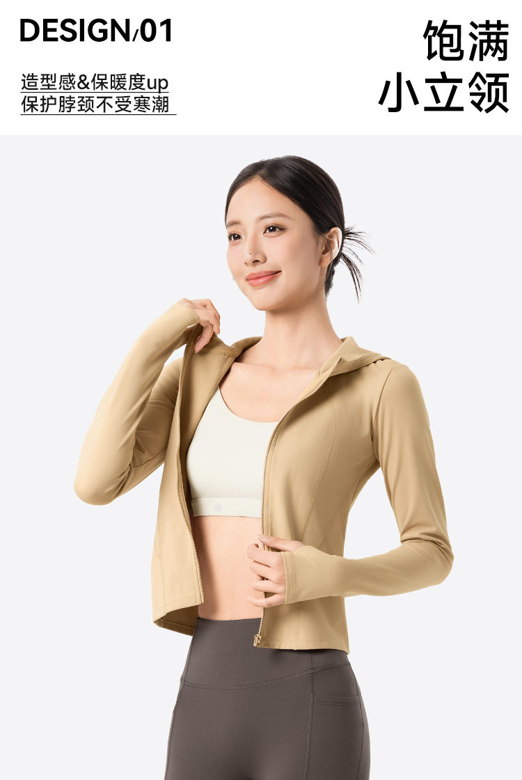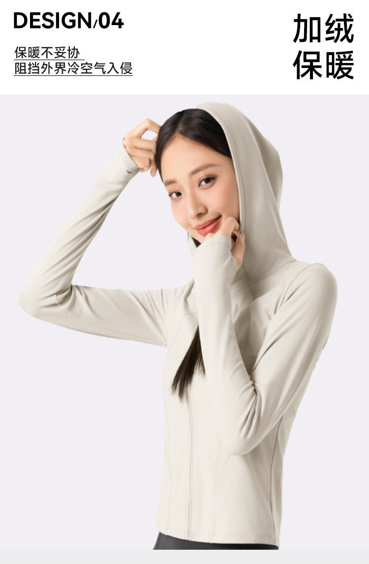 Cross-Border Velvet Hooded Yoga Jacket for Women, Slimming Short Sports Top, Warm and Temperature-Locking Fitness Jacket
